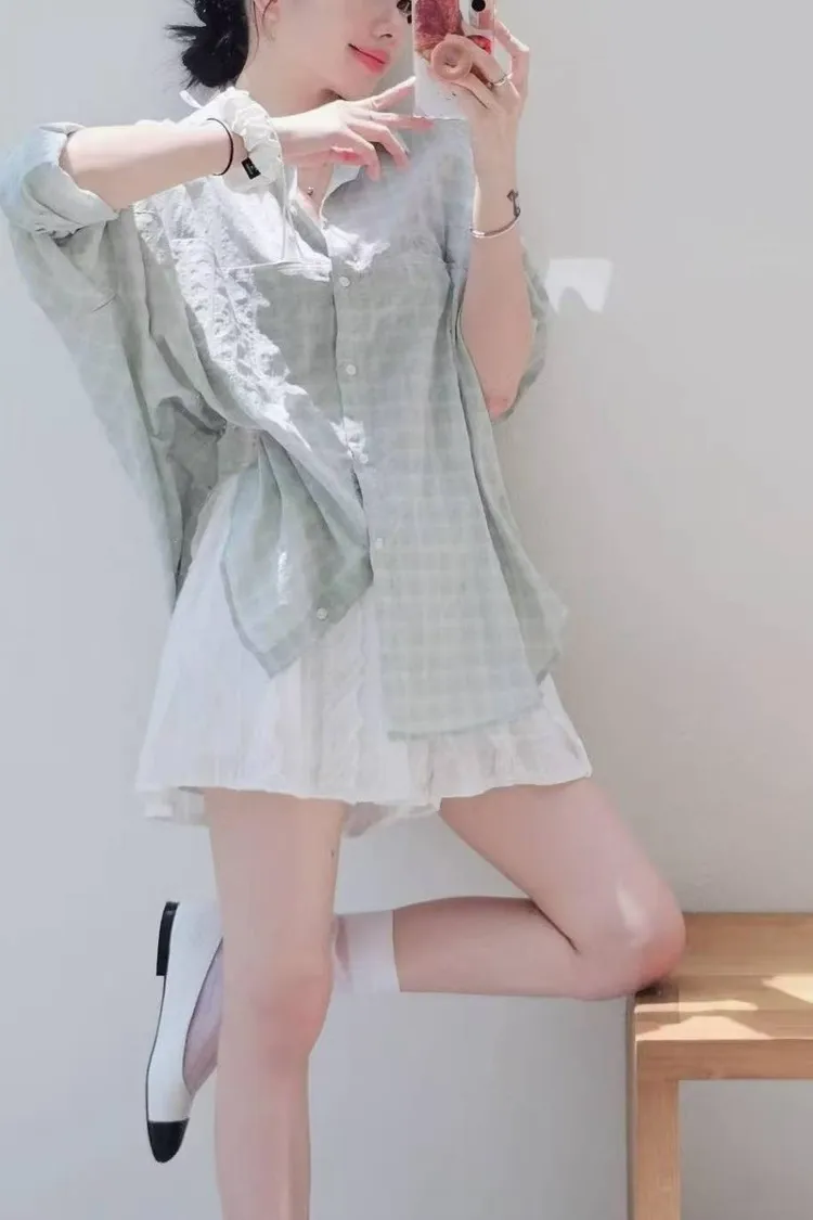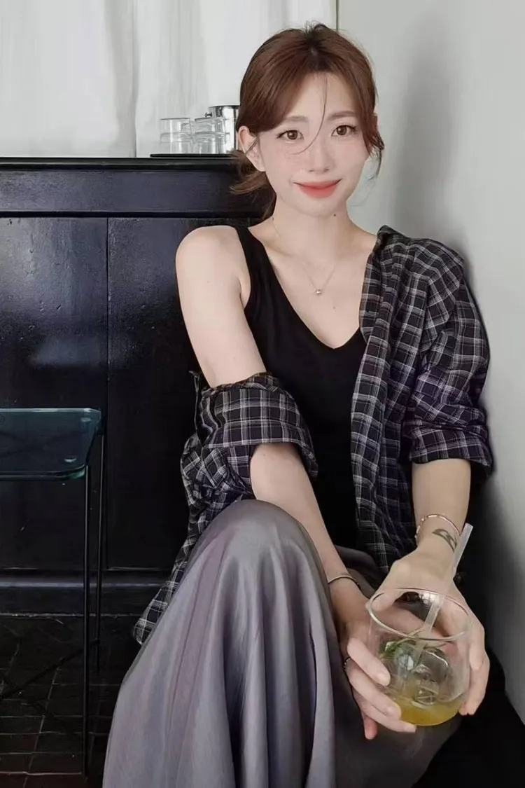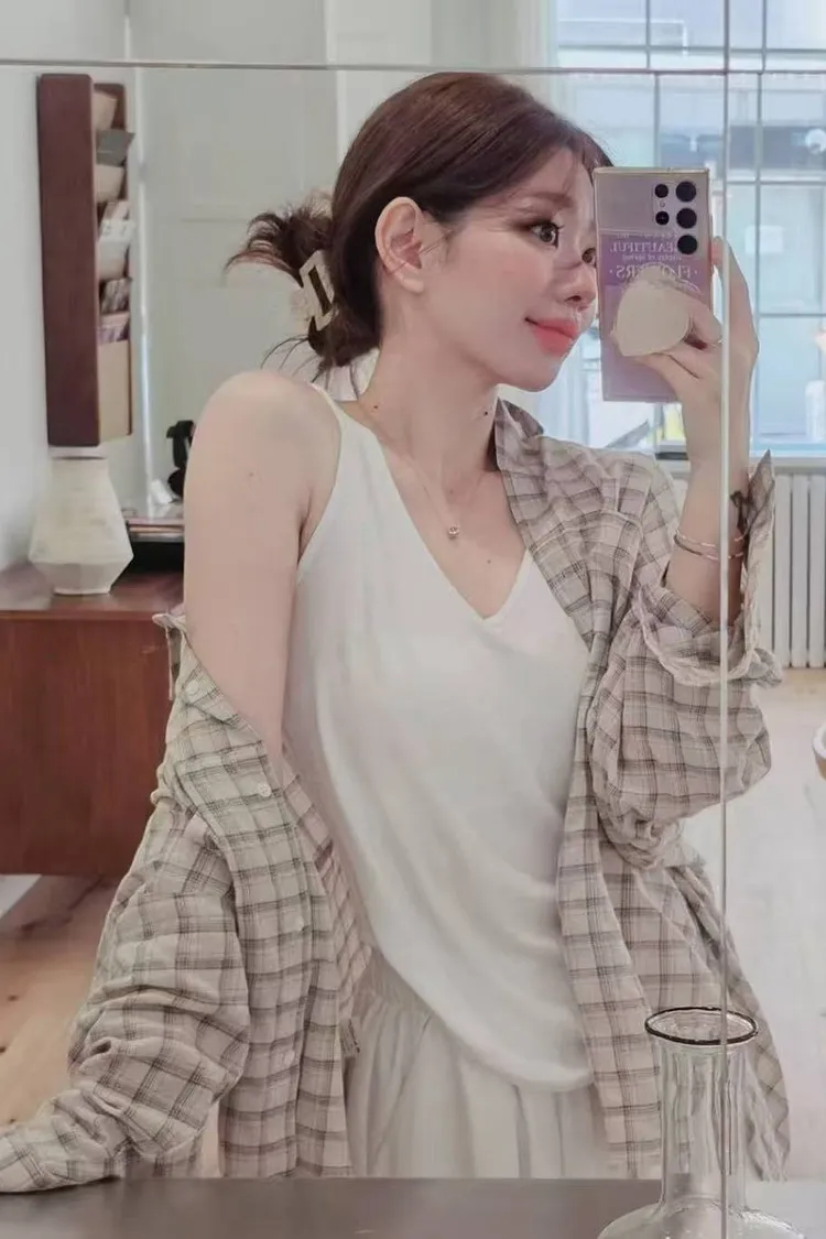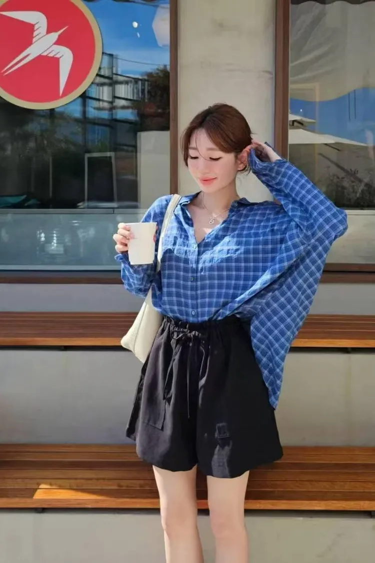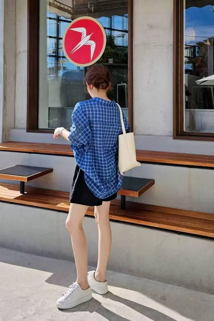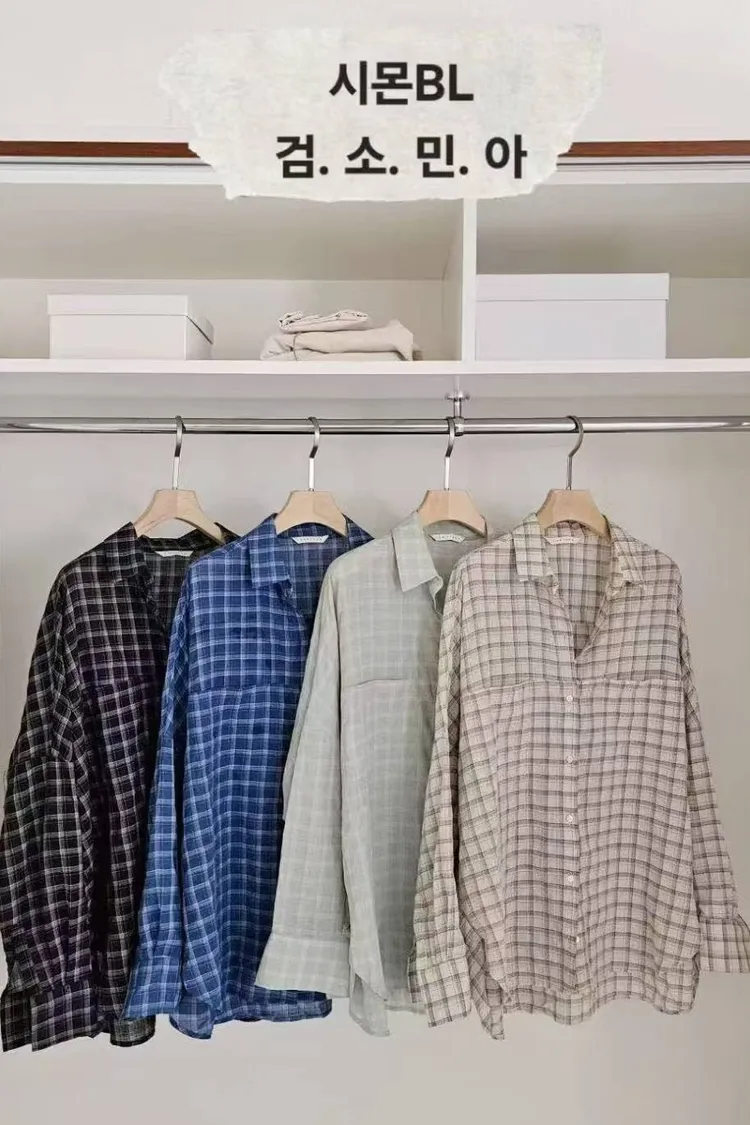正韓 Copiner 漂亮歐膩 經典百搭格紋休閒襯衫
