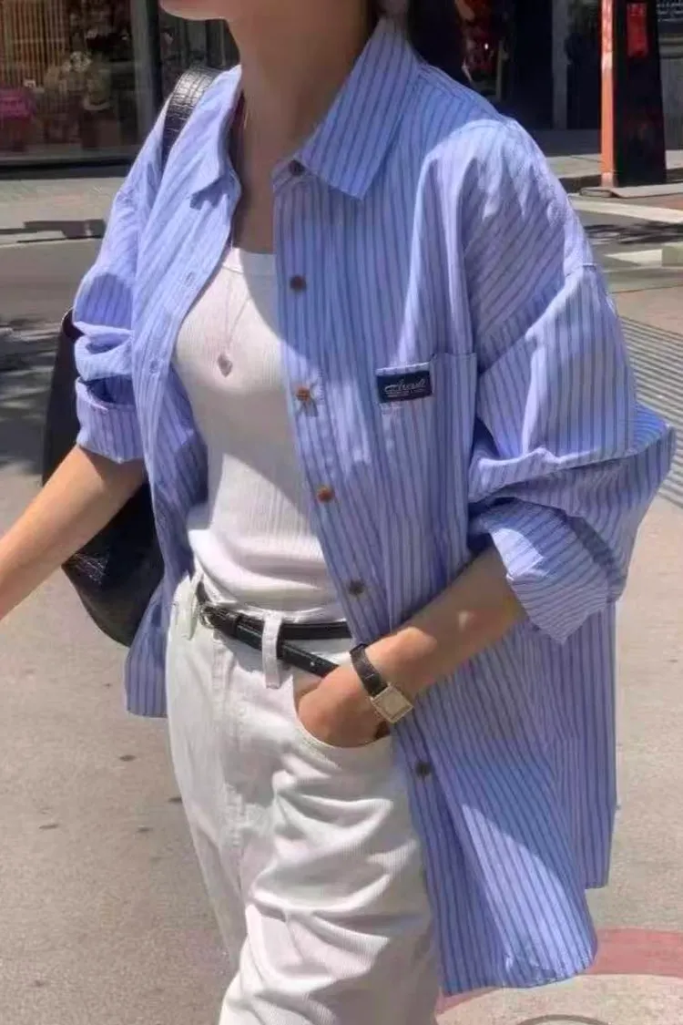 韓國東大門代購 areing 百搭條紋襯衫 襯衫上衣