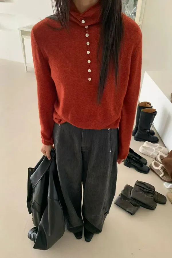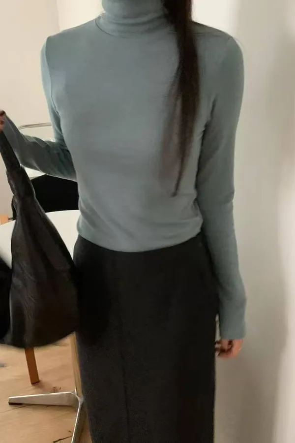 韓國代購 柔軟兔毛高領針織上衣 慵懶長版毛衣