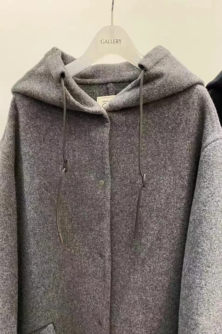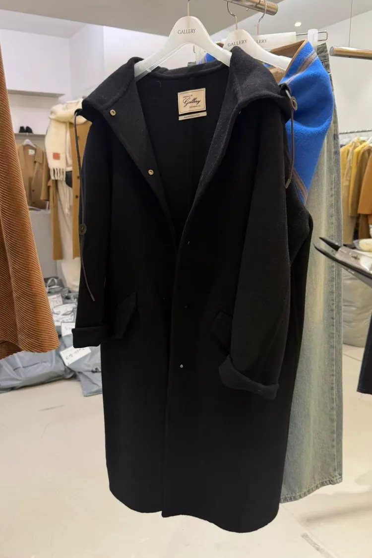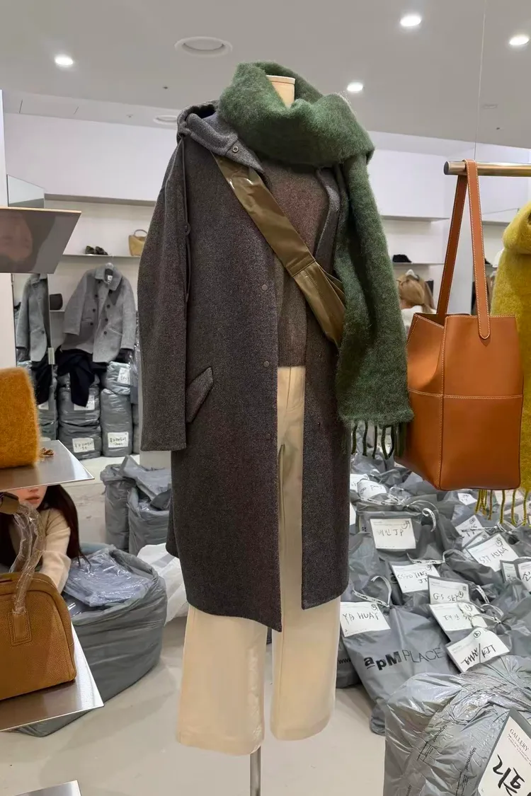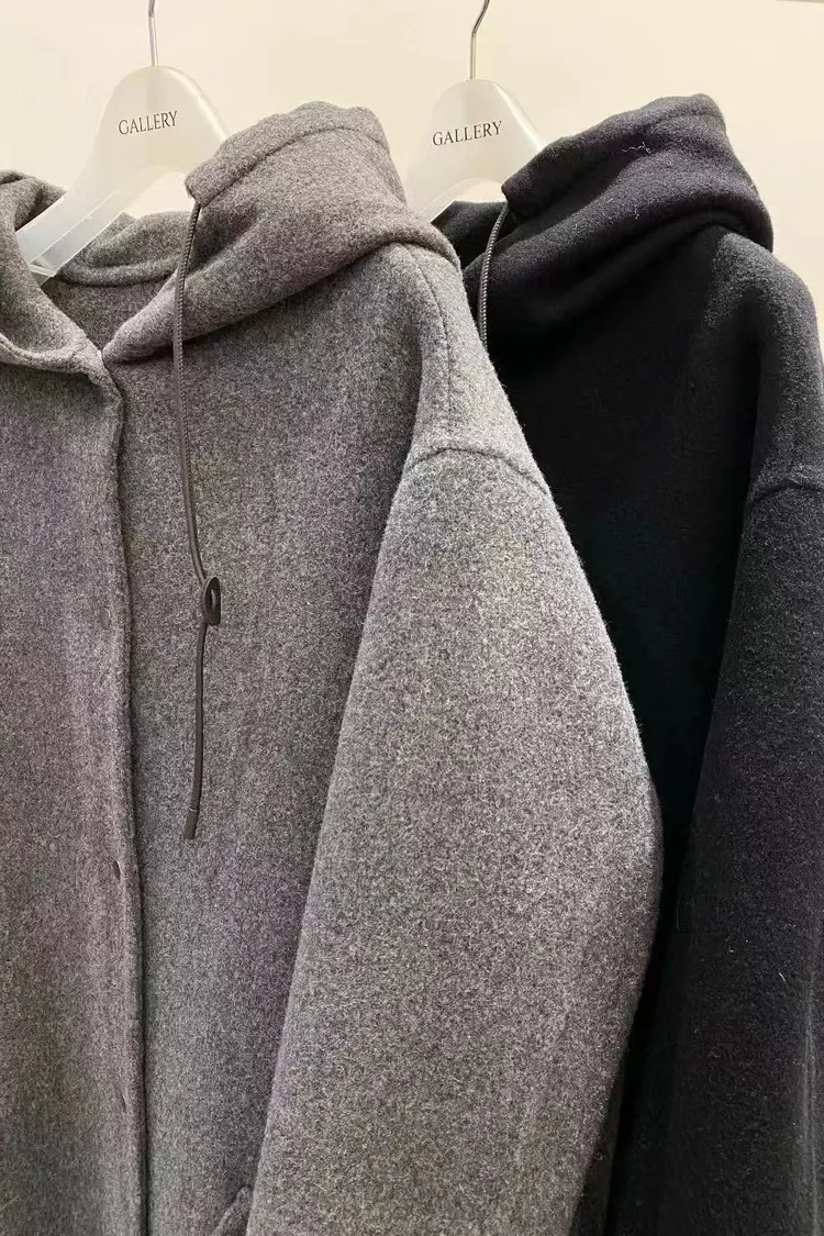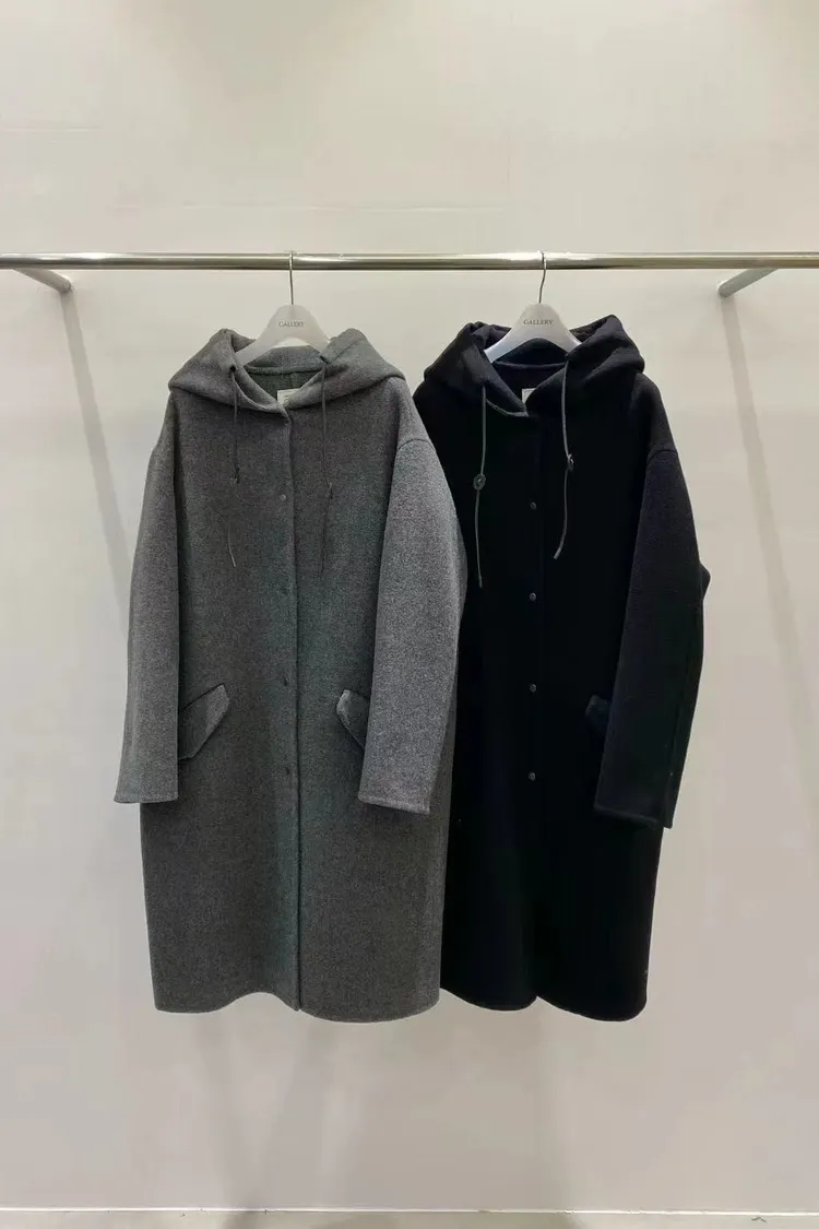 韓國設計師樓 保暖連帽羊毛手工製大衣 長版大衣外套推薦