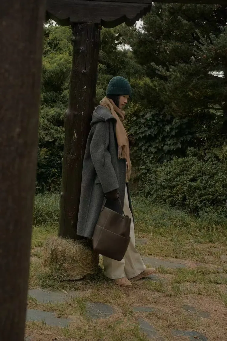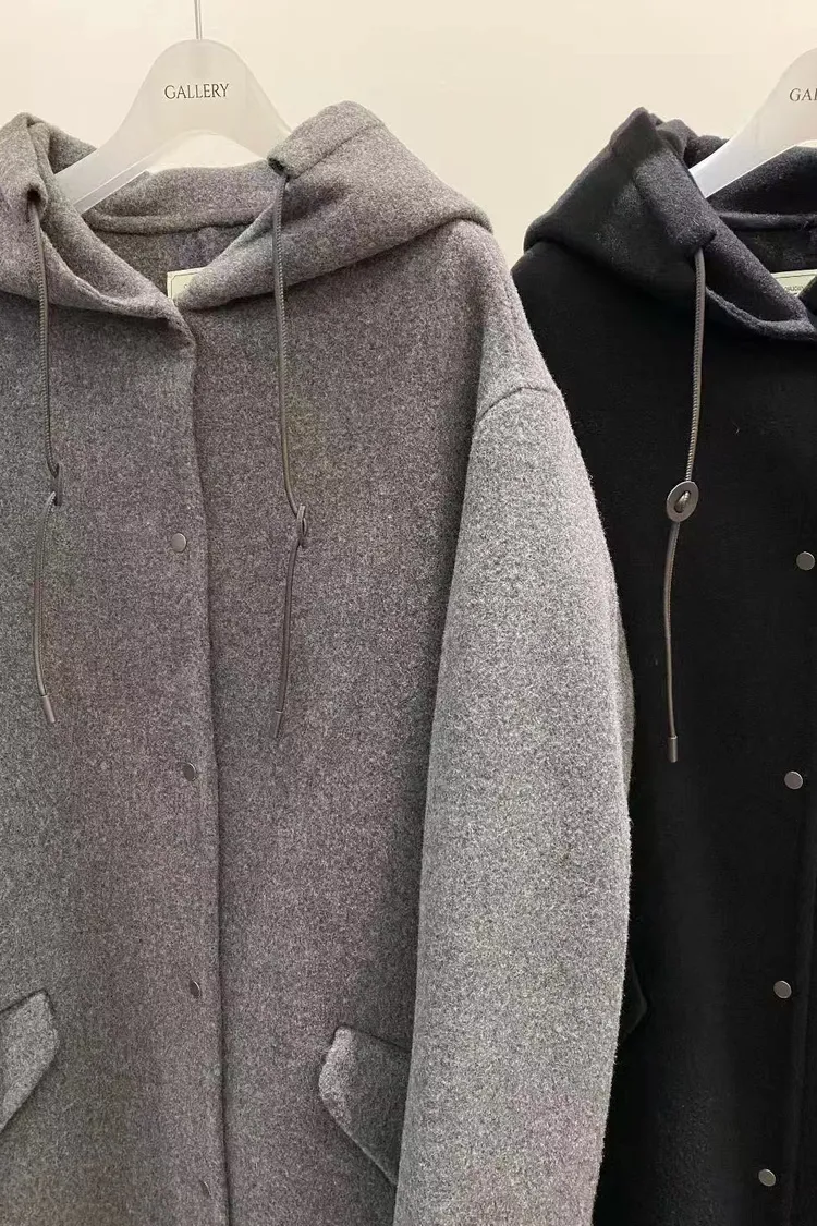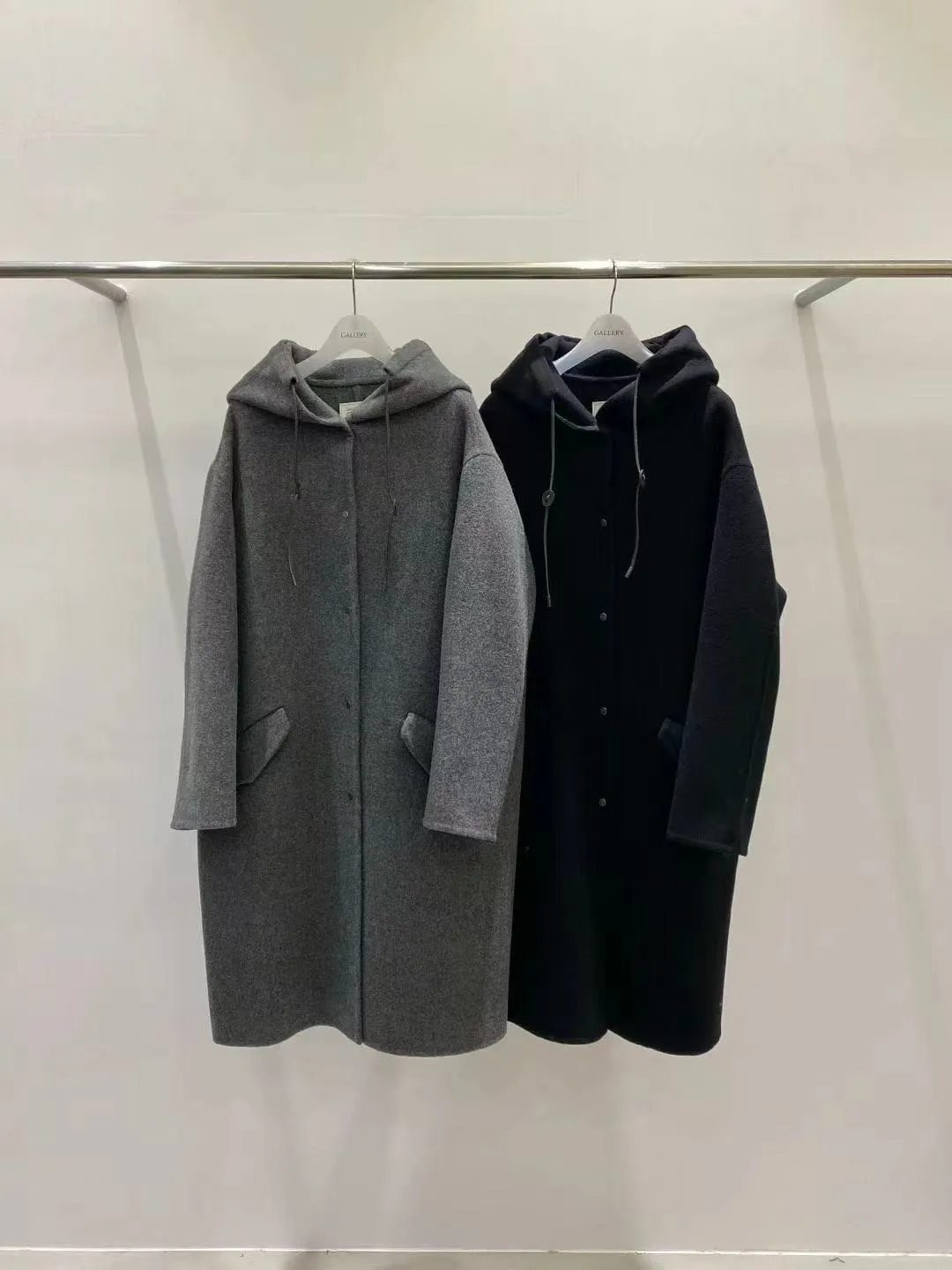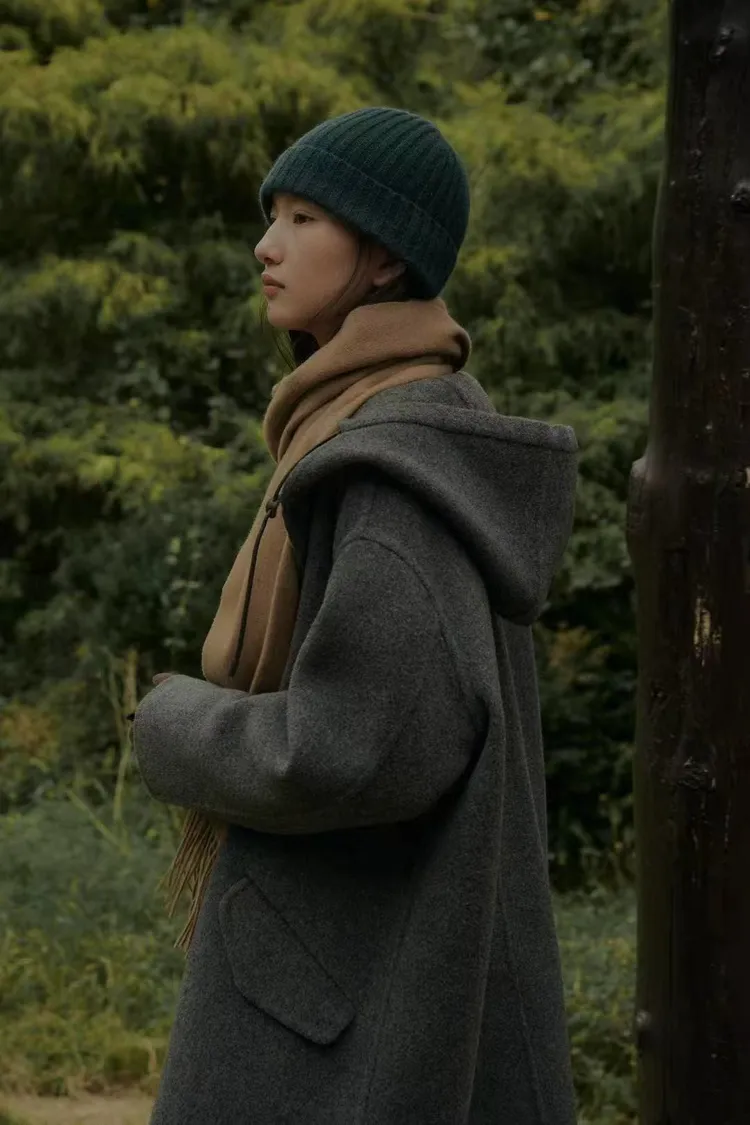 韓國設計師樓 保暖連帽羊毛手工製大衣 長版大衣外套推薦