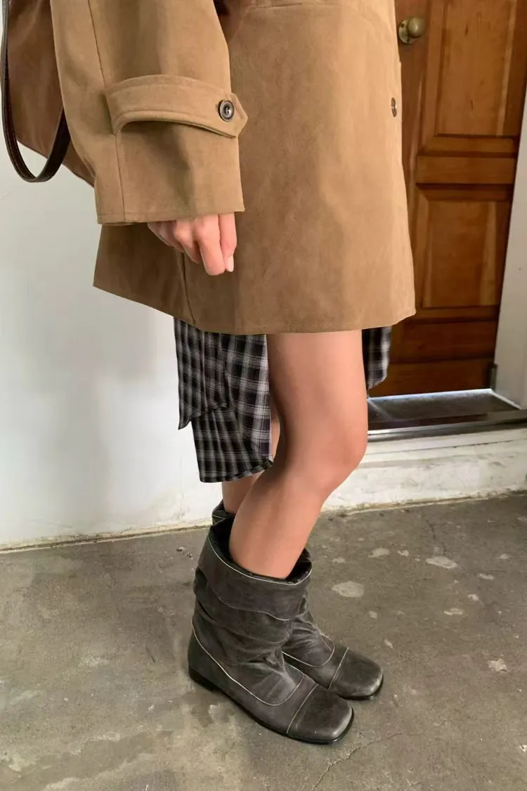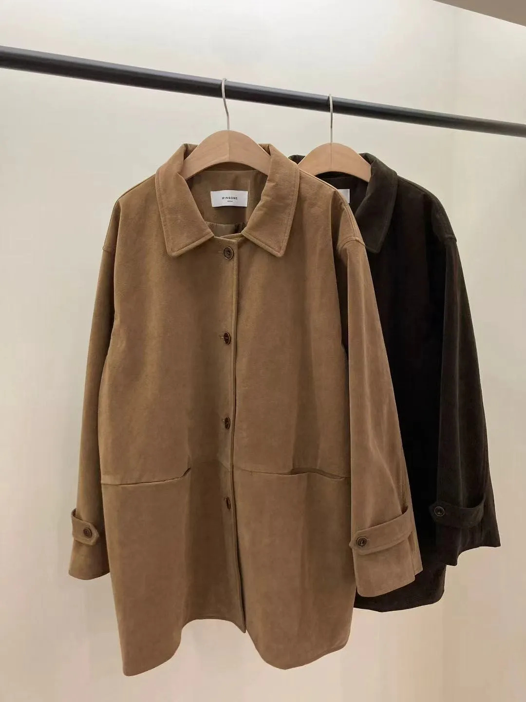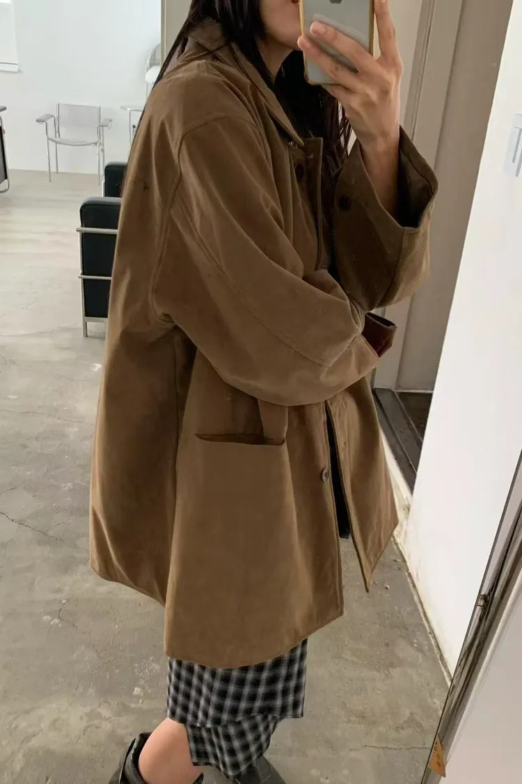 秋冬質感麂皮風外套 麂皮翻領中長版外套
