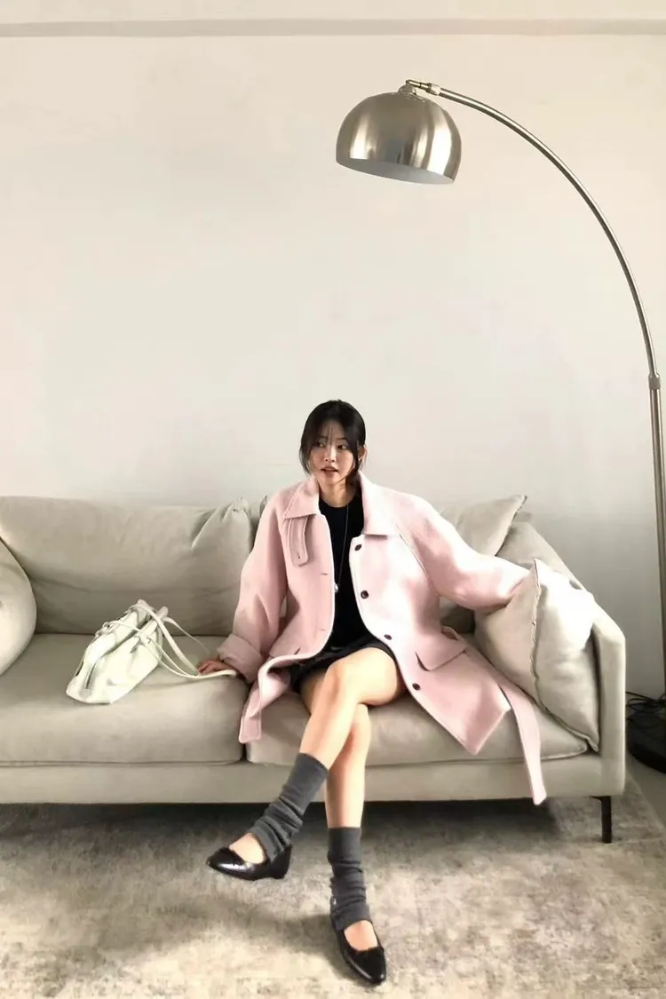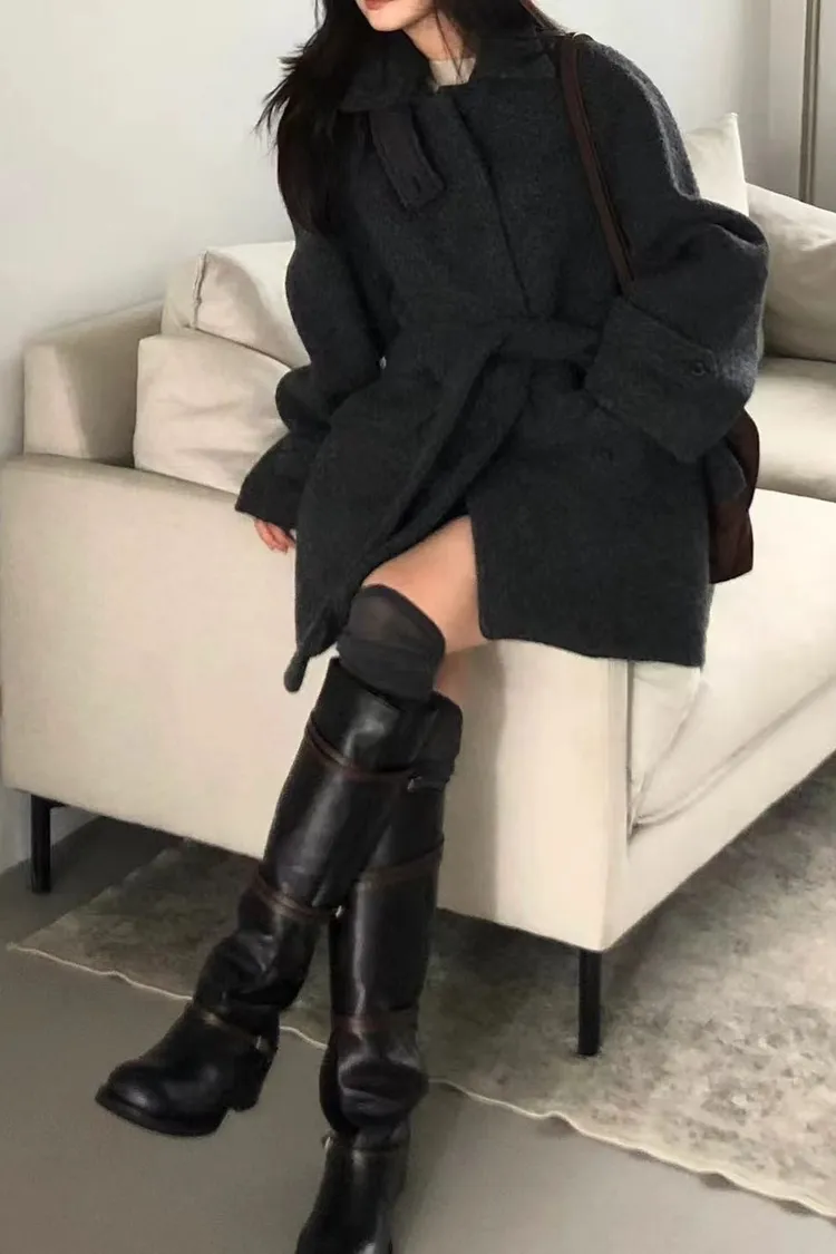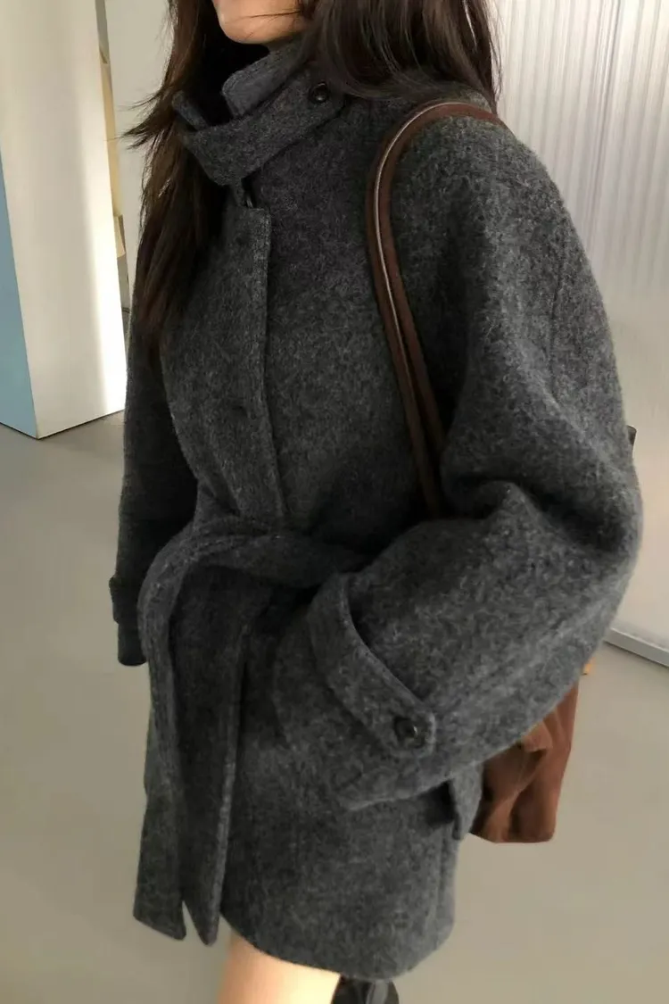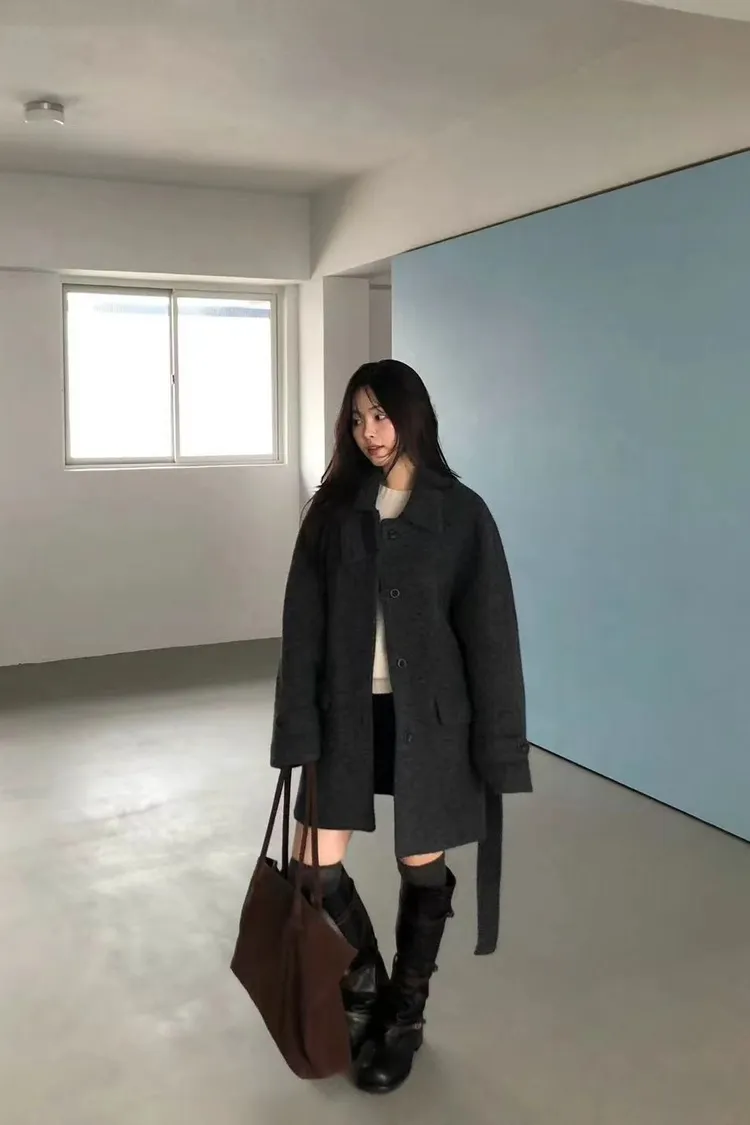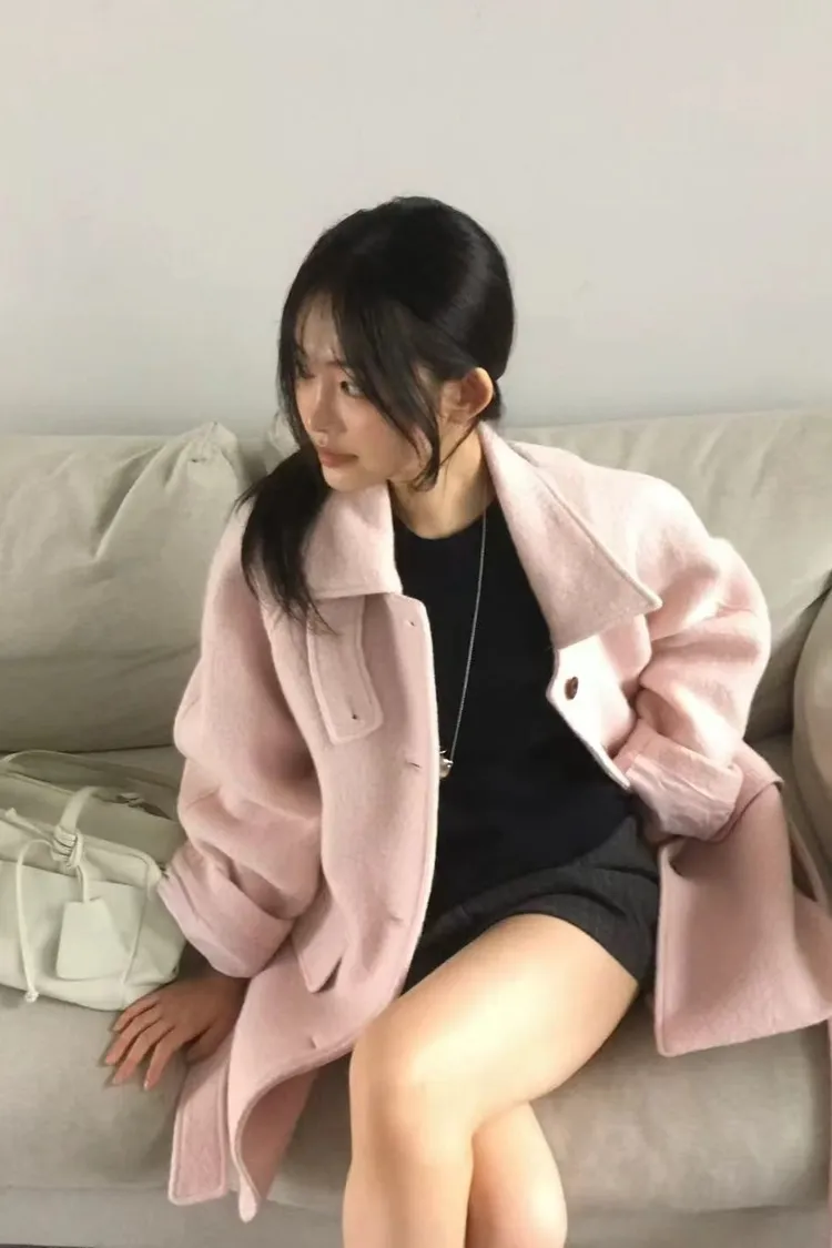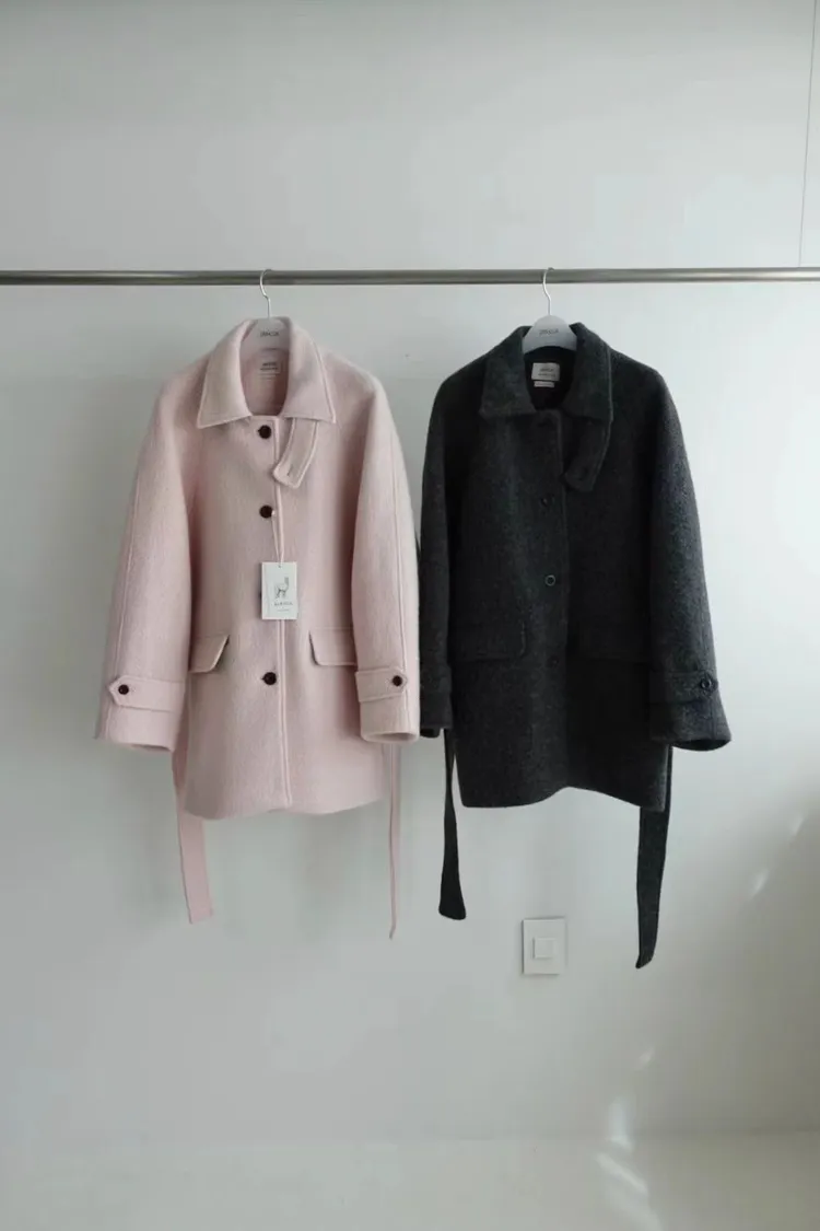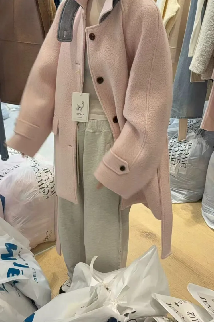 韓國連線款 單排扣翻領羊毛大衣外套 中長版大衣外套