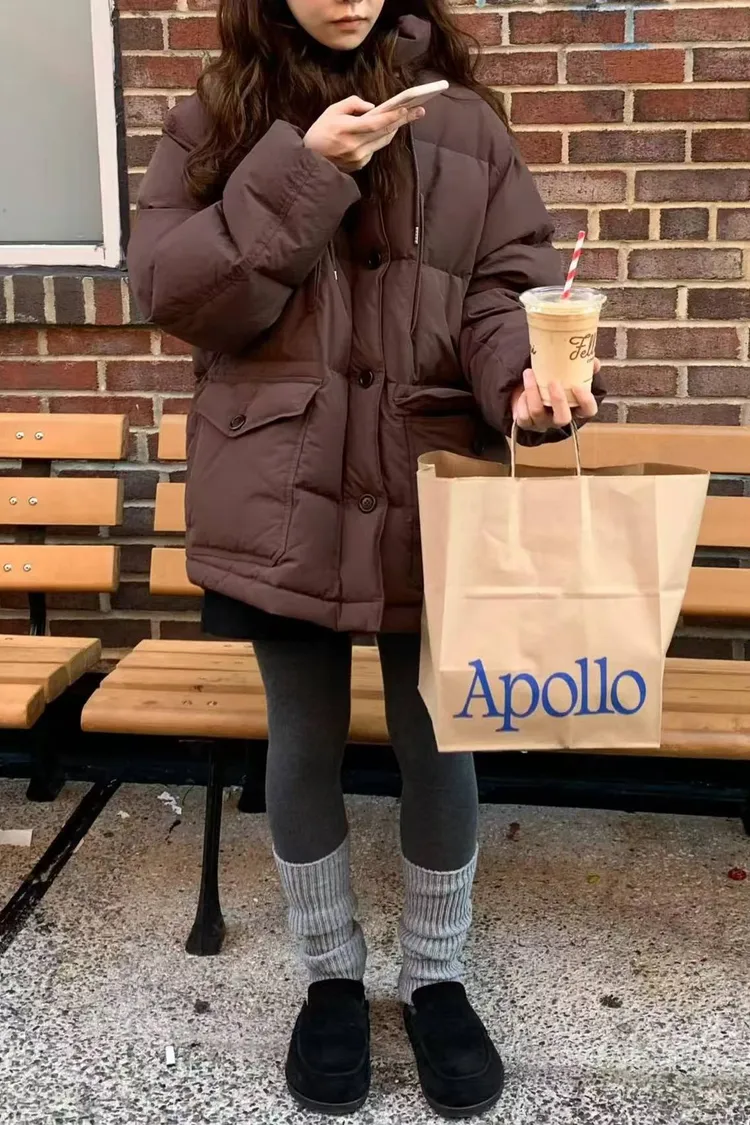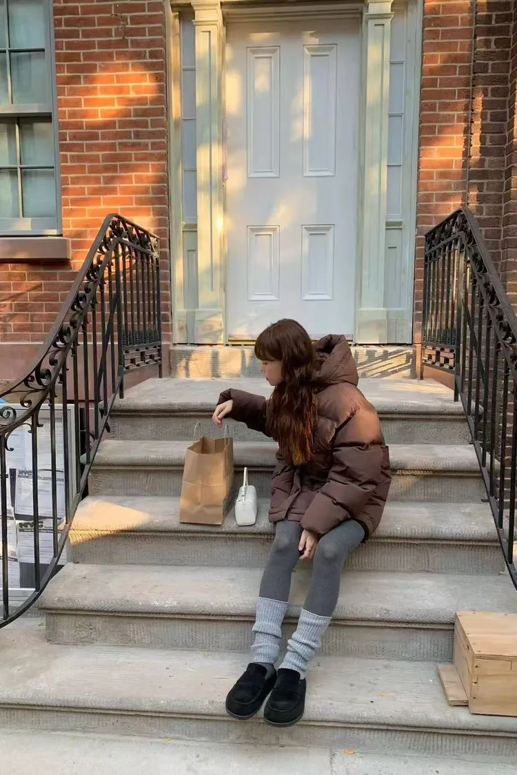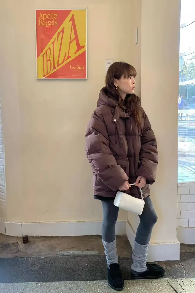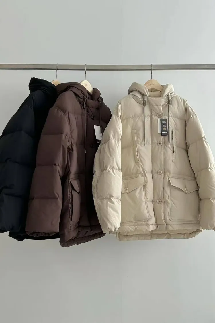 韓國代購 鴨絨100% 百搭保暖 連帽中長版外套 羽絨外套