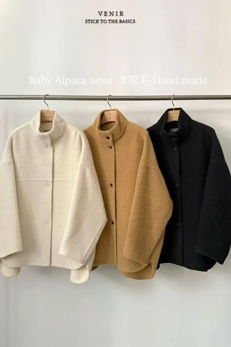 韓國代購 venir 寶寶羊駝毛大衣外套 手工羊毛大衣外套