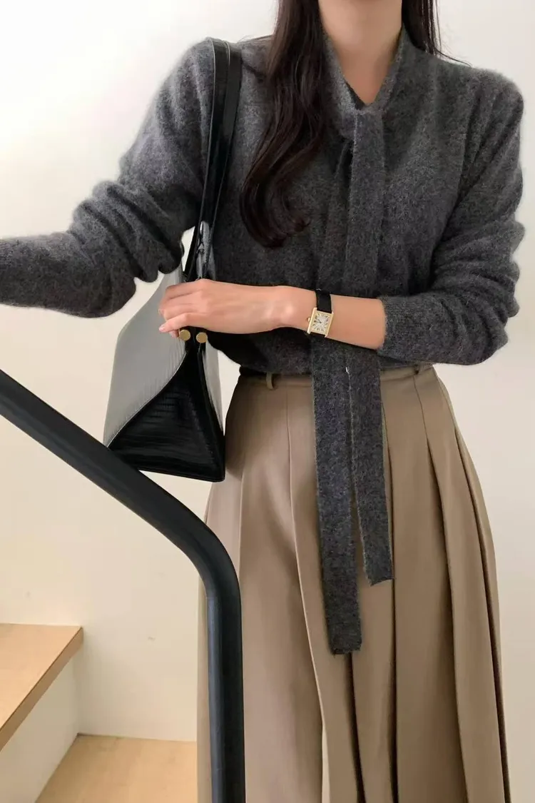 韓國女裝 氣質綁帶女衫 質感綁帶上衣