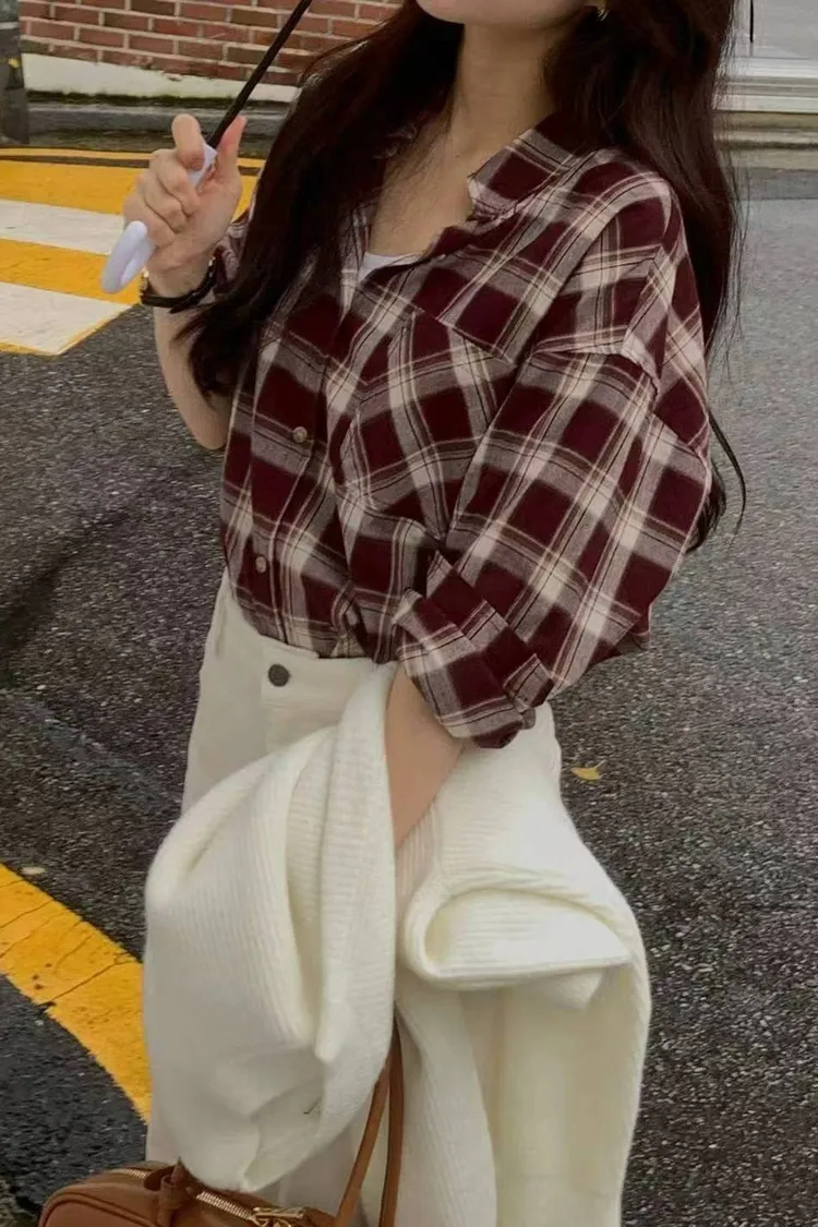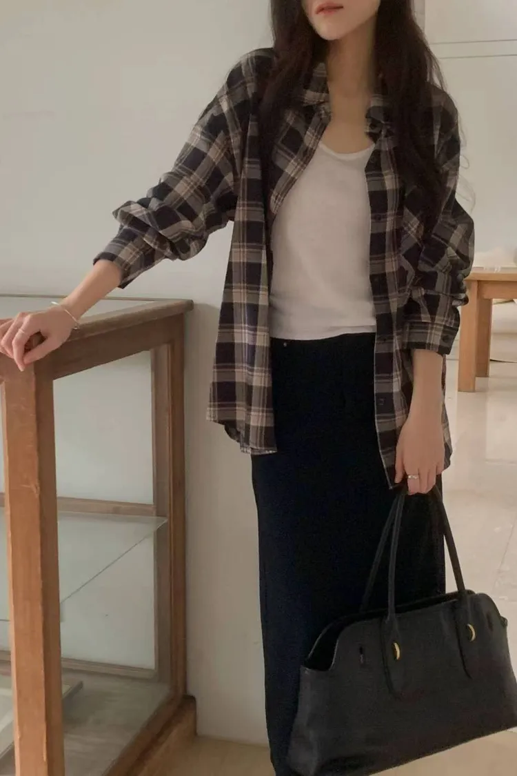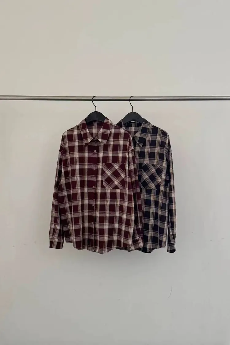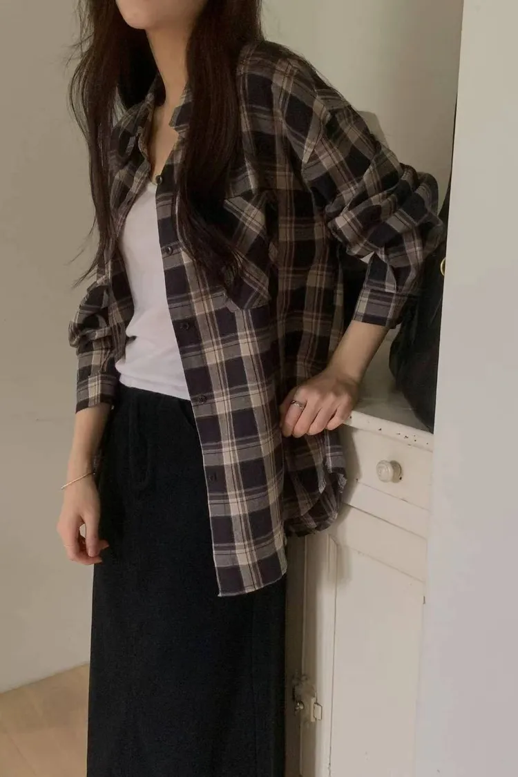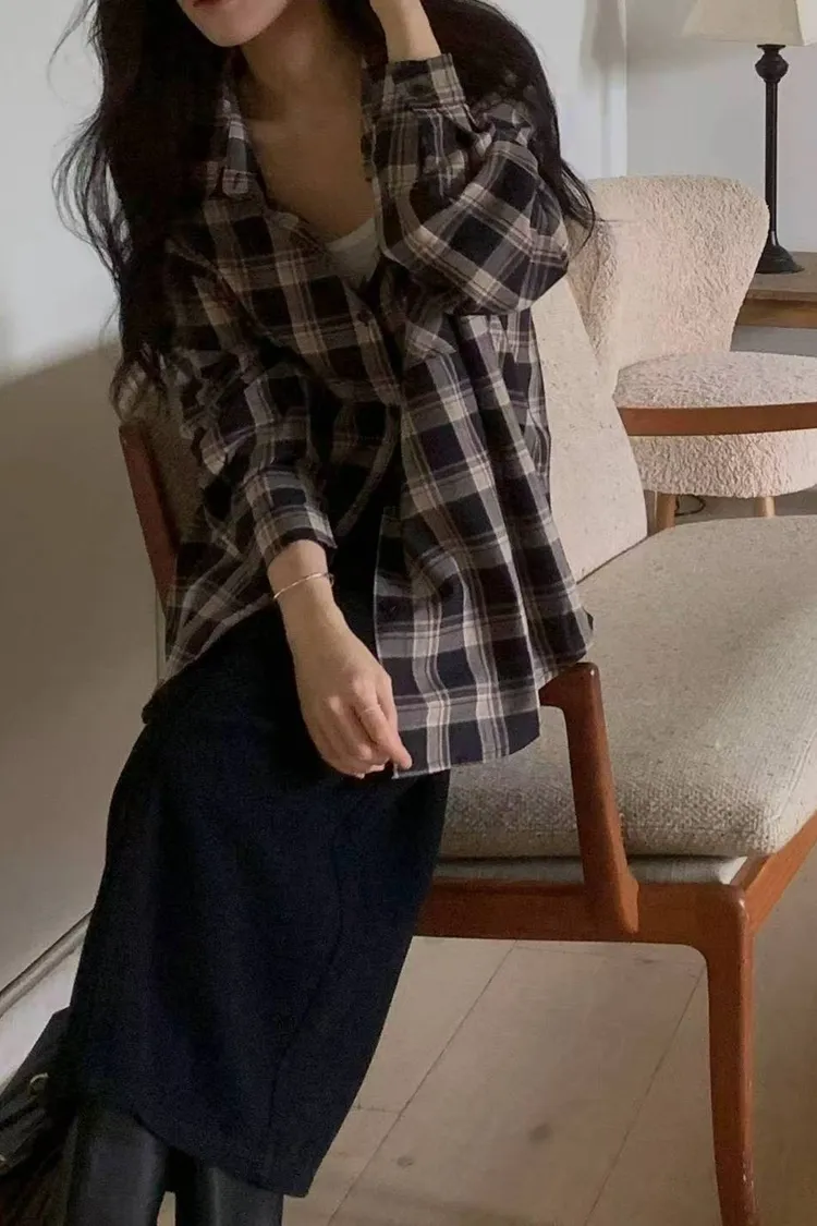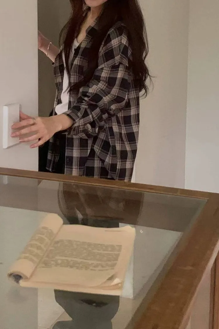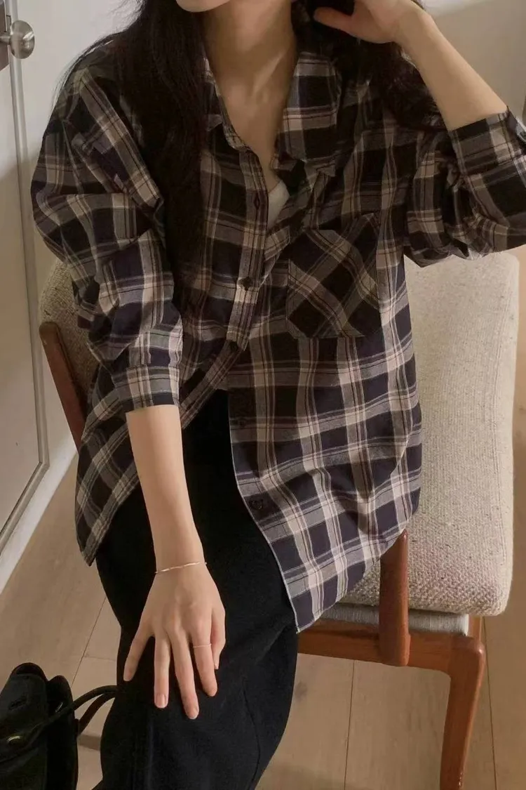 韓國代購 DRESS ROOM 氣質格子襯衫上衣 男友風襯衫