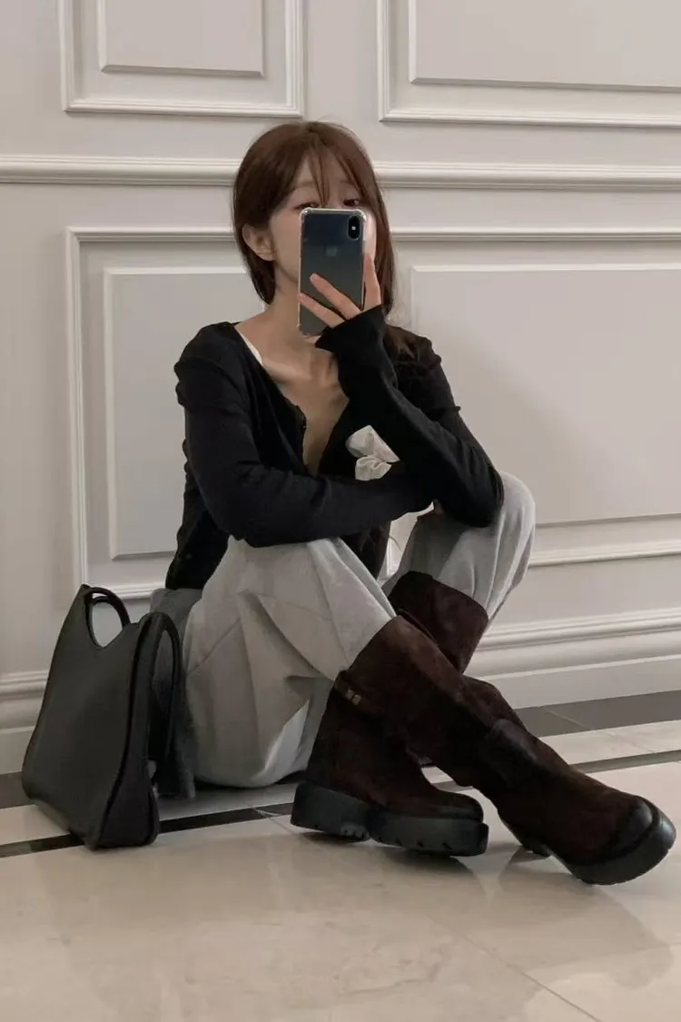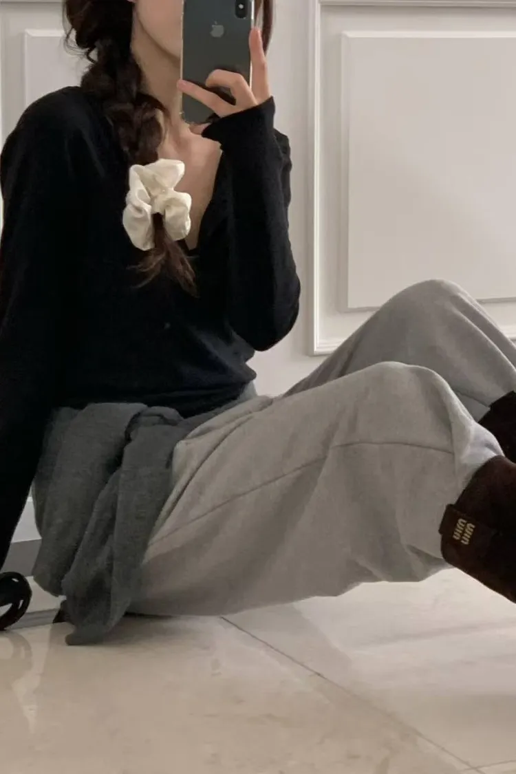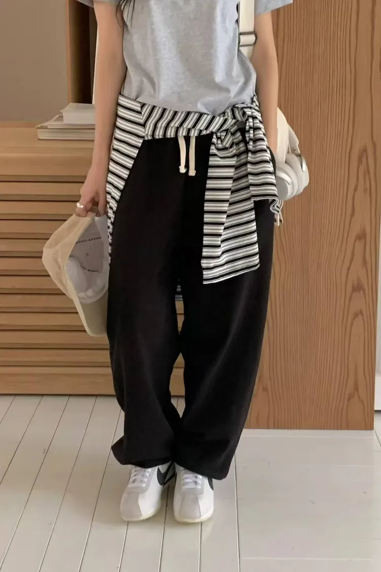 韓國代購 VERGAMOT 設計師品牌 鬆緊腰綁帶休閒長褲 棉褲