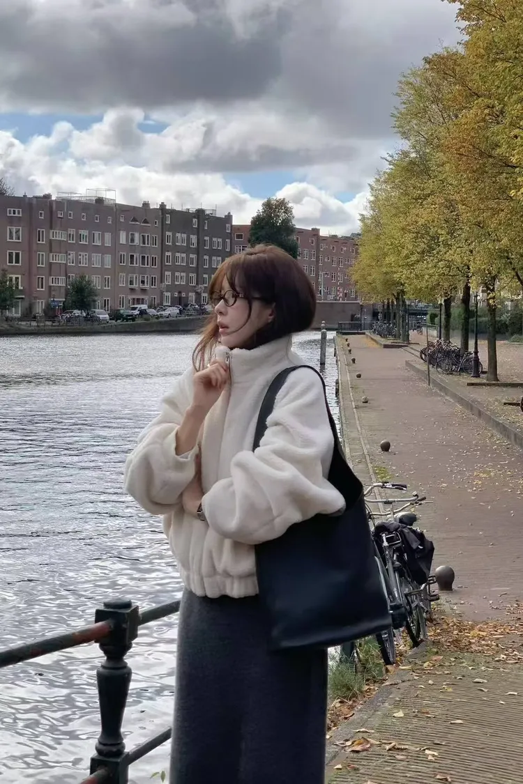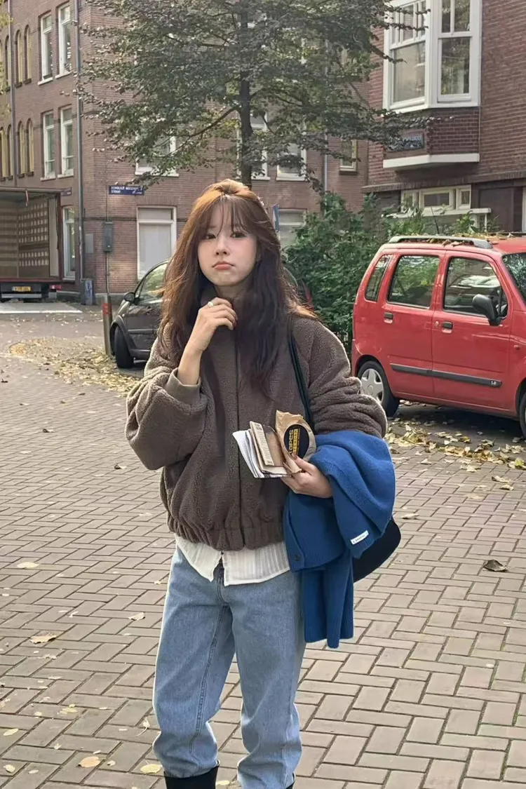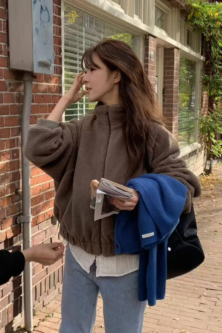 韓國代購 VERGAMOT 設計師品牌 保暖 氣質拉鍊毛絨外套
