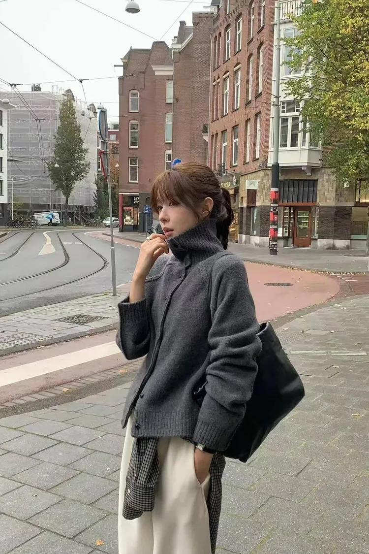 韓國代購 VERGAMOT 設計師品牌 羊毛混紡立領毛衣外套