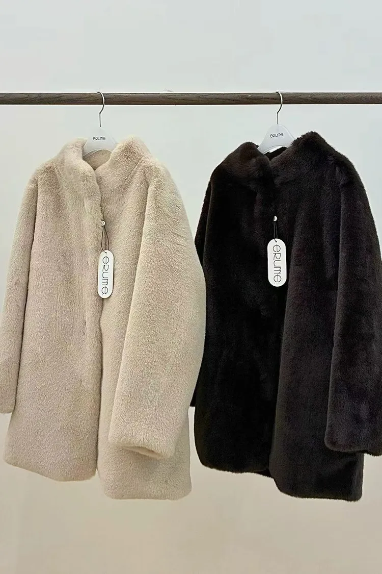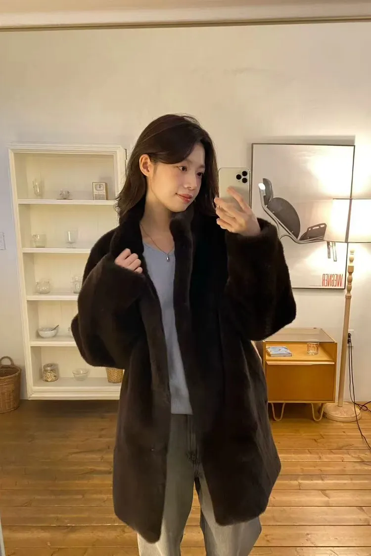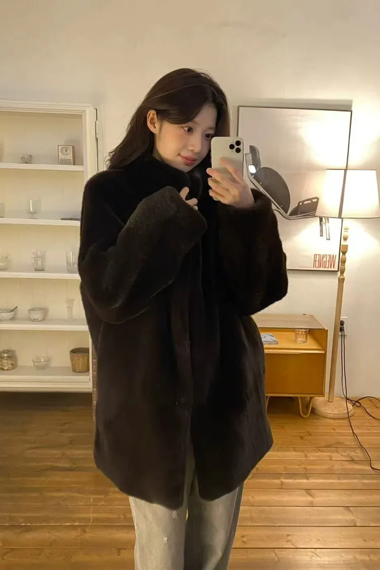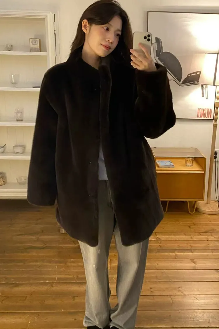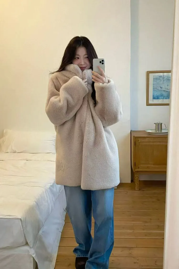 韓國代購 冬季新款 中長款保暖毛毛厚外套