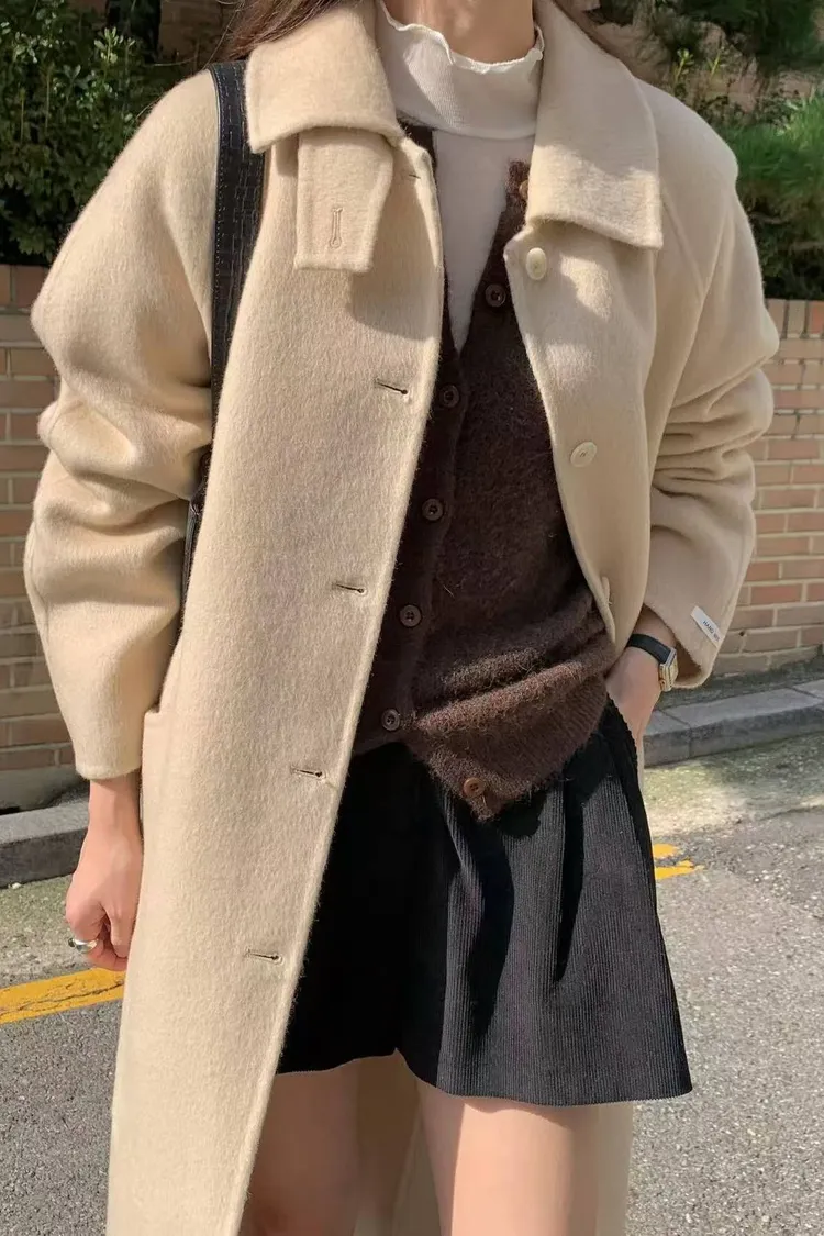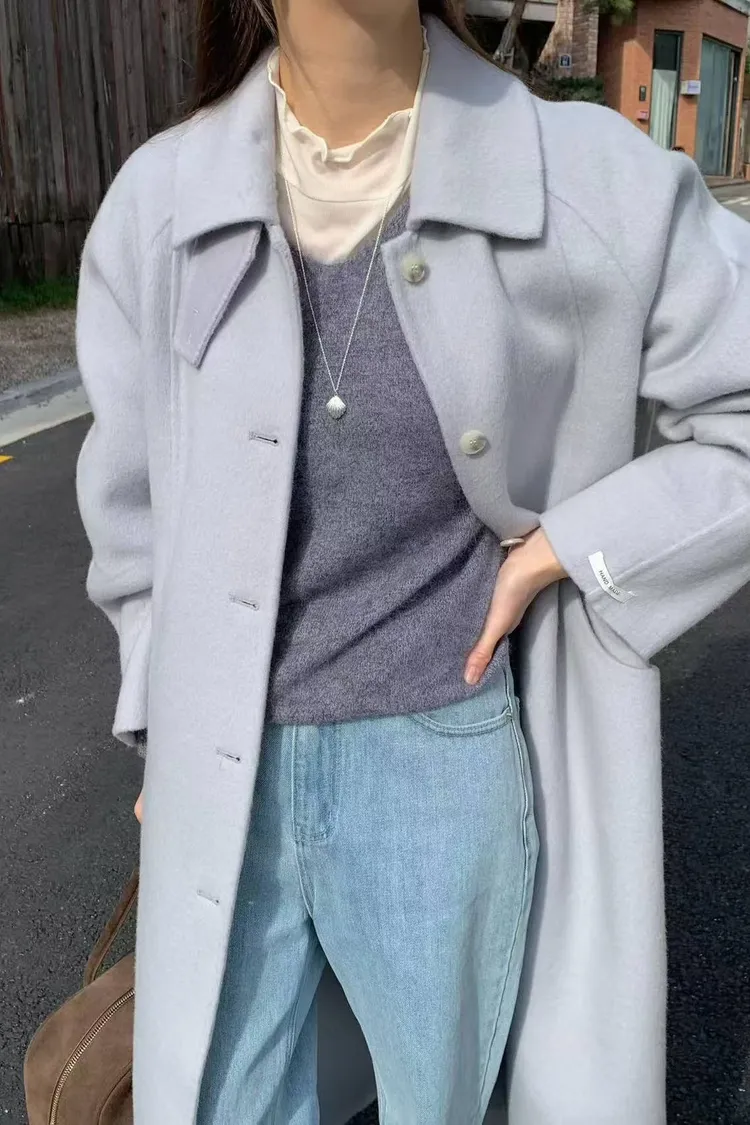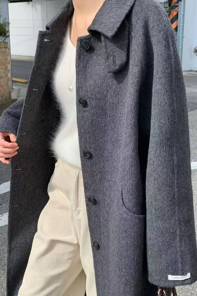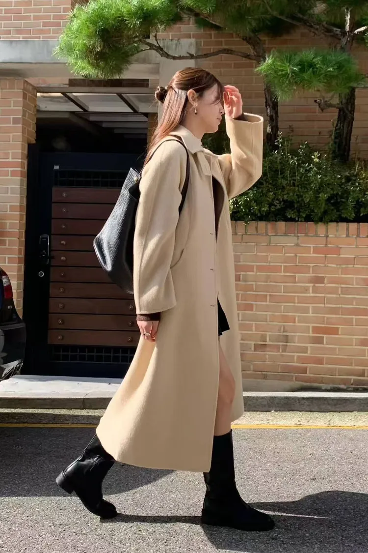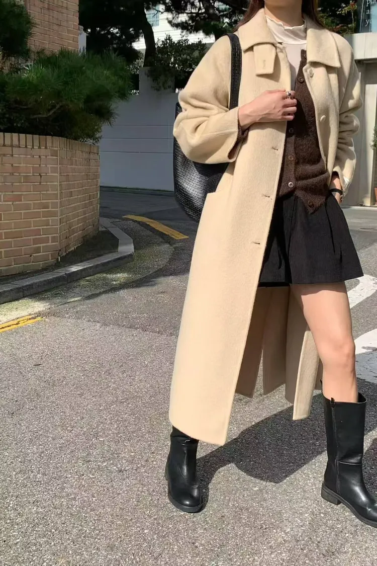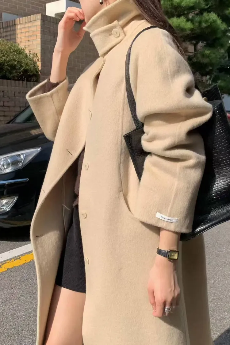 韓國代購 秋冬新款 質感 立領長版羊毛大衣外套
