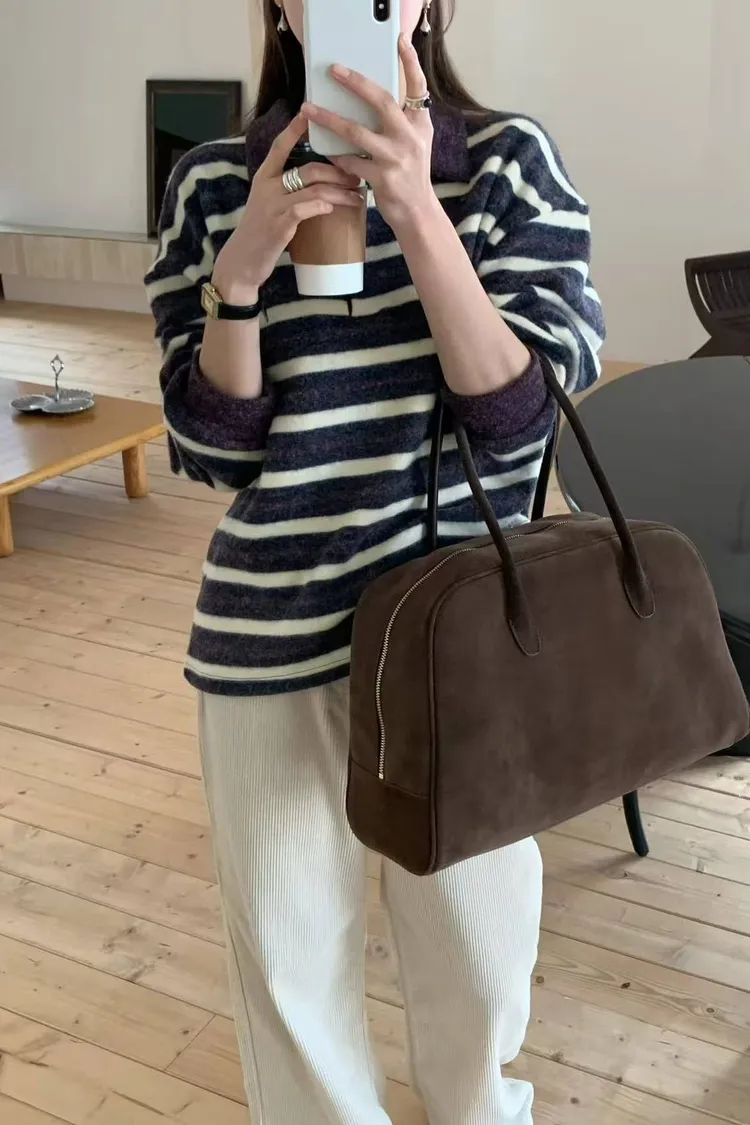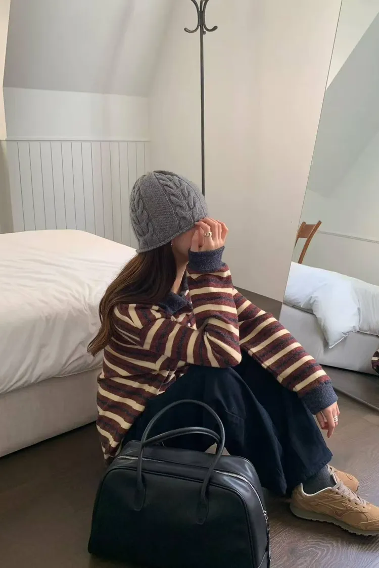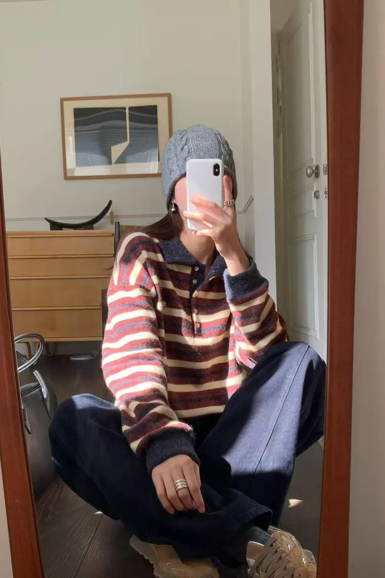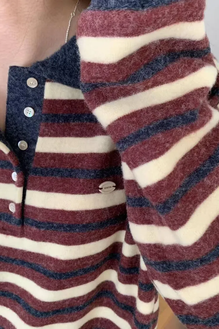 韓國代購 爆款 內刷毛條紋衫 POLO翻領條紋上衣