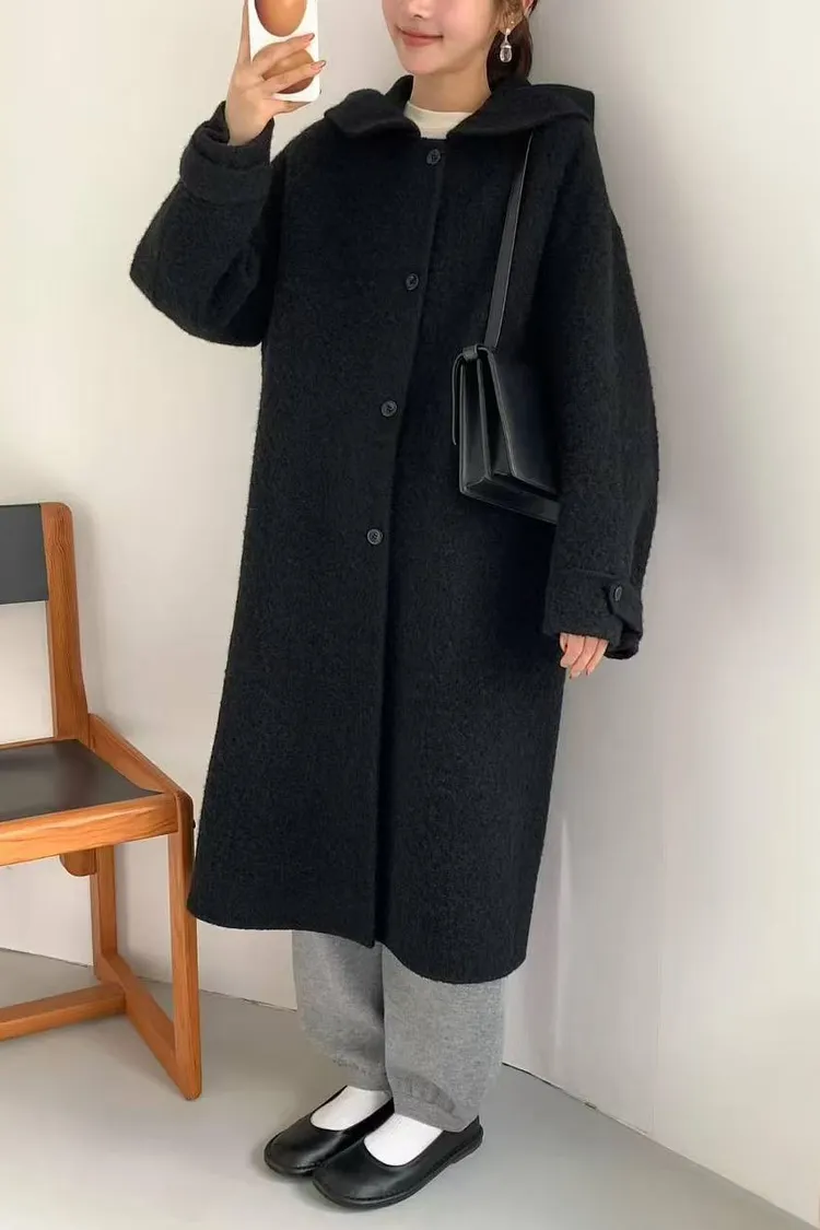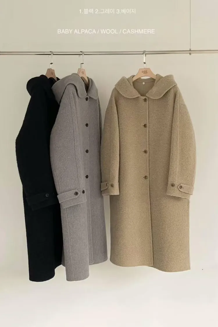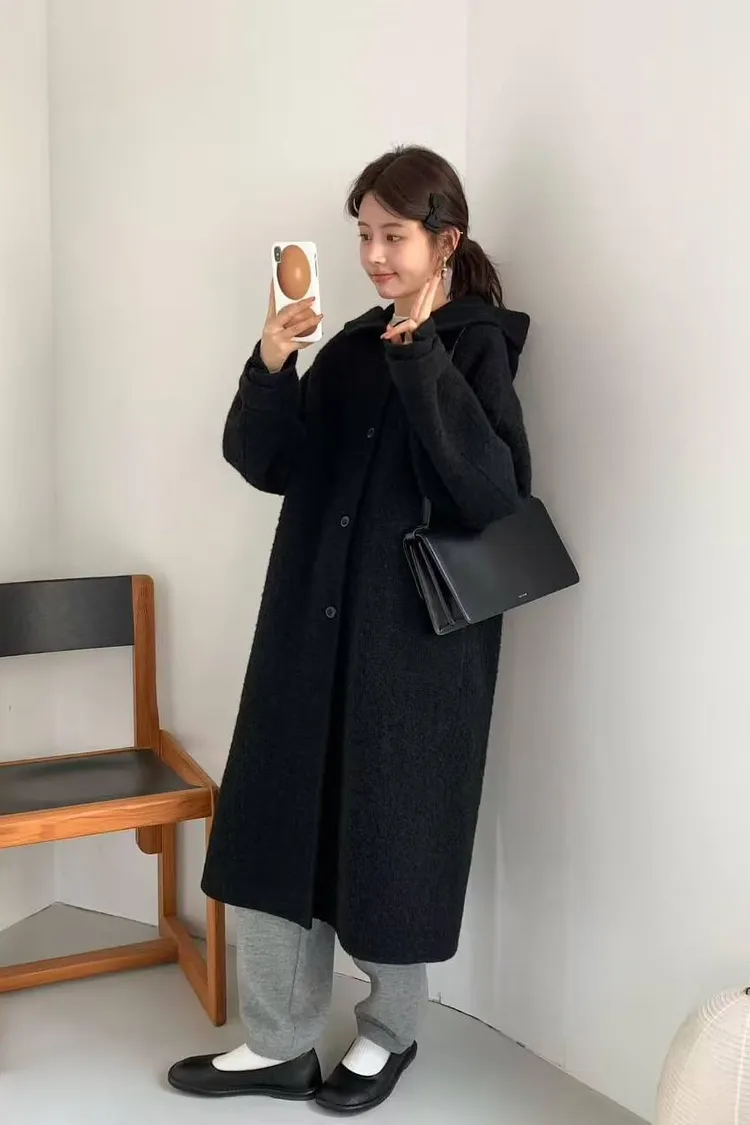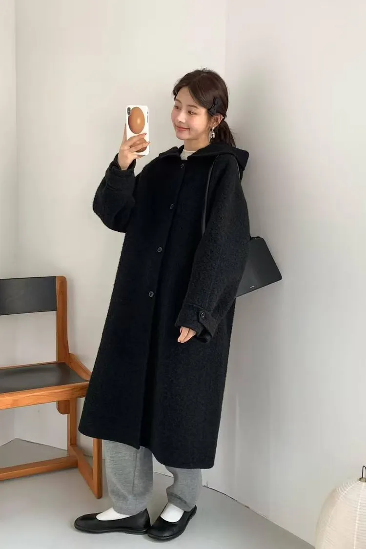 韓國代購 egg 雞蛋家 質感 連帽羊絨羊毛大衣外套 長版大衣外套