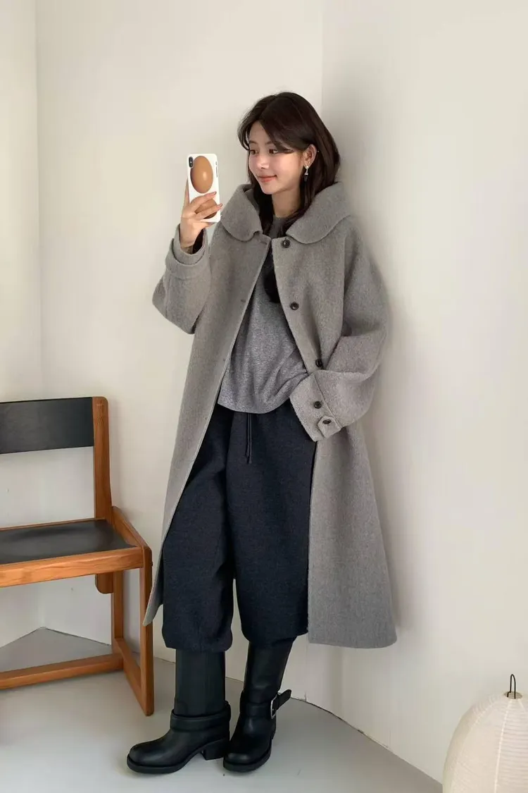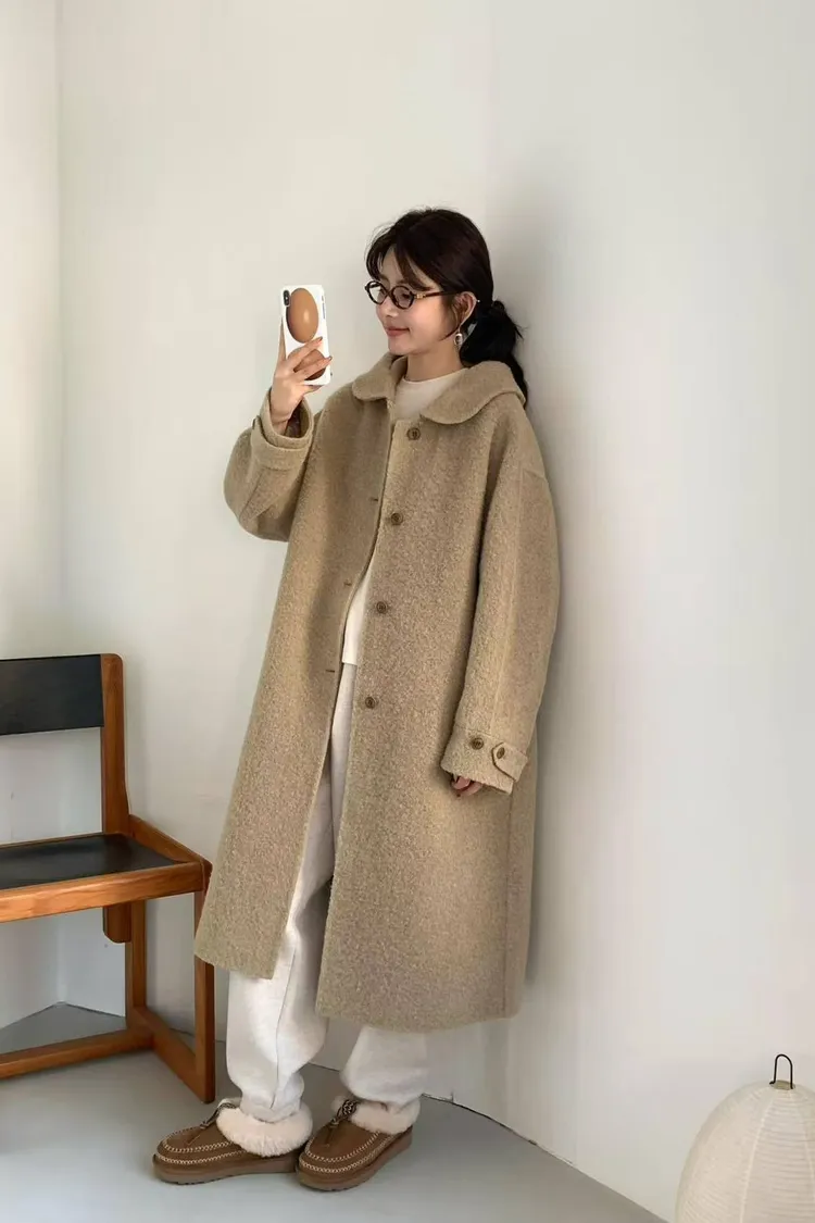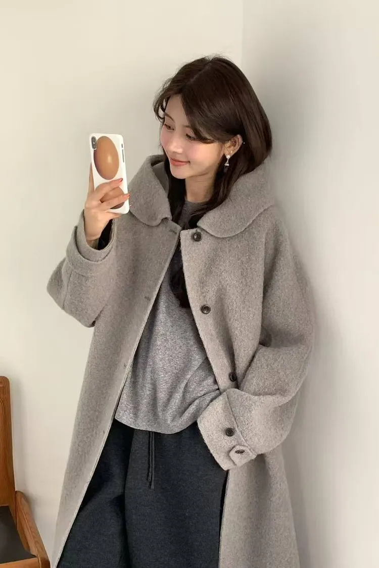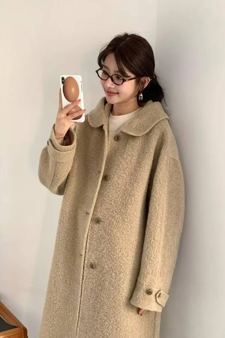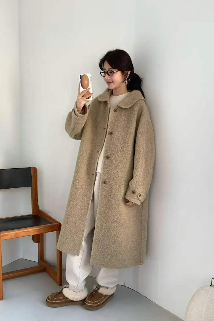 韓國代購 egg 雞蛋家 質感 連帽羊絨羊毛大衣外套 長版大衣外套