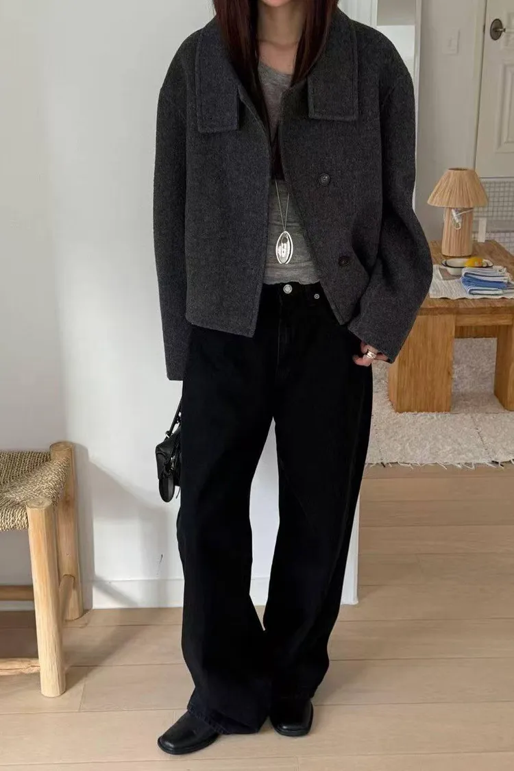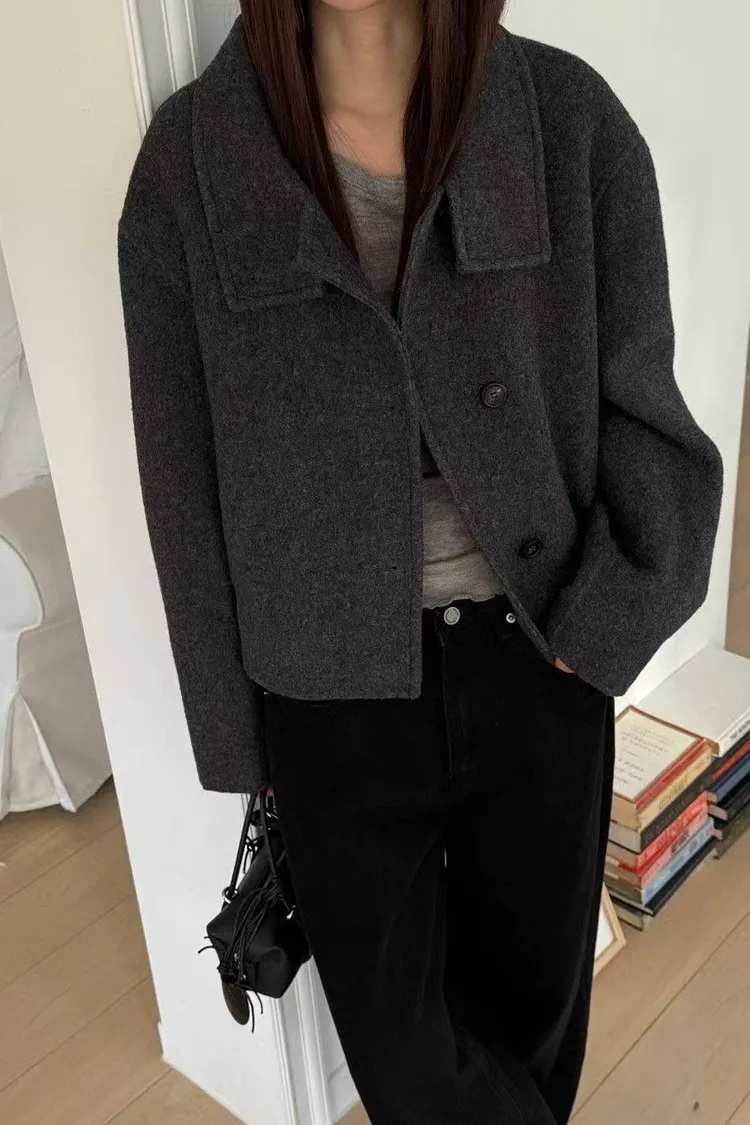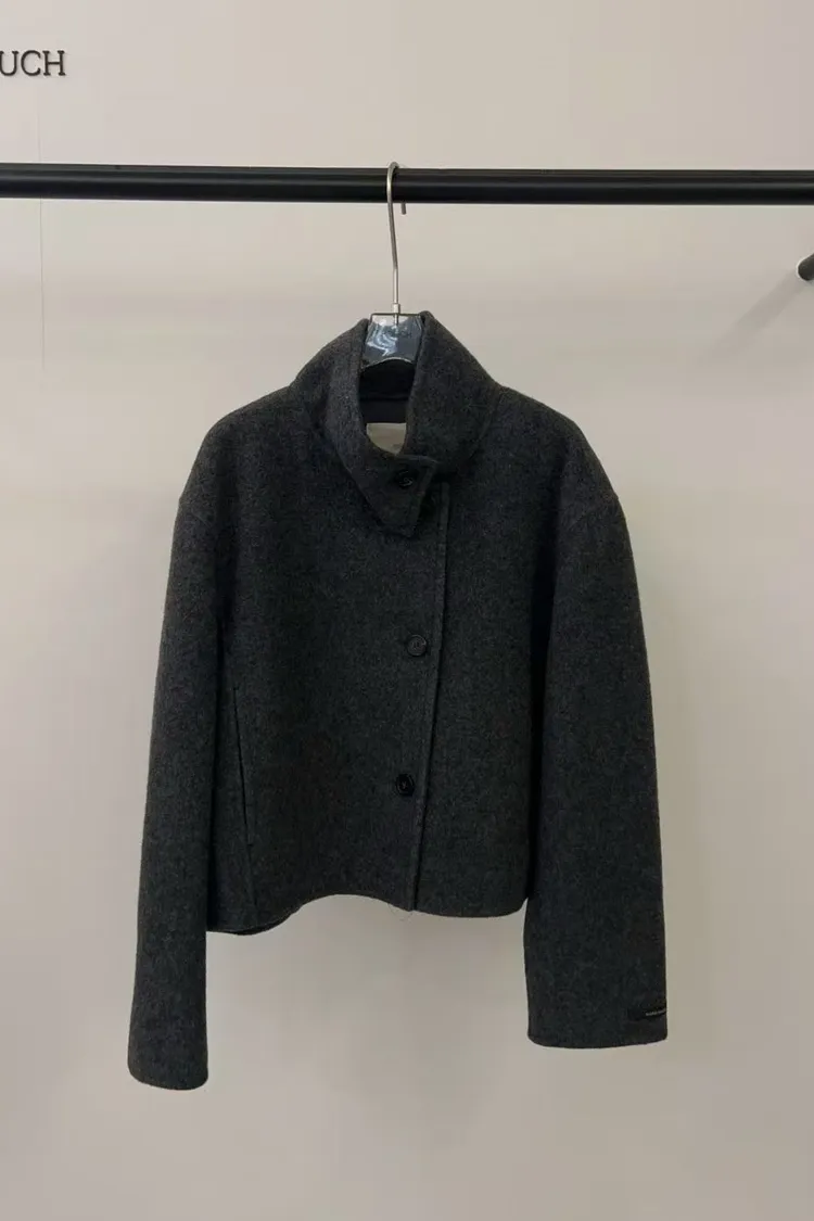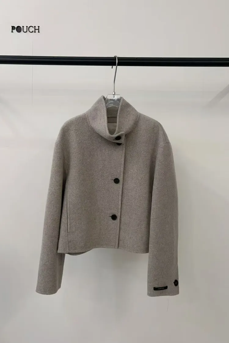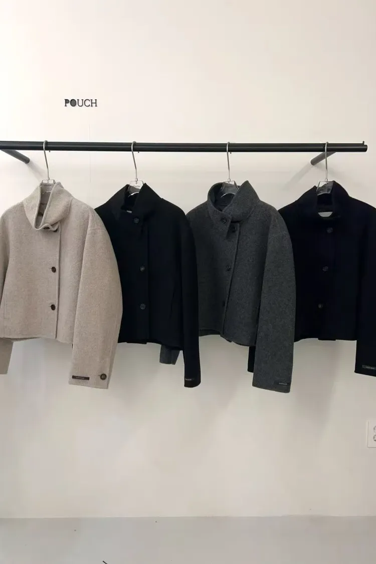 韓國東大門代購 高級感立領大衣外套 短版大衣外套