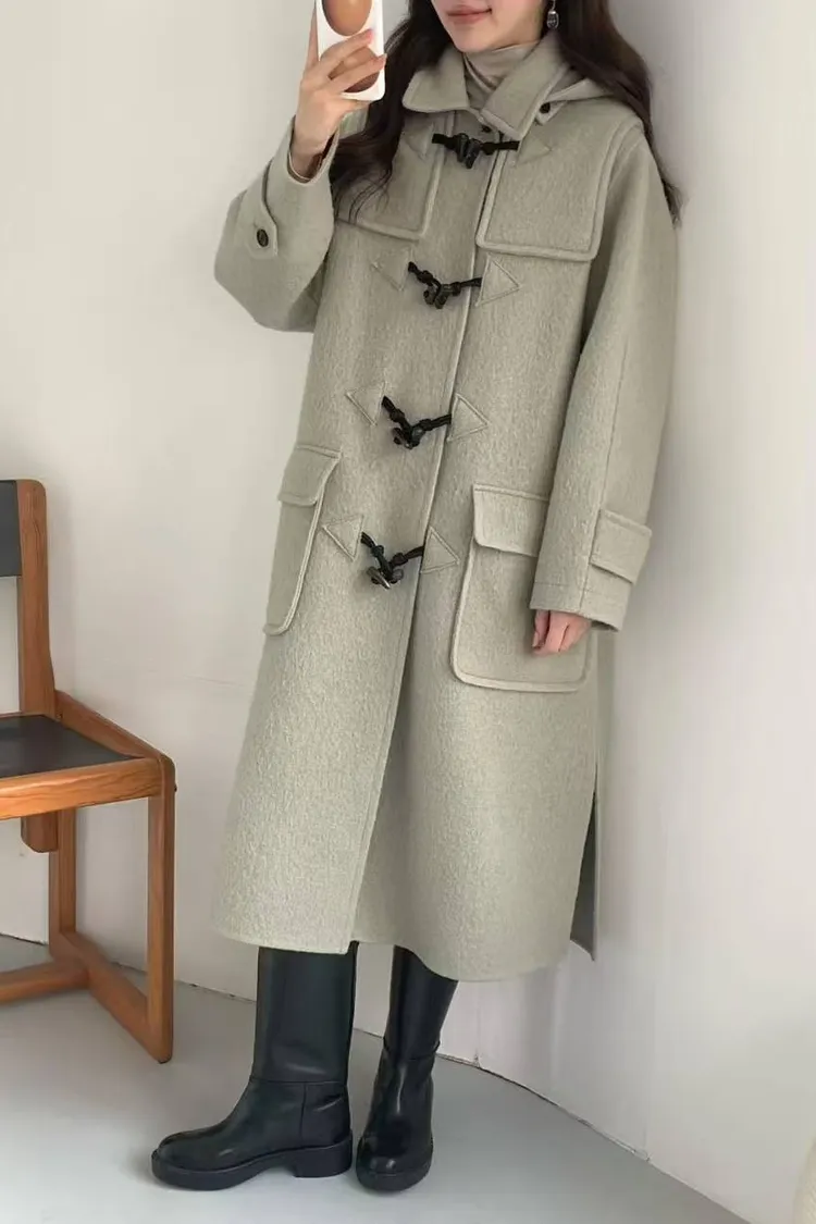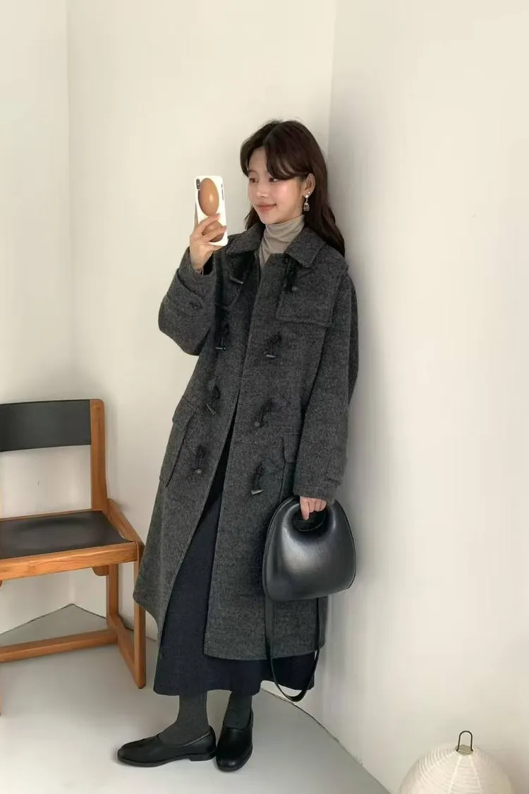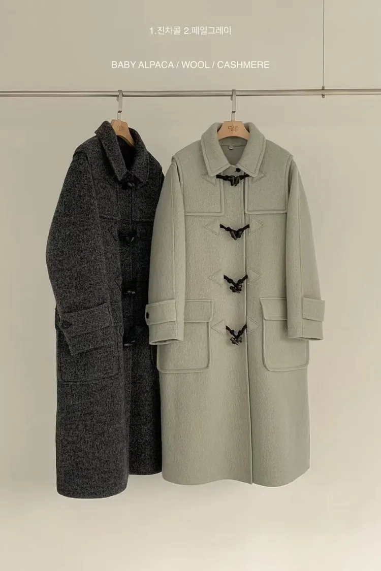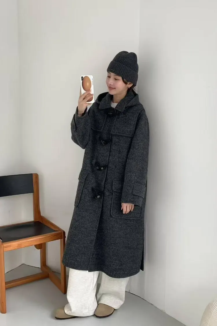 韓國代購 egg 雞蛋家 質感 羊絨羊毛牛角扣大衣外套 長版大衣外套