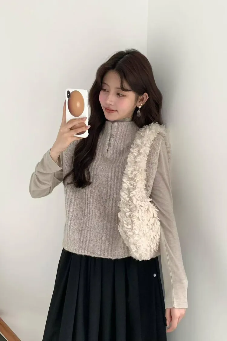 韓國連線款 egg 雞蛋家 超美 微高領羊毛針織背心