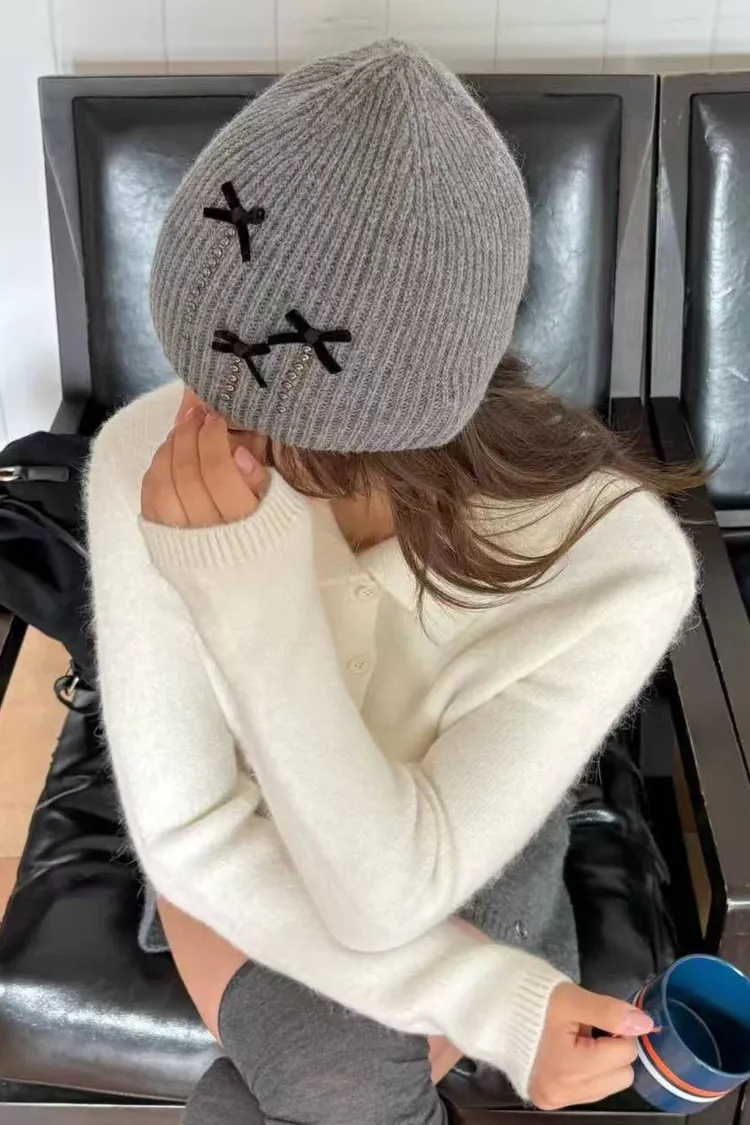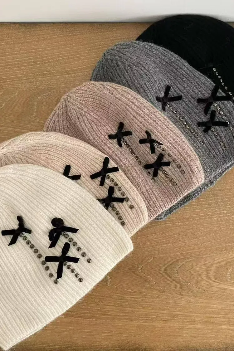韓國代購 冬季新款 蝴蝶結保暖帽子 毛帽