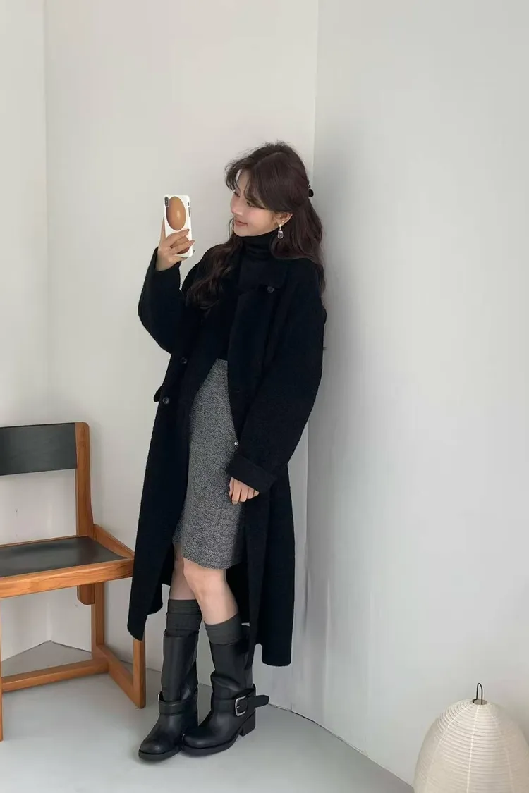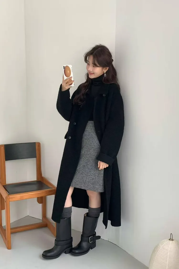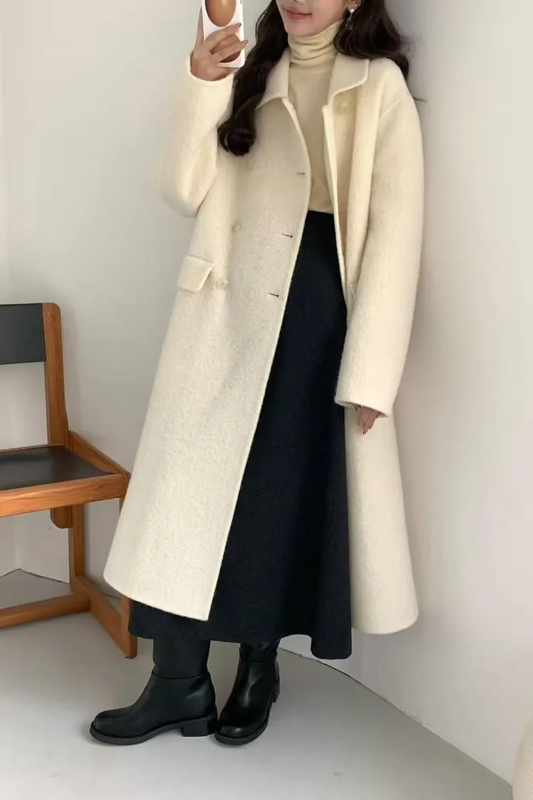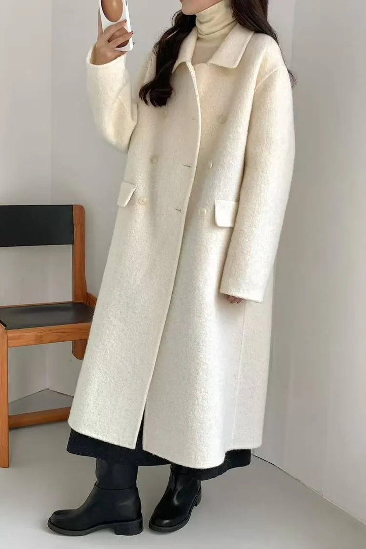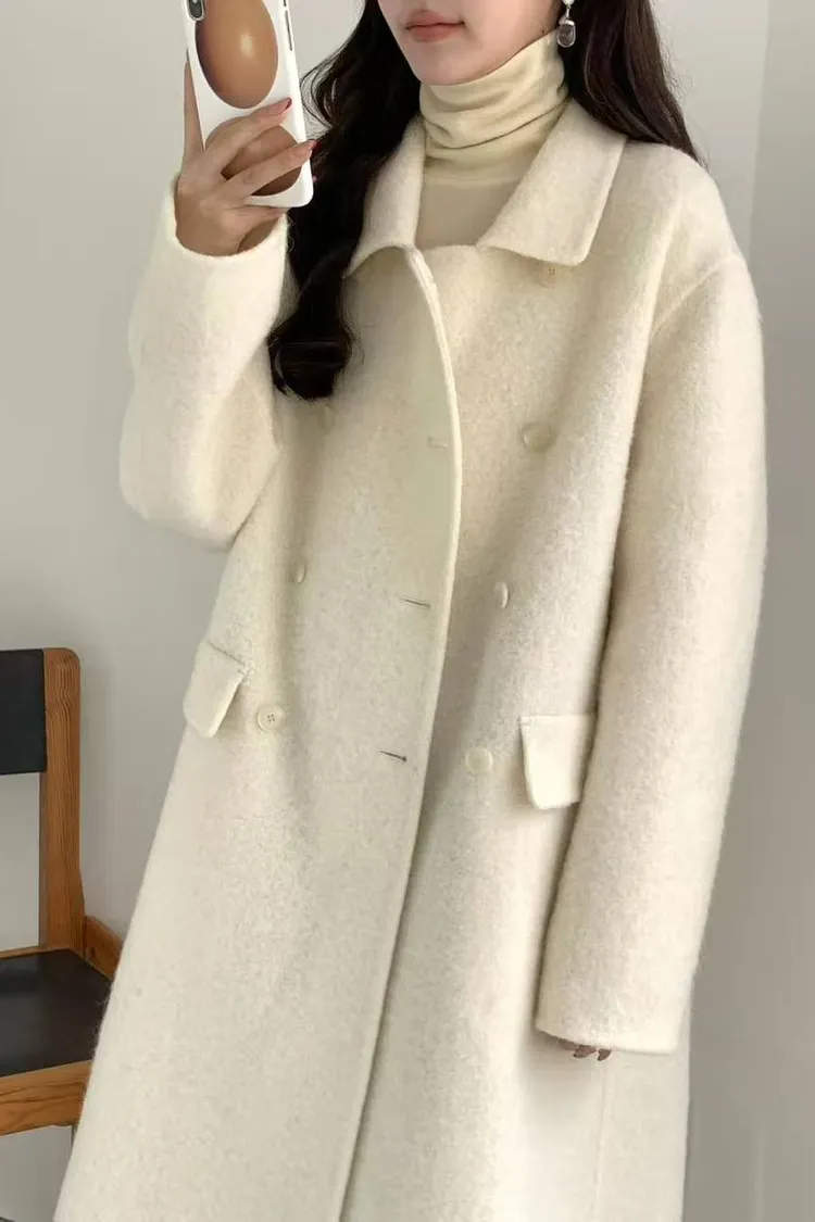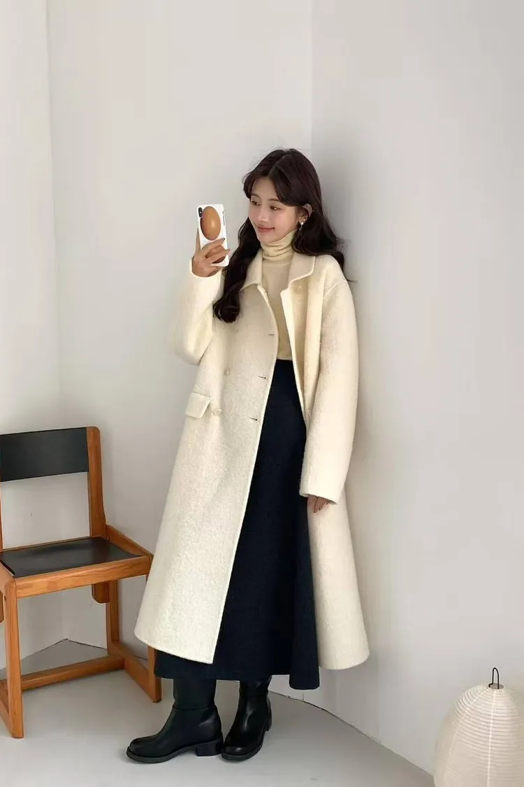 韓國代購 egg 雞蛋家 超美 雙排扣 羊駝毛羊毛大衣外套