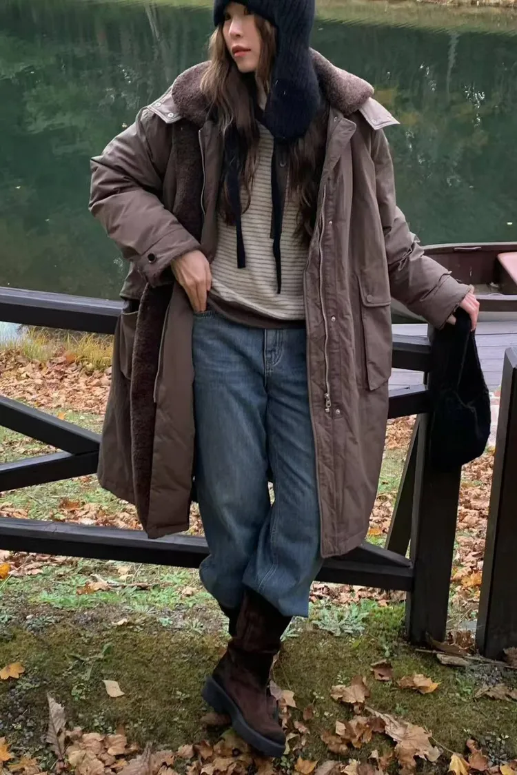 韓國代購 保暖長版羽絨外套 防潑水羽絨服外套 鴨絨100%