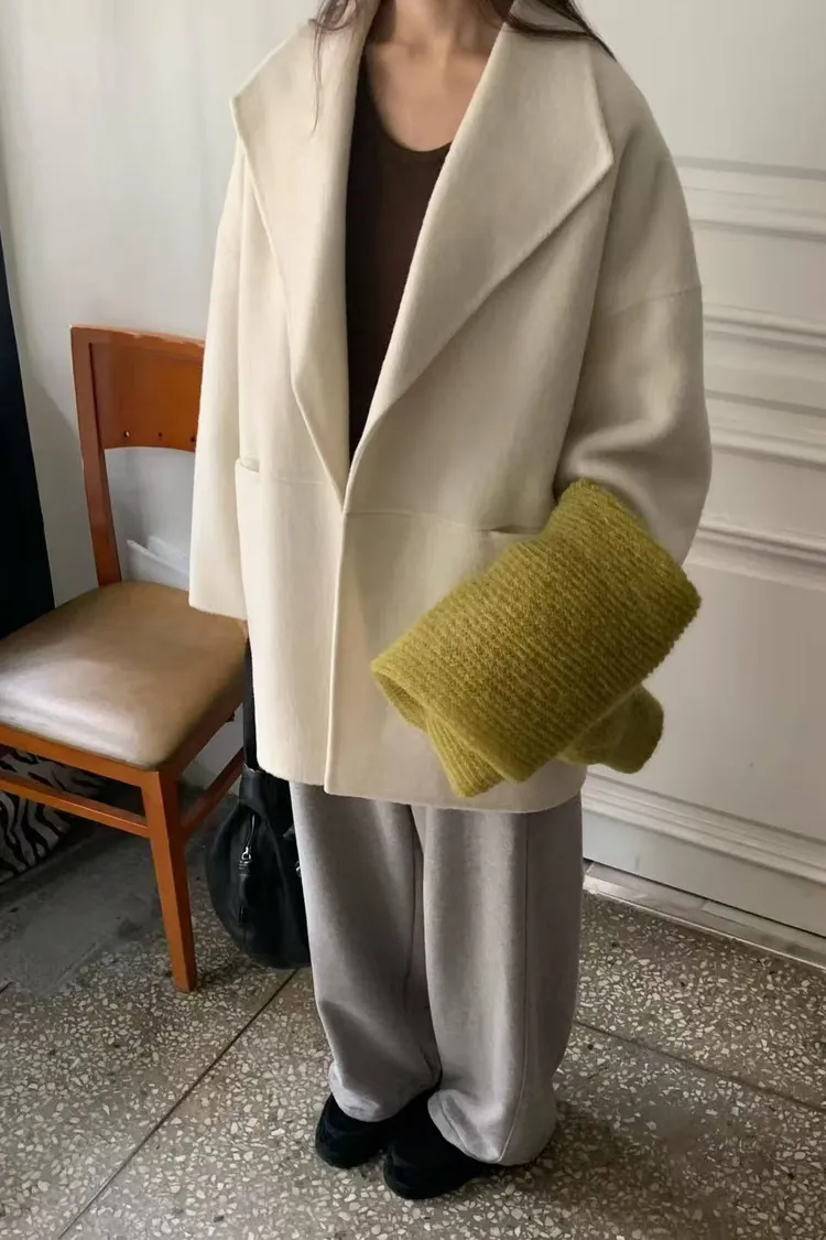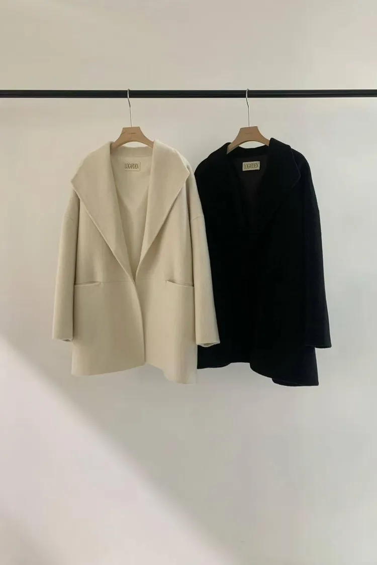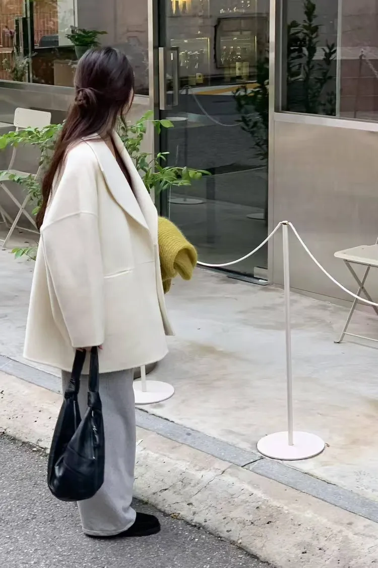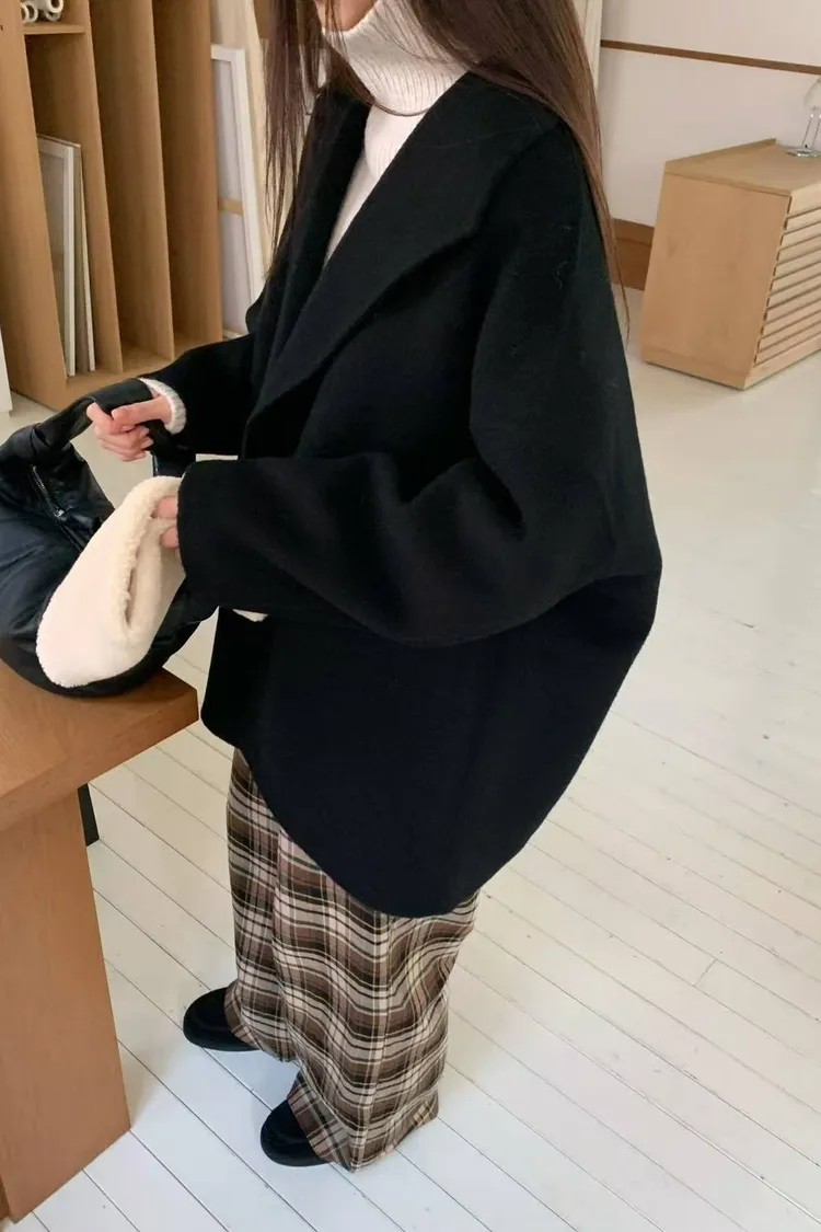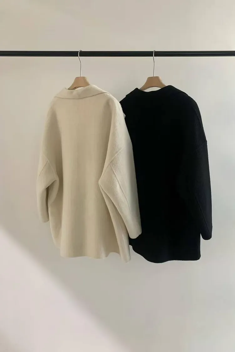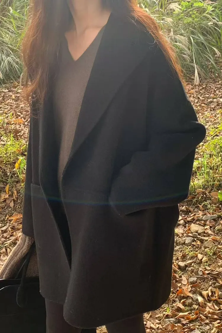 韓國代購 氣質簡約 羊毛90%大衣外套 中長款大衣外套