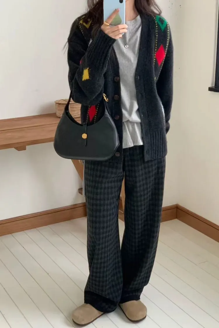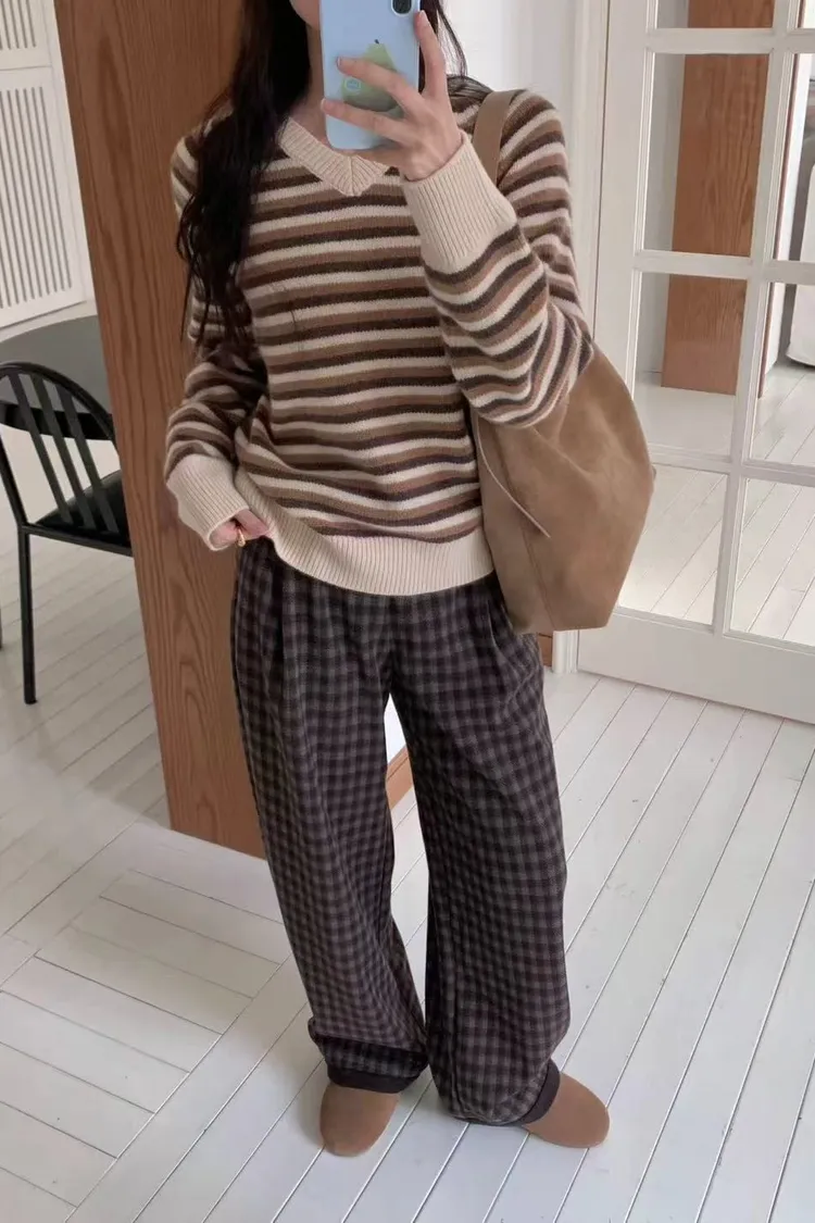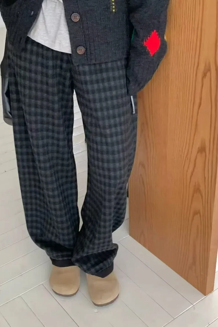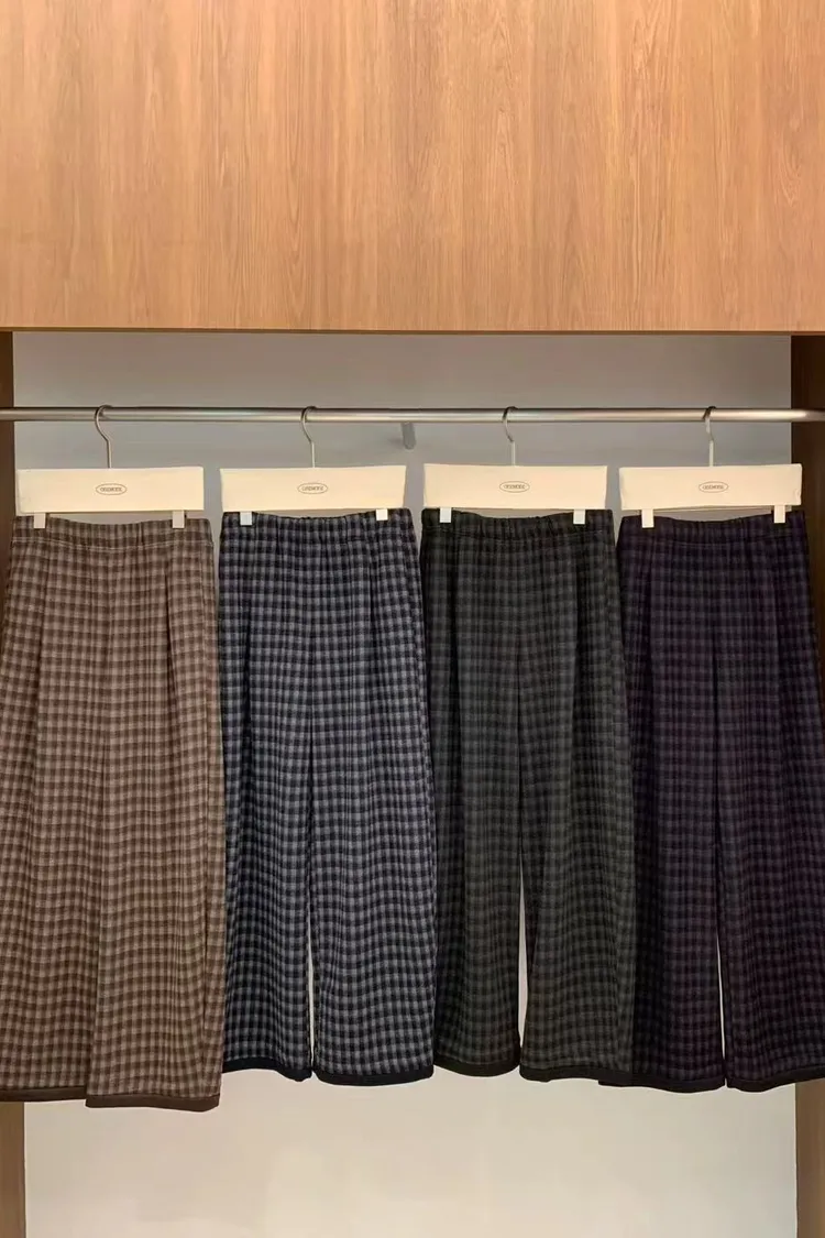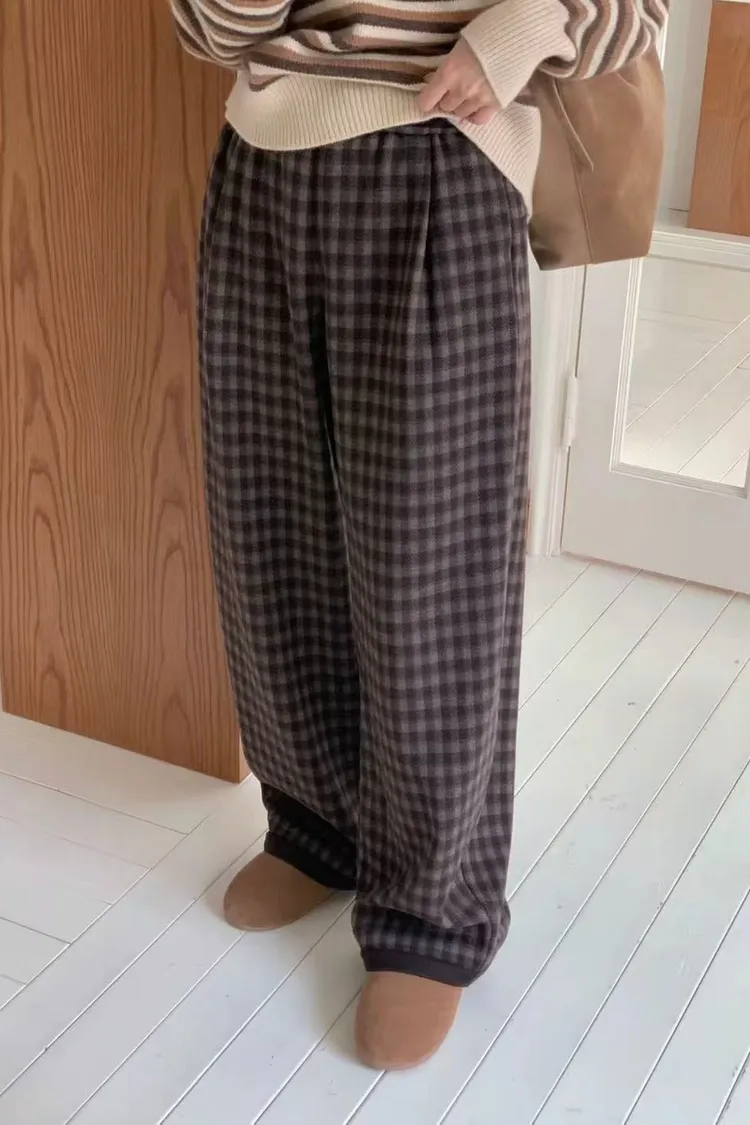 韓國代購 ONE MONE 冬季新款 保暖羊毛鬆緊腰格子長褲 休閒長褲