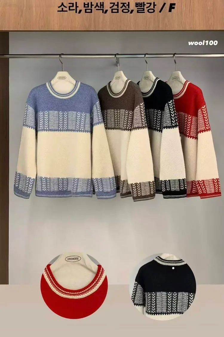 韓國代購 ONE MONE 超美配色毛衣 羊毛100%毛衣 保暖上衣