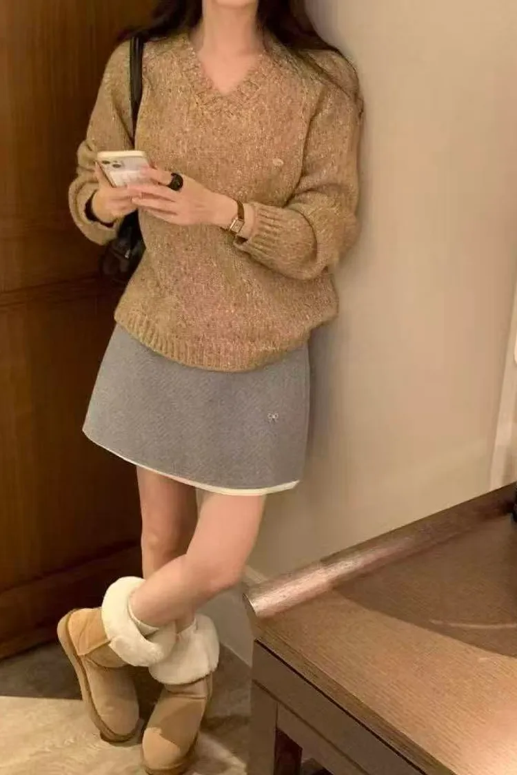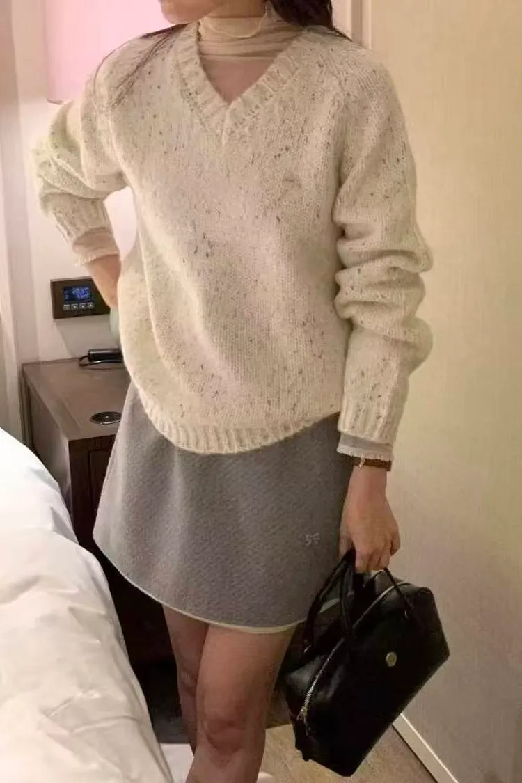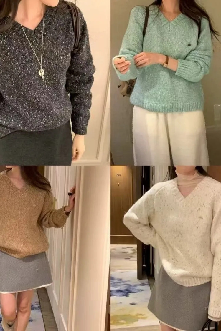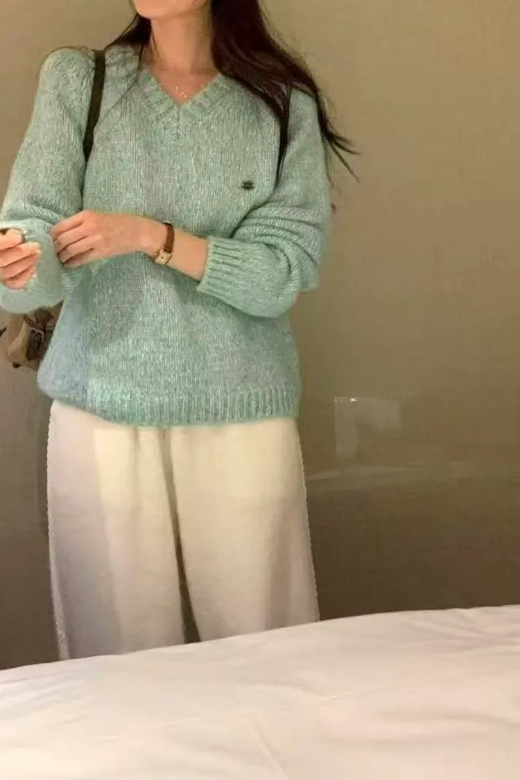 韓國代購 ONE MONE v領超美毛衣 羊毛100%毛衣 保暖上衣