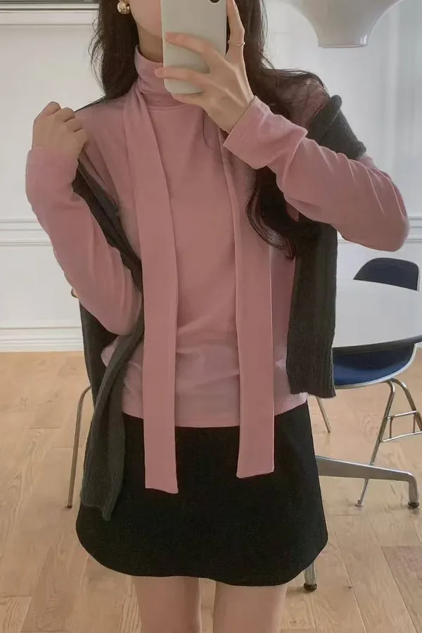 韓國代購 氣質系帶高領上衣 內搭上衣 打底衫