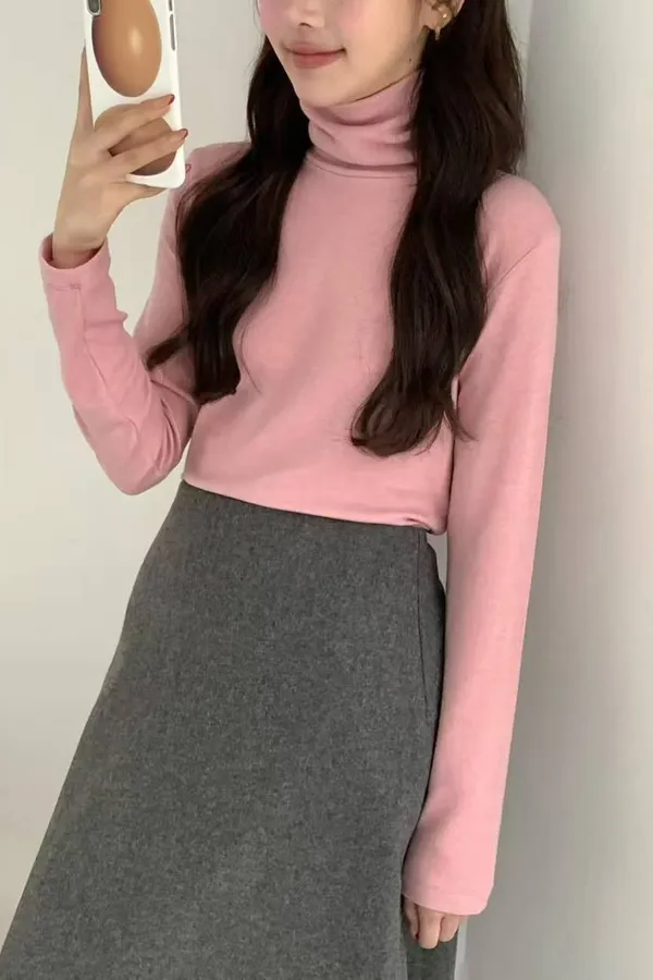 秋冬打底衫 高領打底衫 套趾薄款保暖打底衫 極簡百搭打底衫