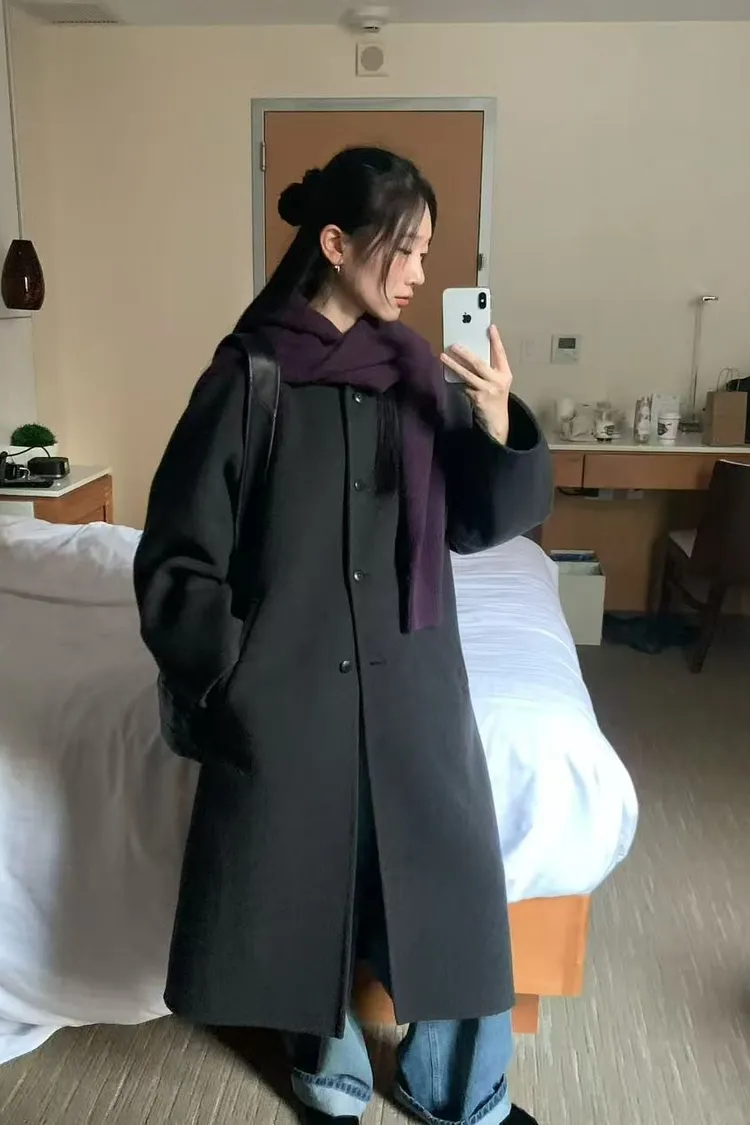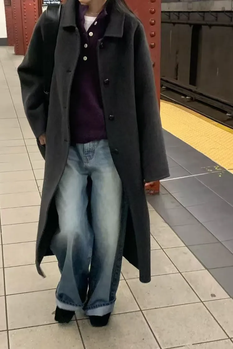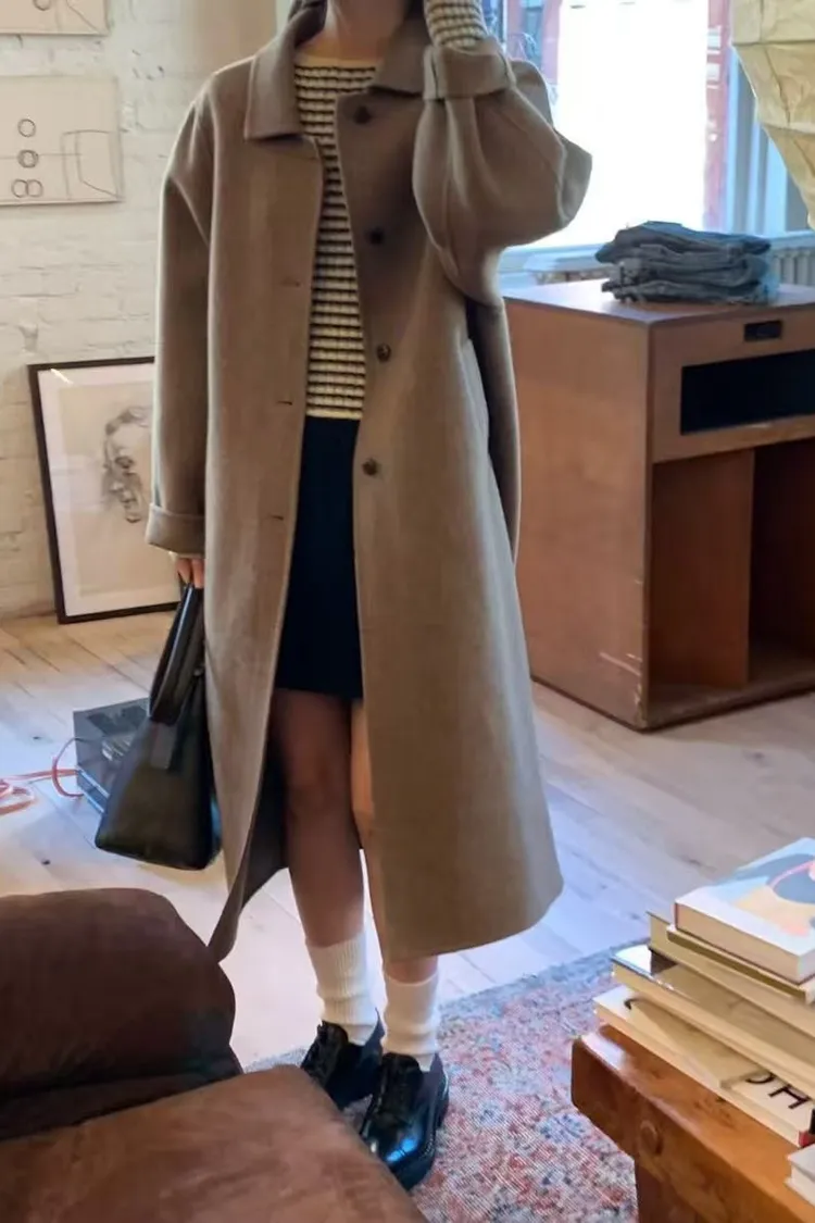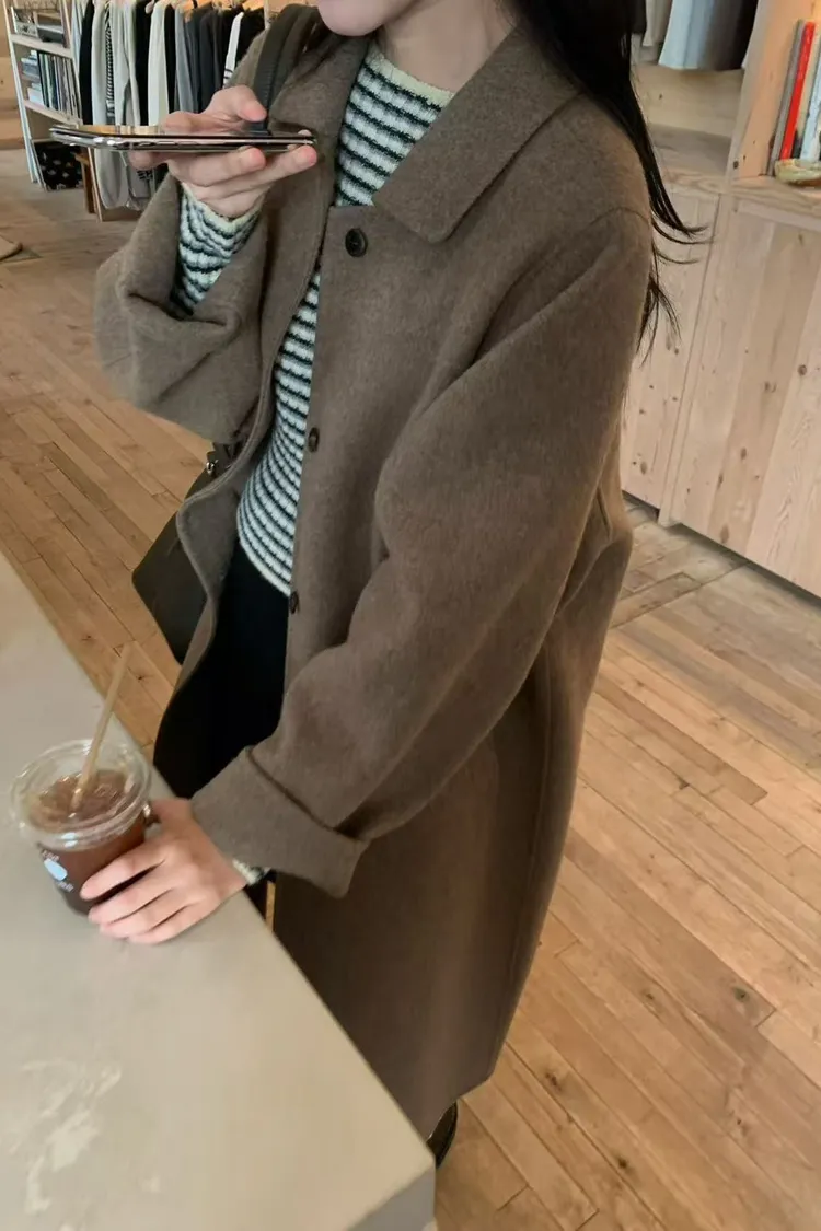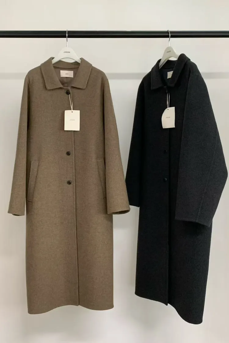 韓國設計師款 單排釦大衣 保暖長版羊毛手工大衣 手工製羊毛100%