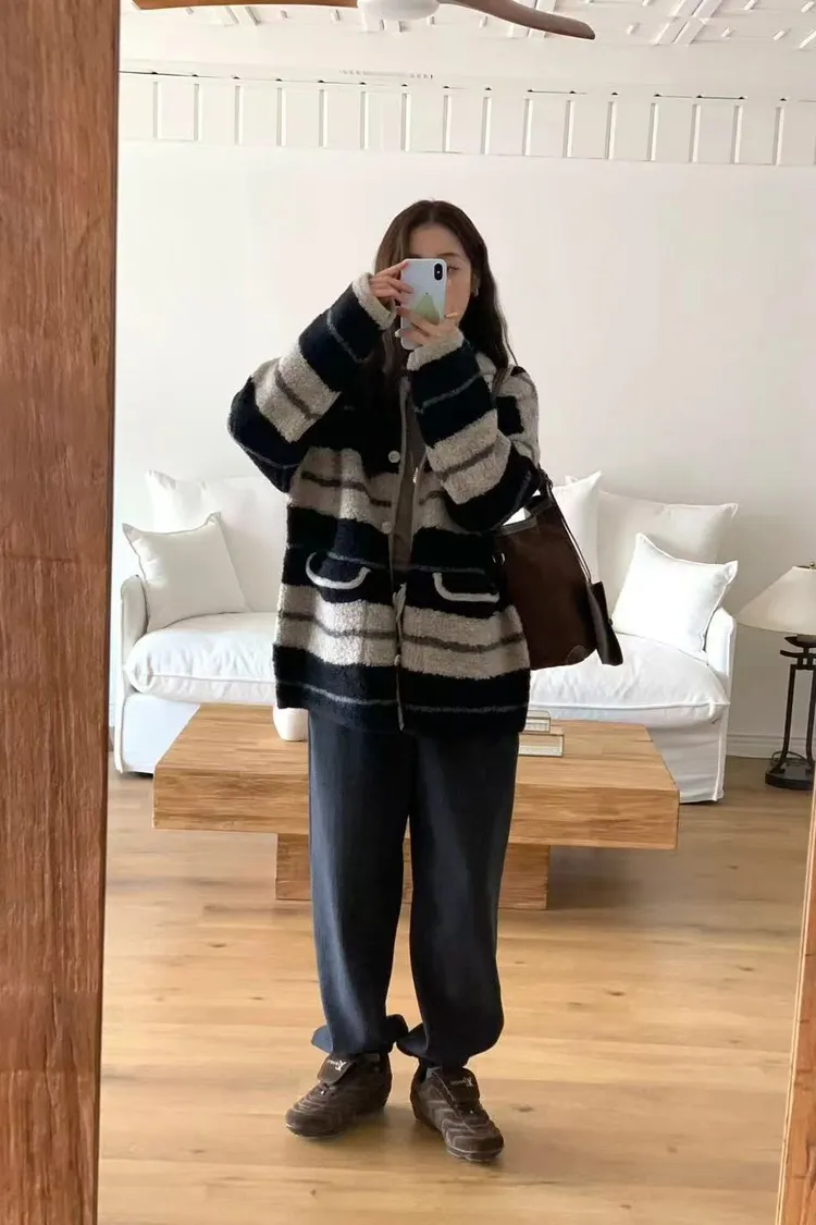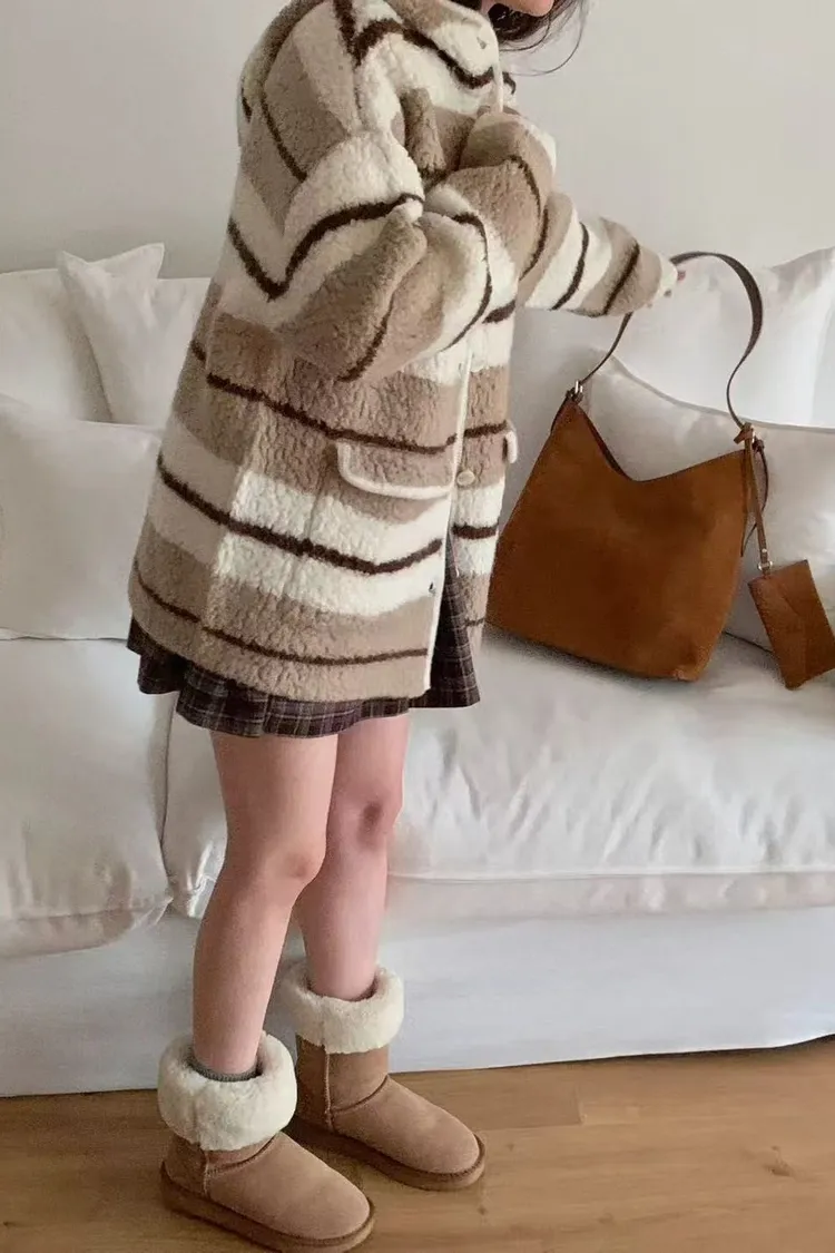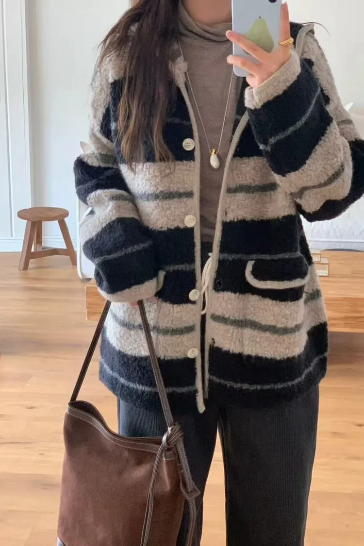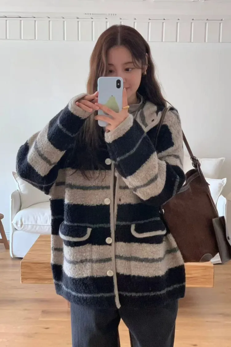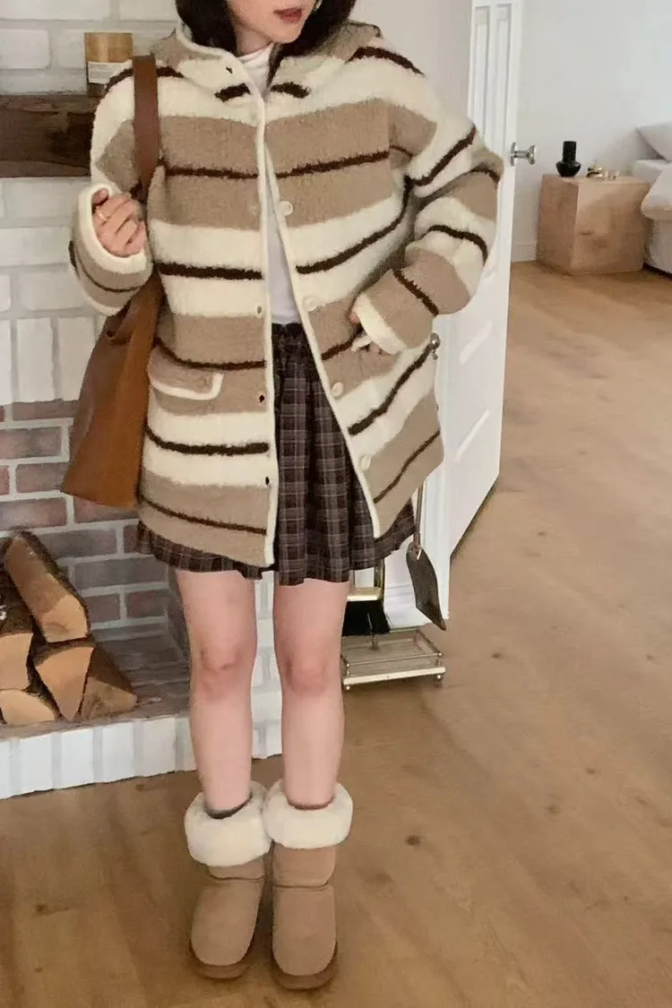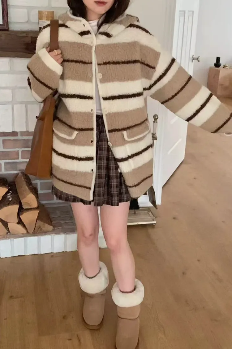 韓國代購 ONE MONE 羊毛100% 可愛拉絨連帽外套 口袋外套