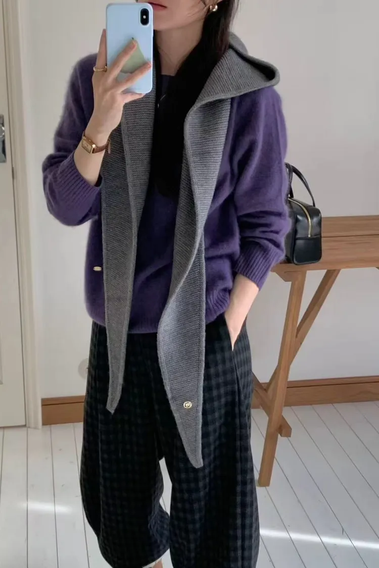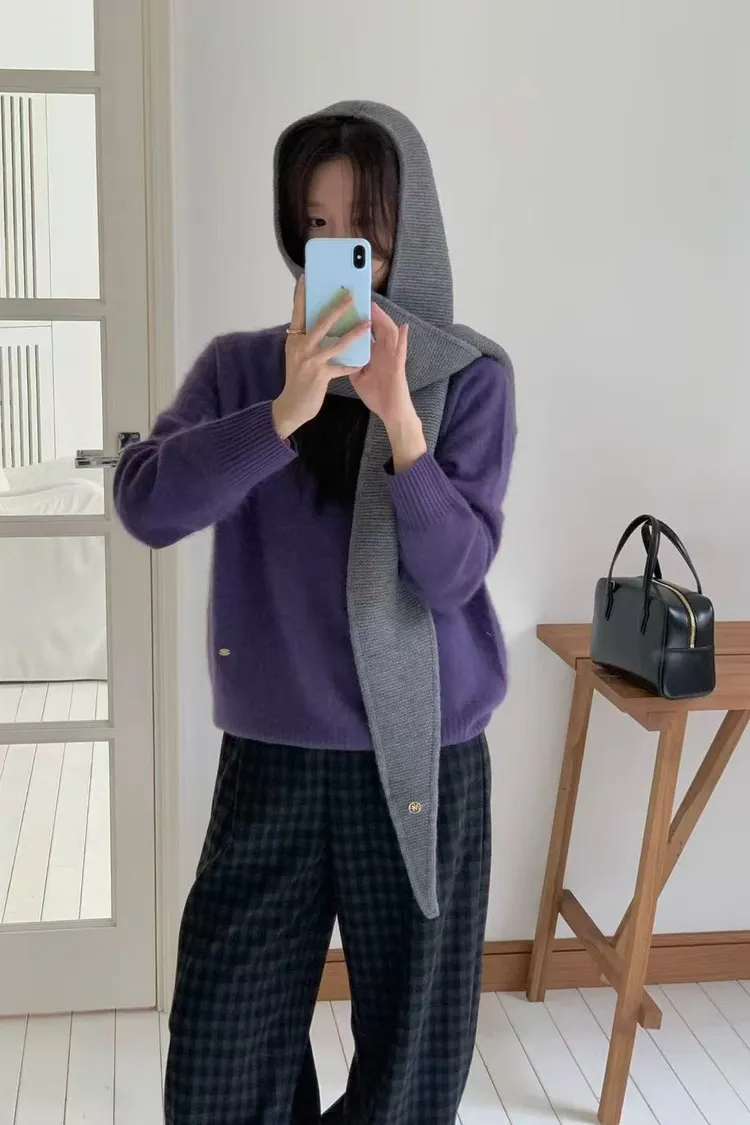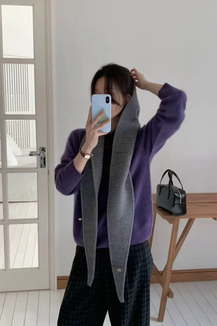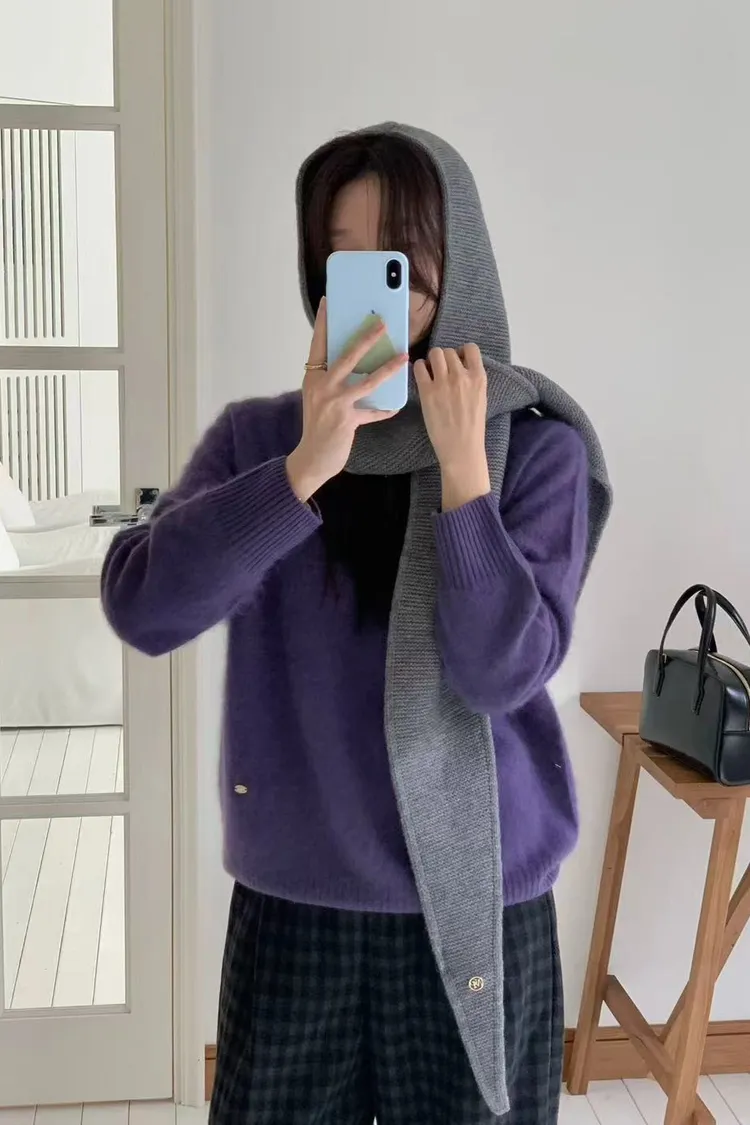 韓國代購 ONE MONE 羊毛100% 連帽 圍巾 披肩