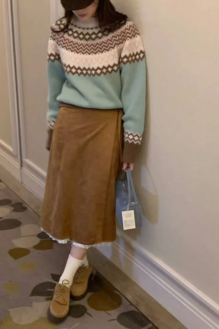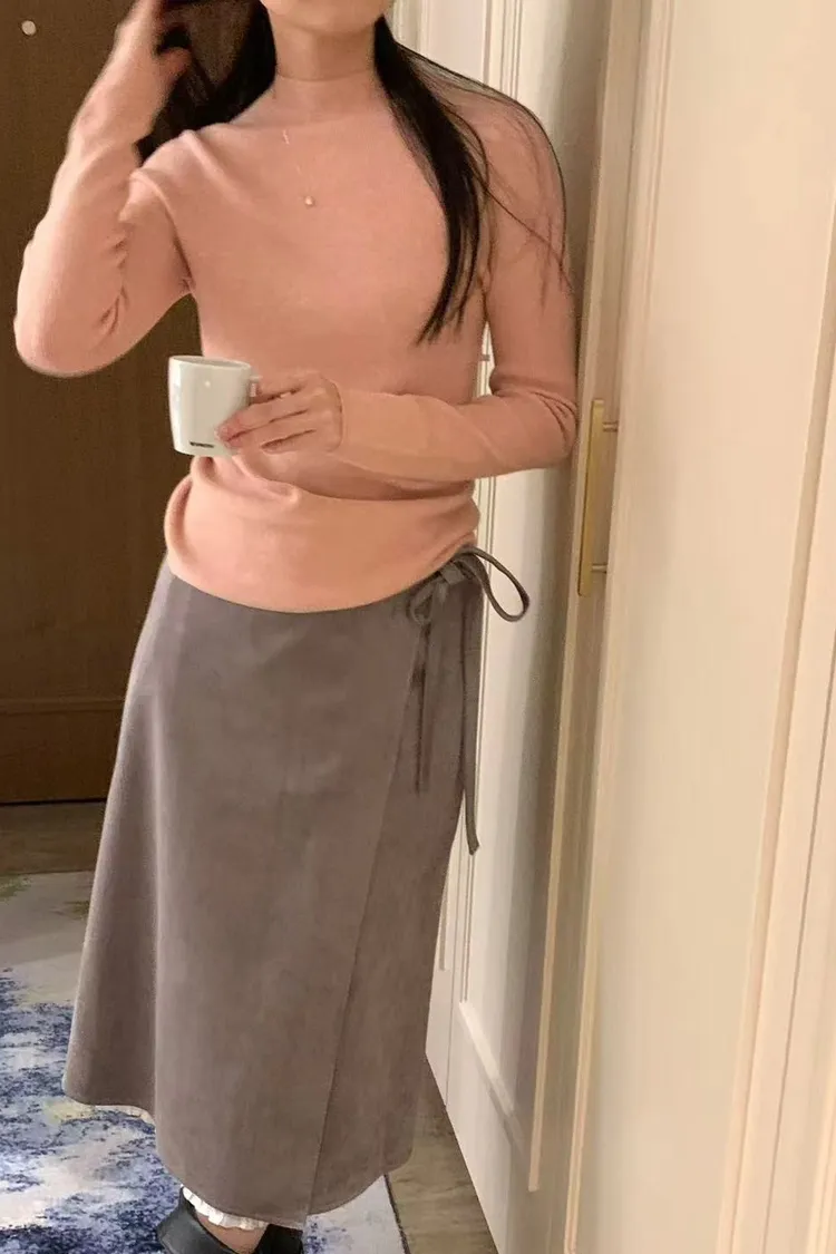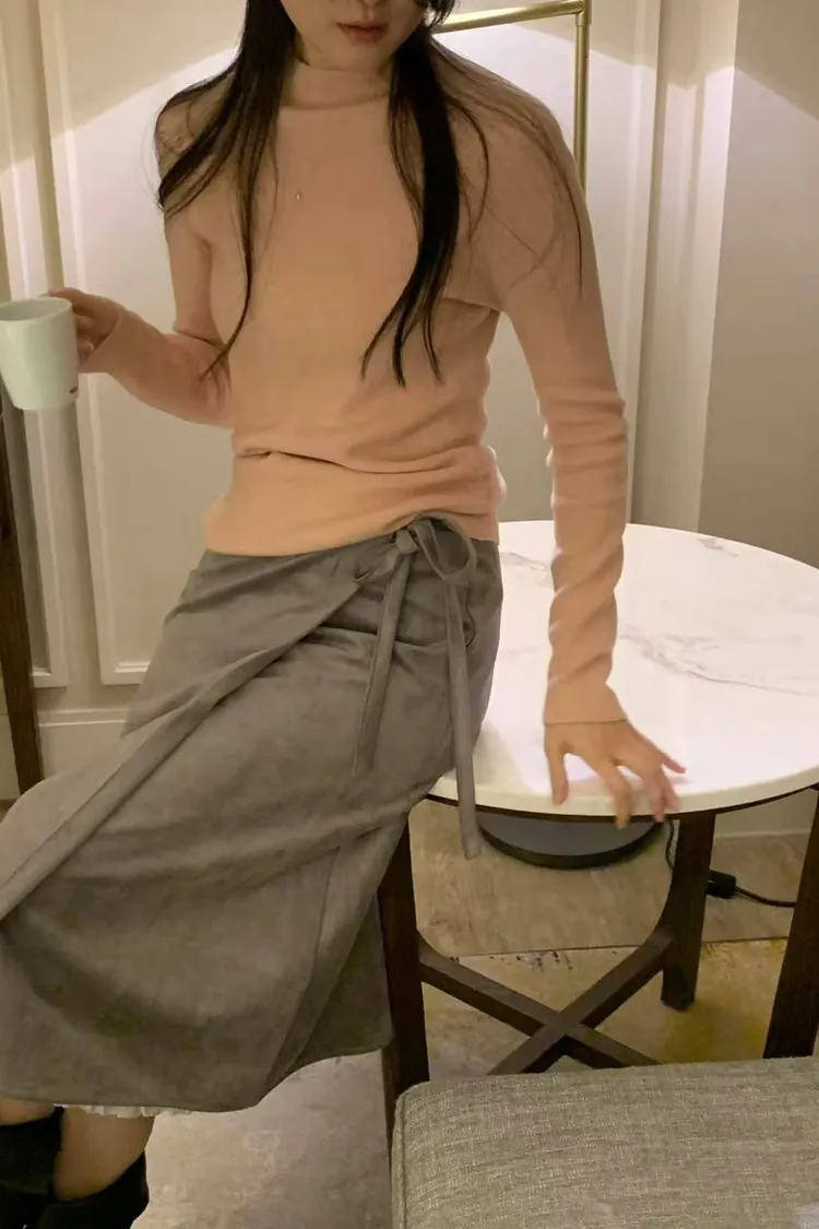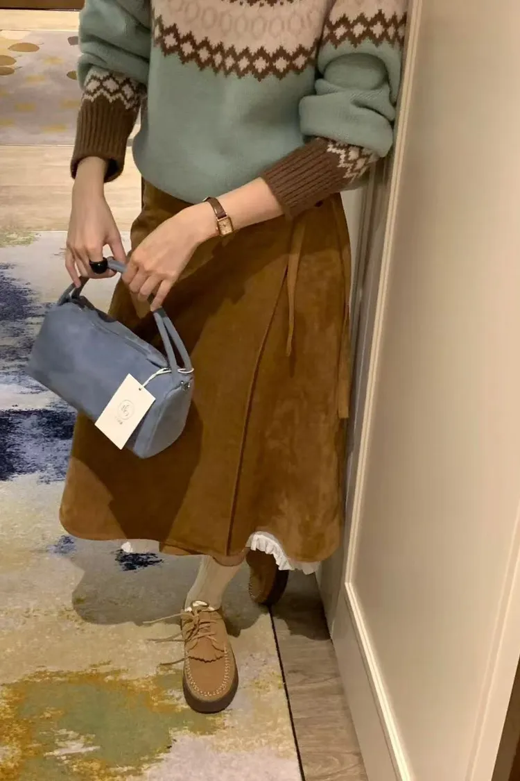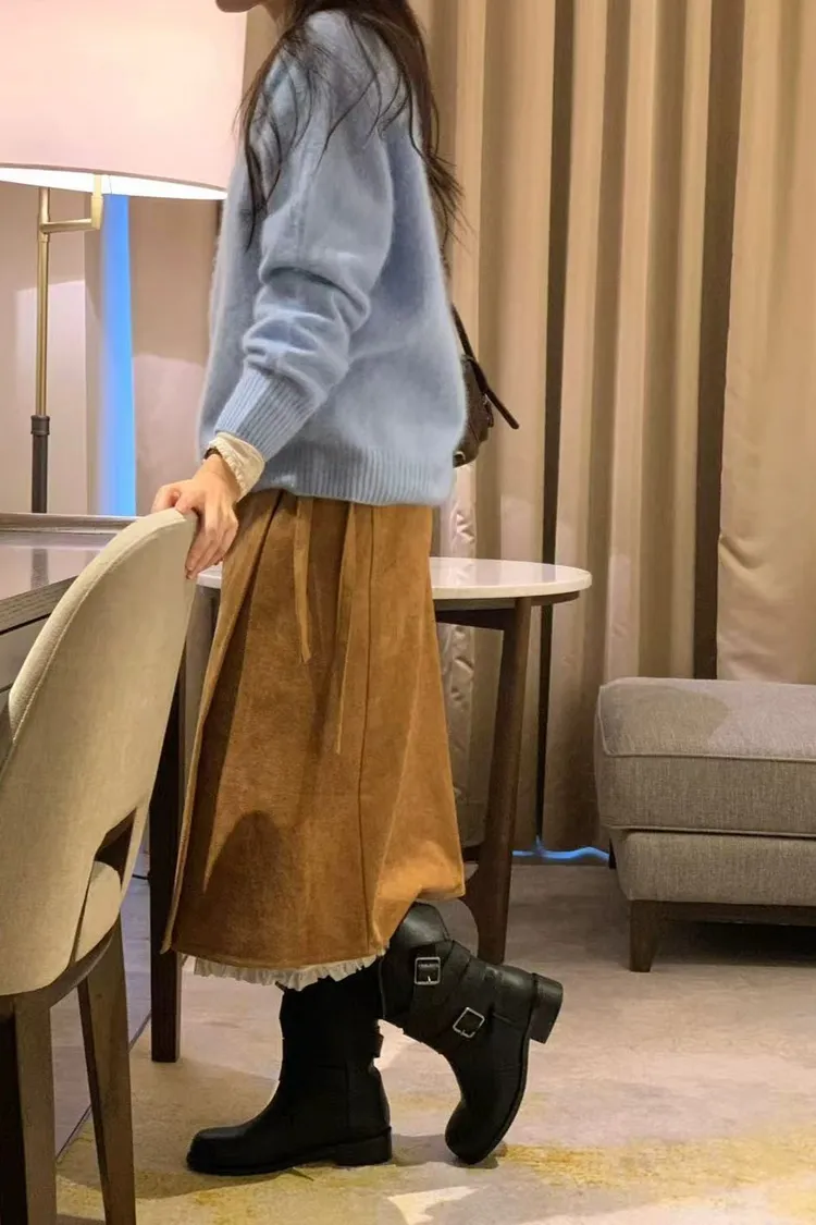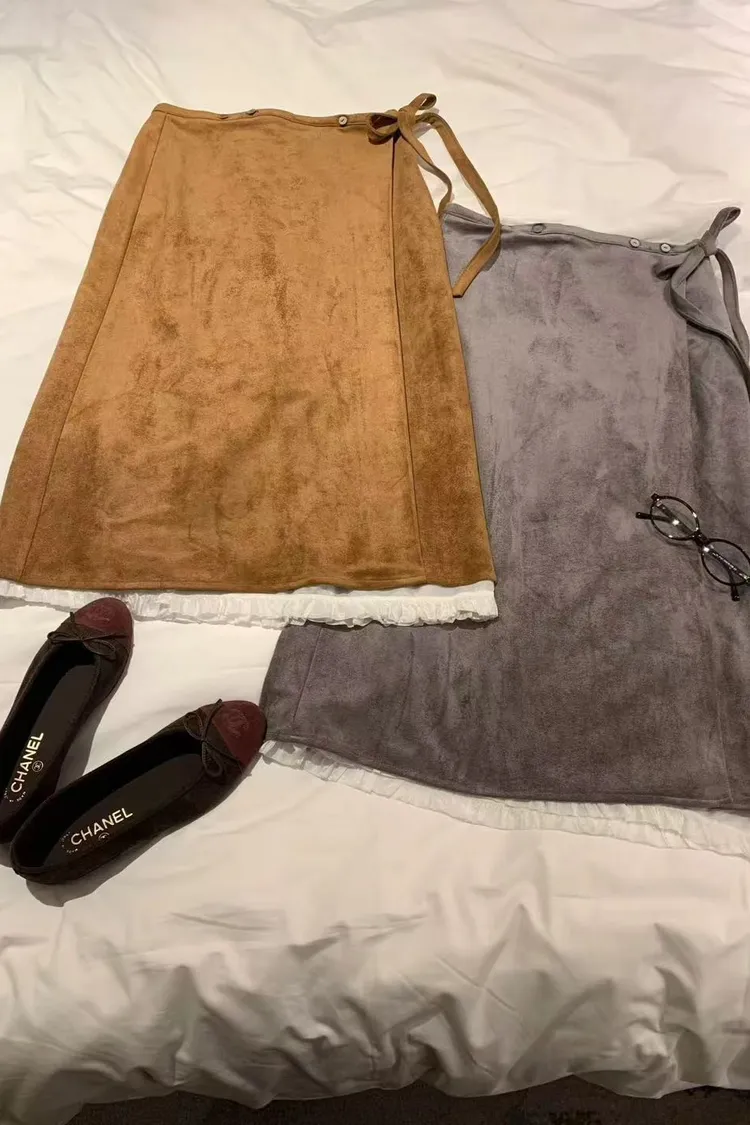韓國代購 ONE MONE 蕾絲麂皮長裙