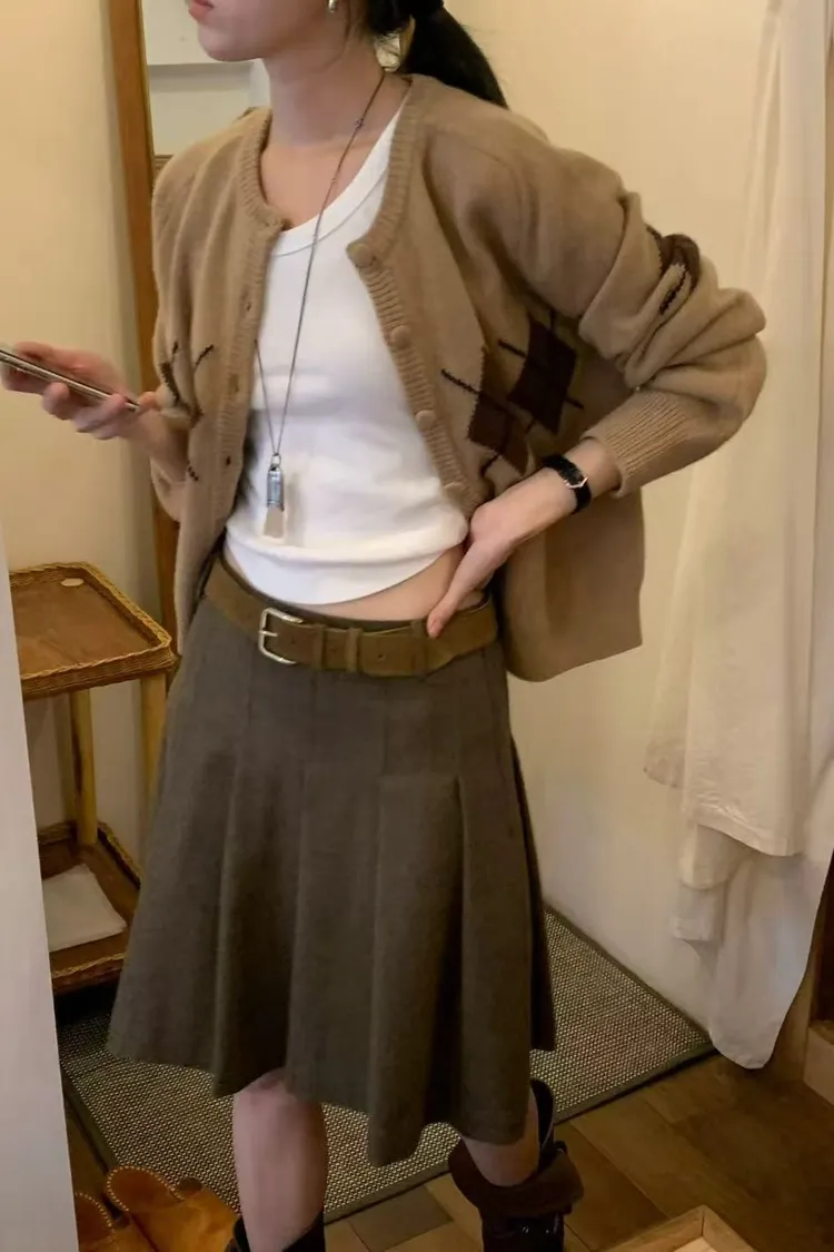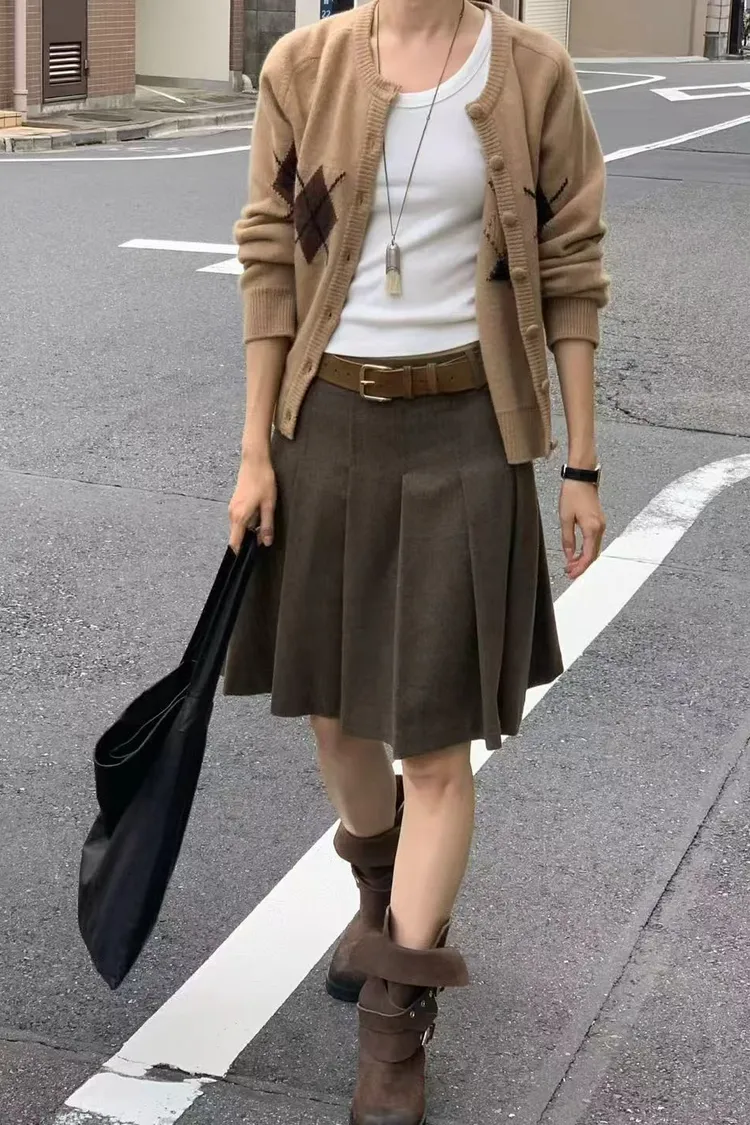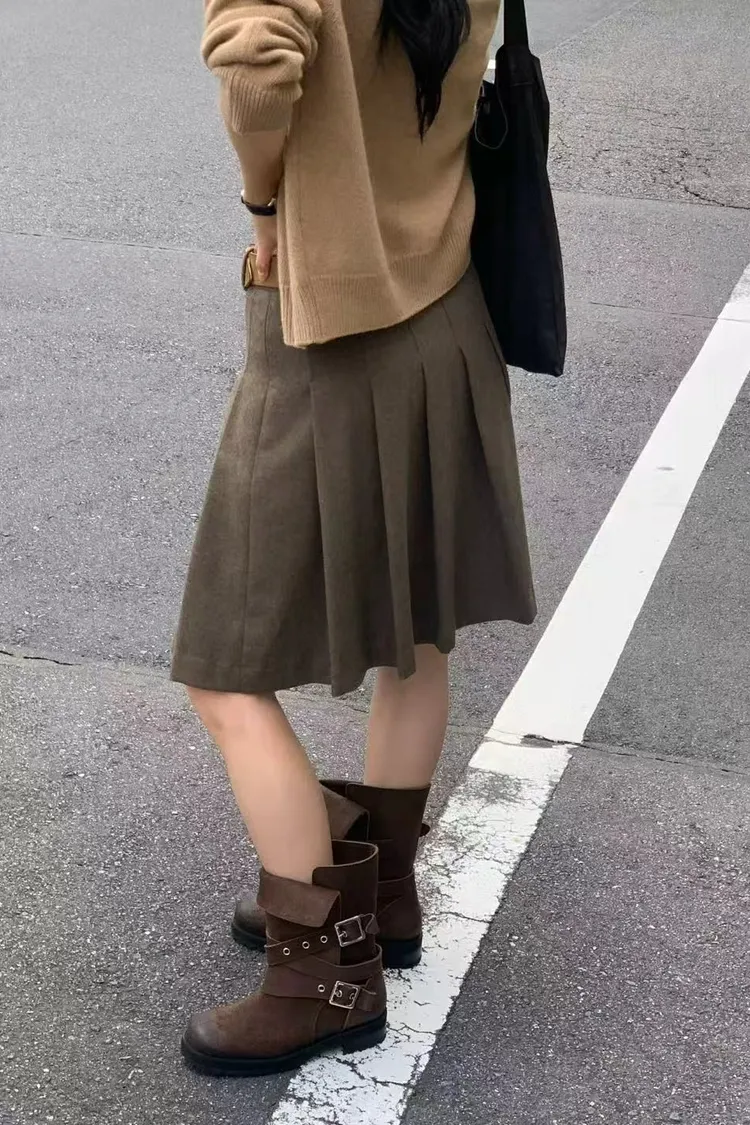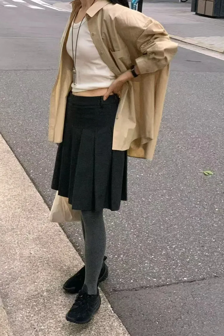 韓國代購 質感百搭 A字顯瘦百褶短裙