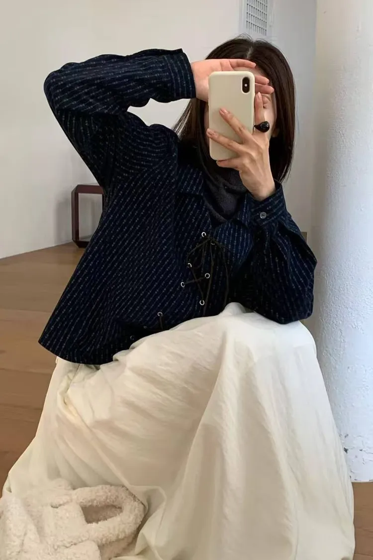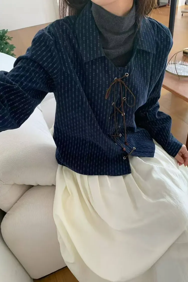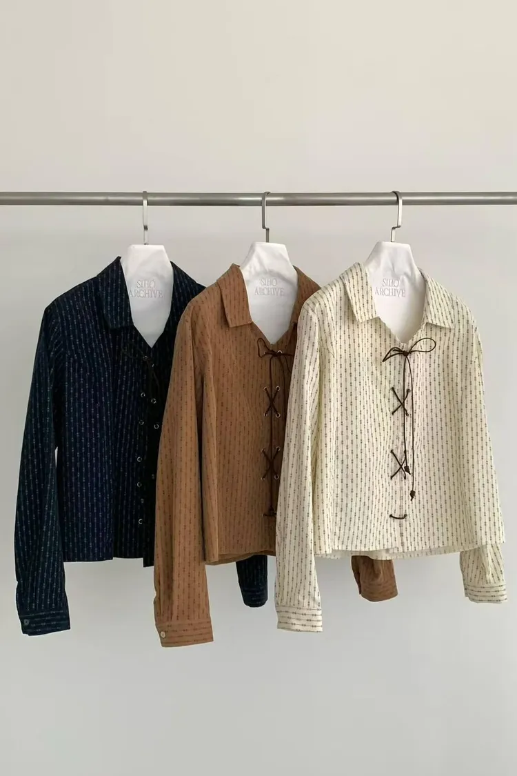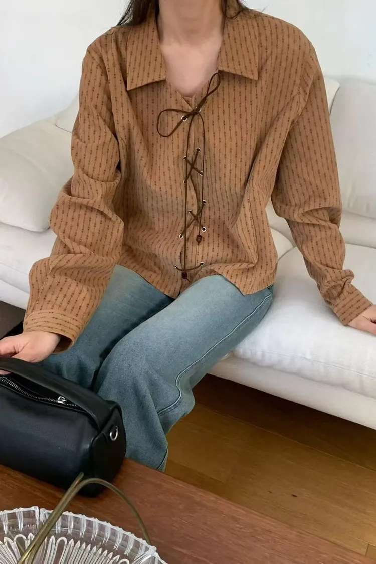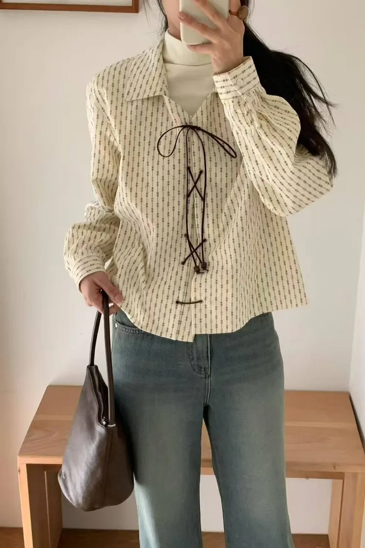 韓國代購 設計感 質感 交叉綁帶襯衫上衣