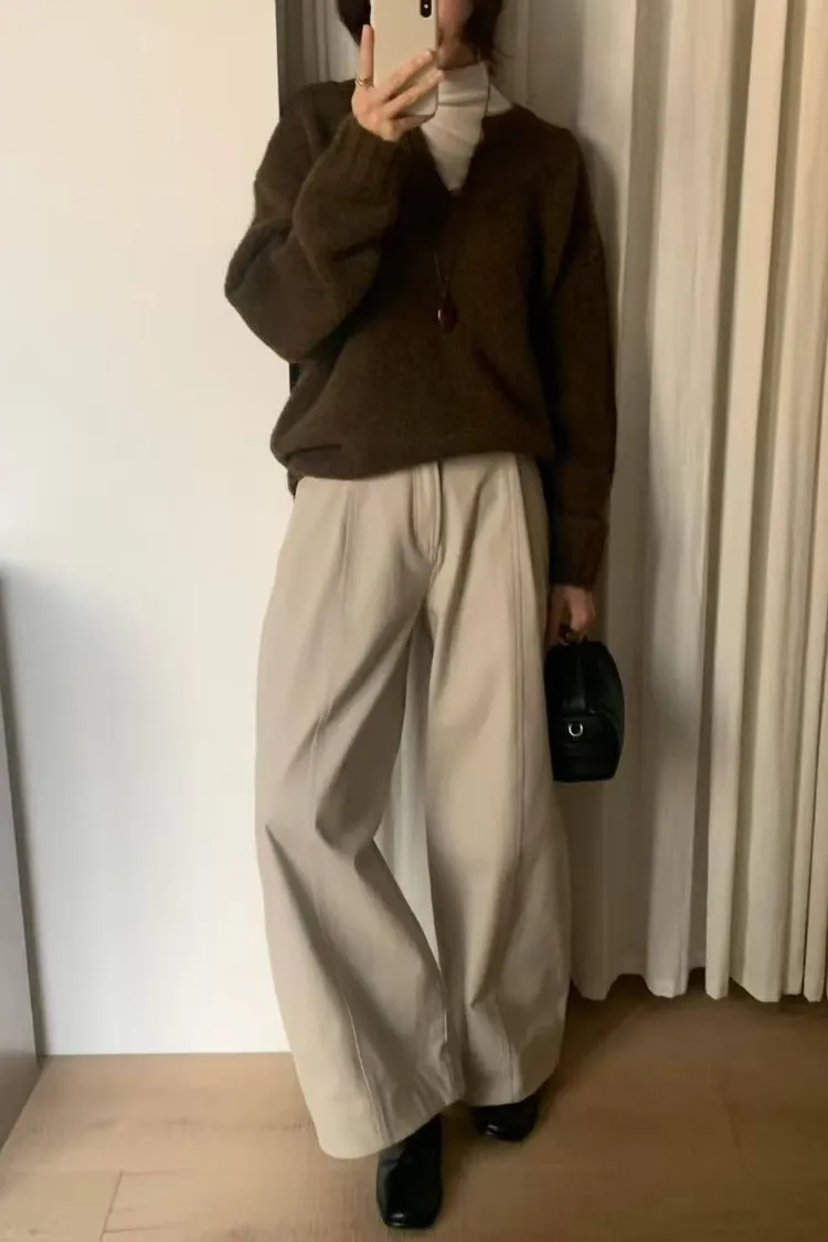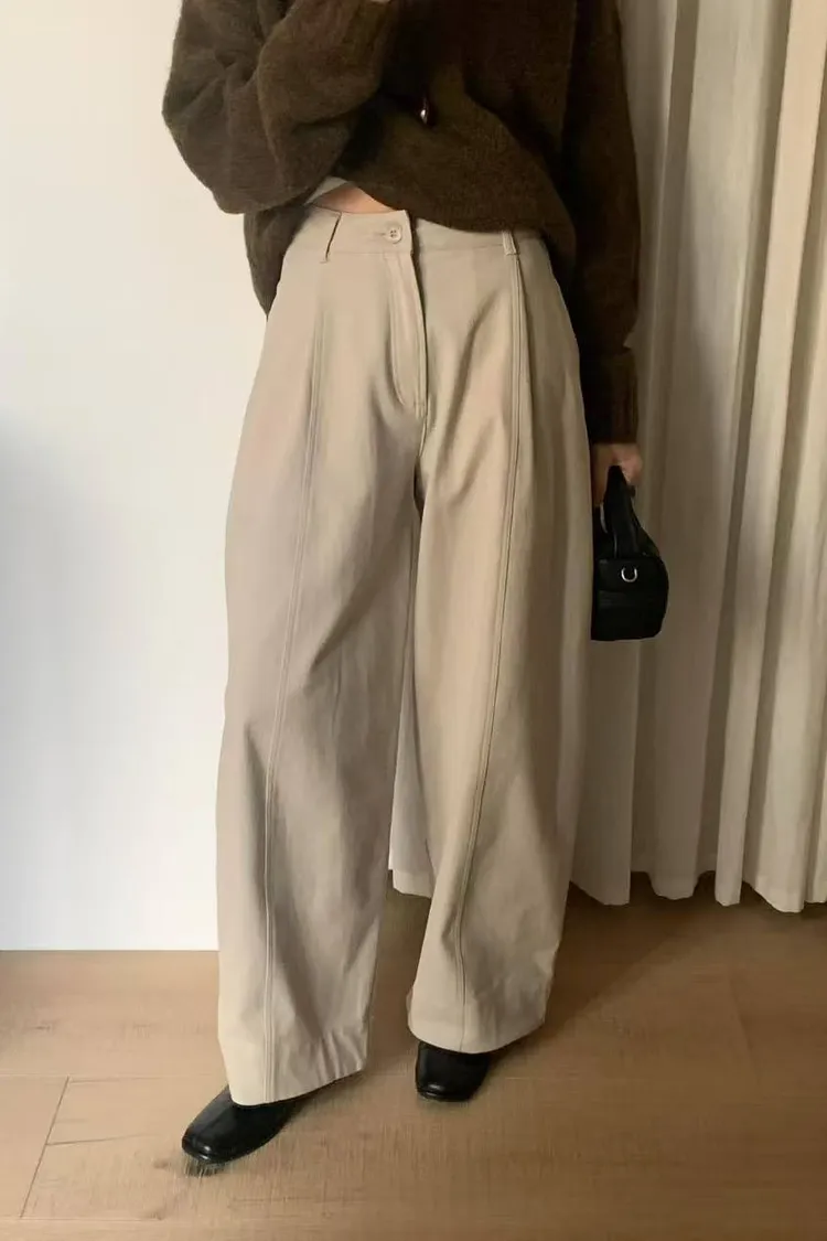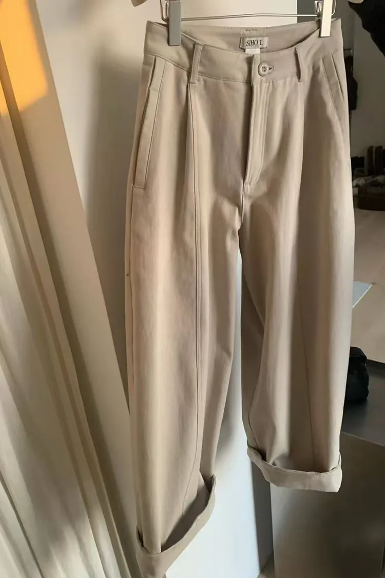 韓國代購 復古摺皺休閒長褲 休閒褲