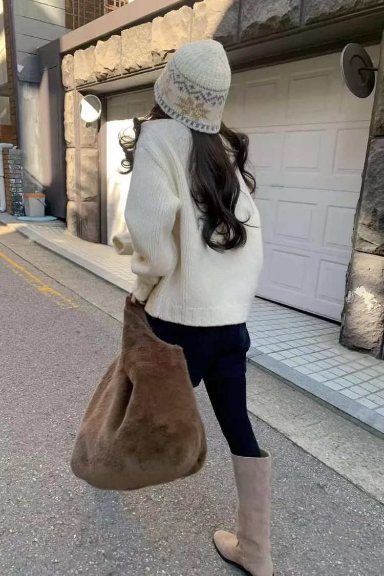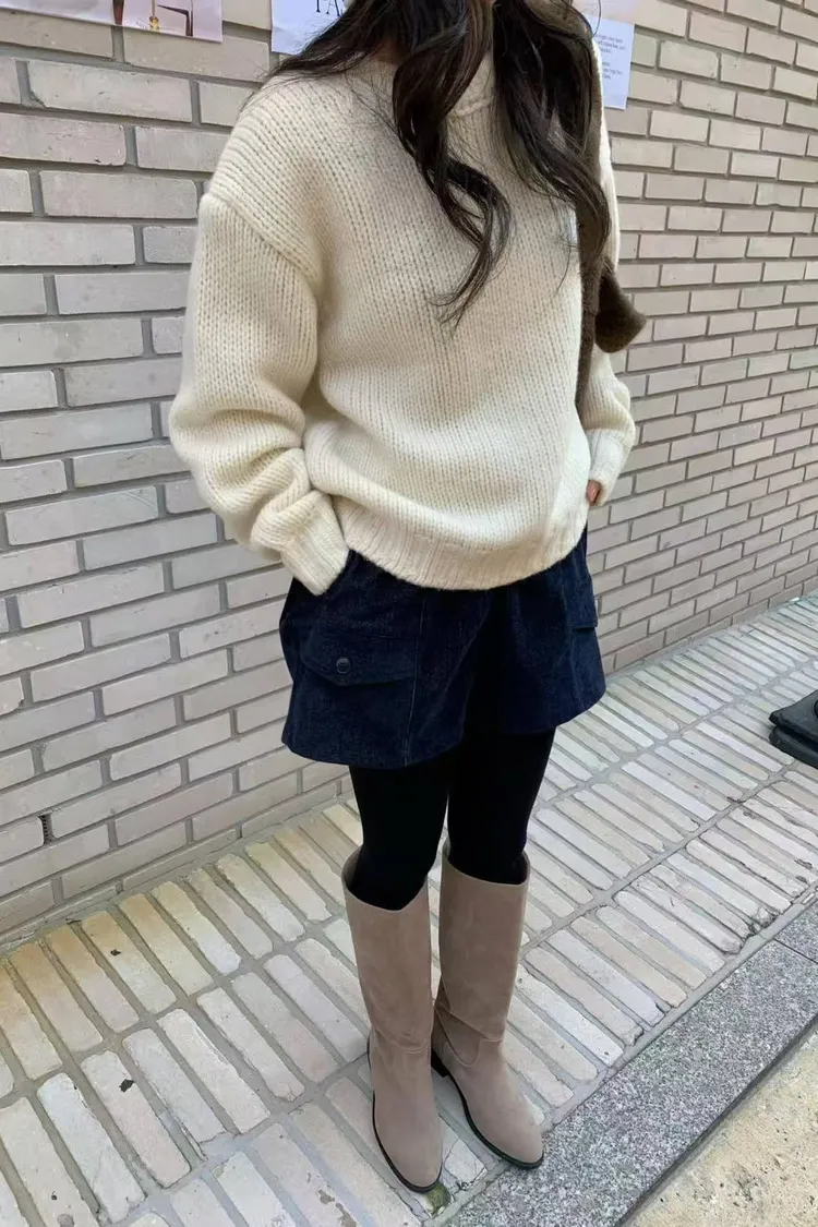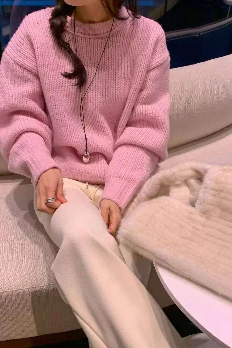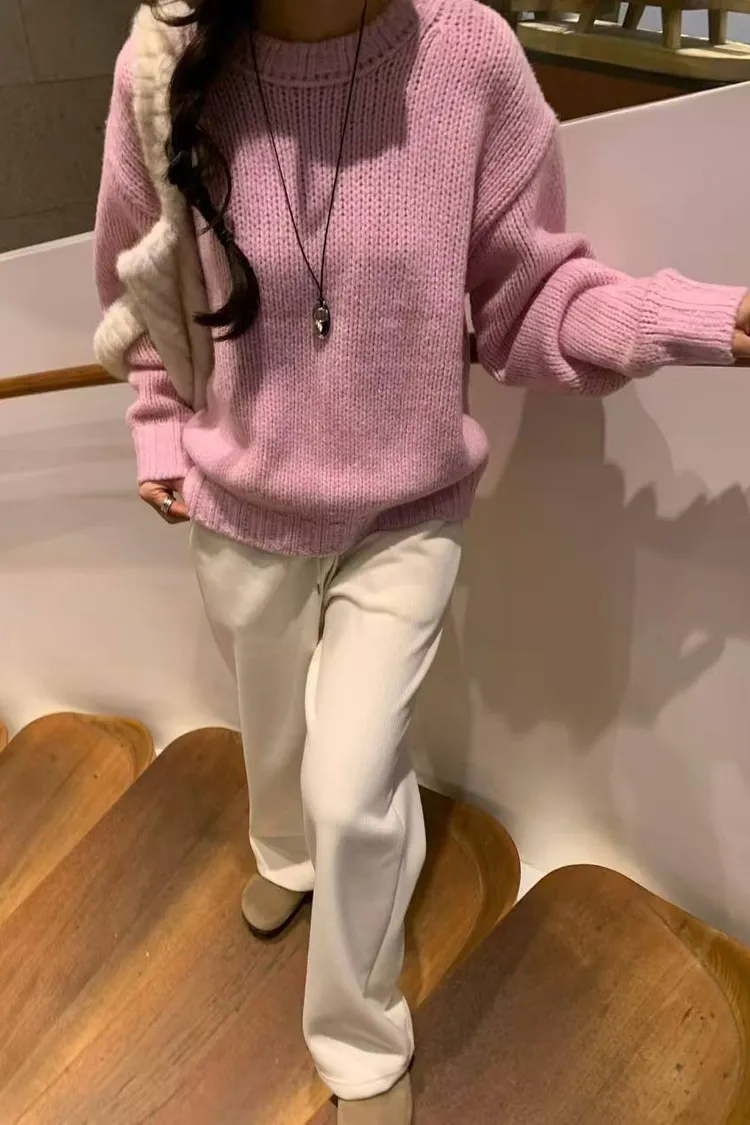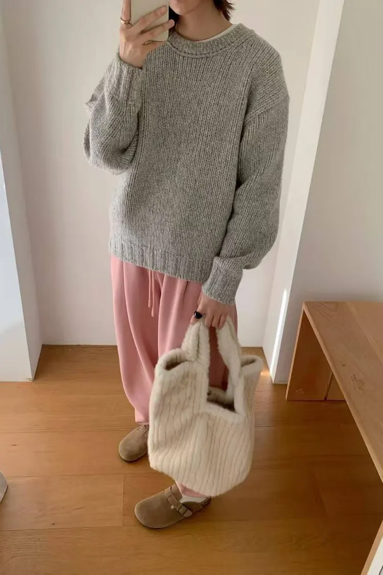 韓國代購 厚感 圓領保暖針織上衣 長袖上衣
