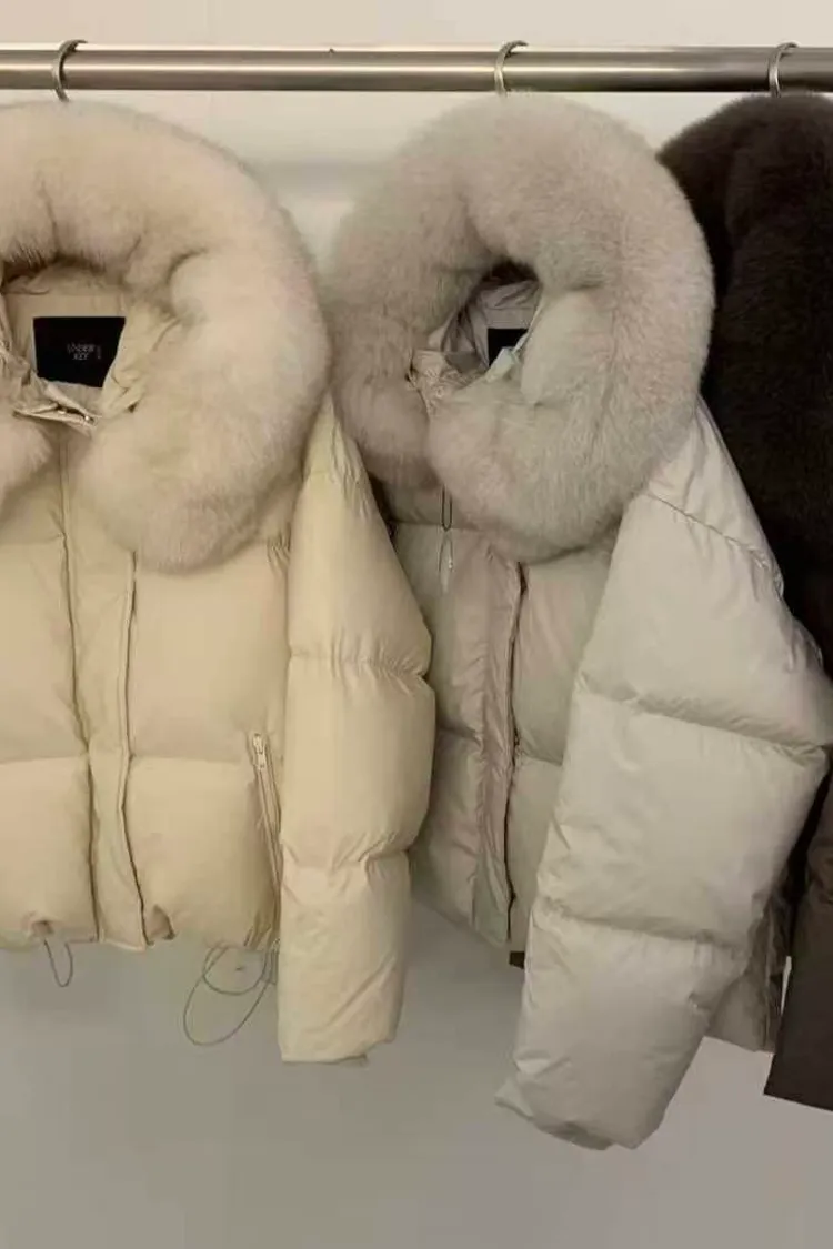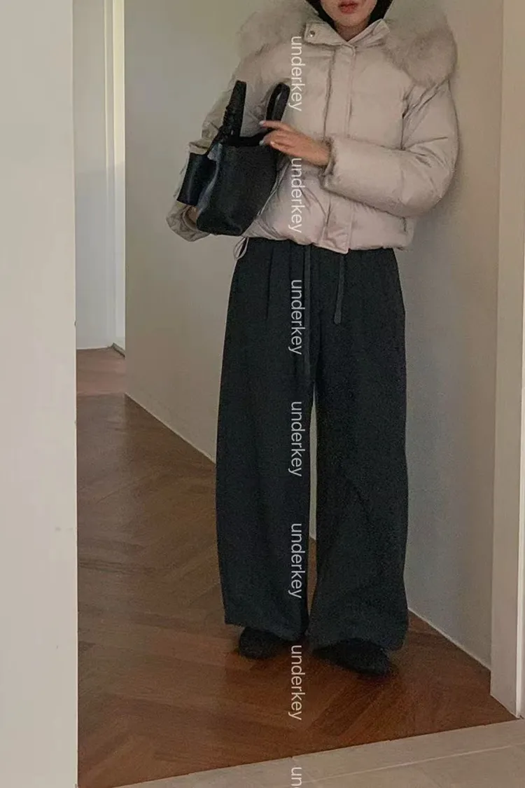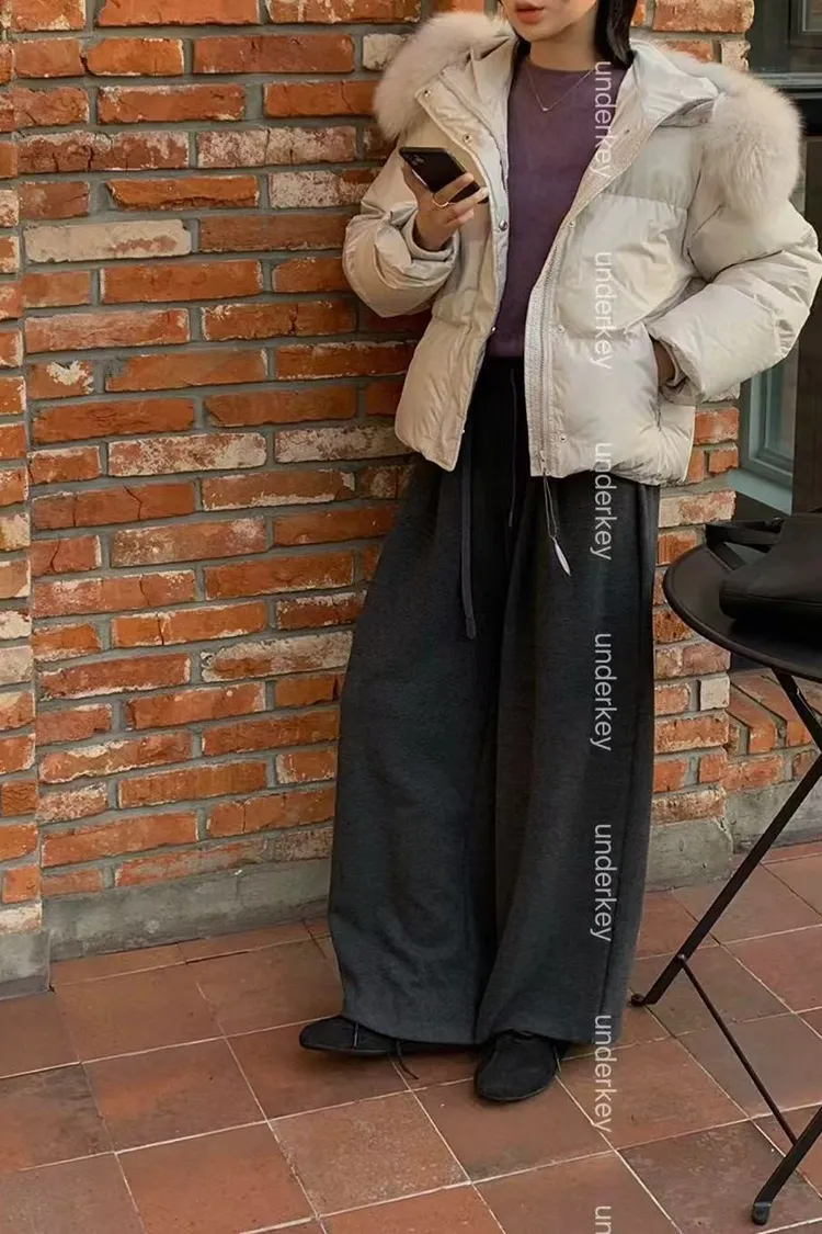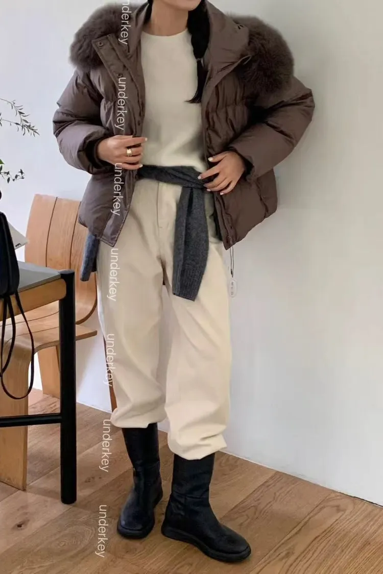 韓國東大門代購 2025冬季女裝 鴨絨毛毛連帽抽繩羽絨外套