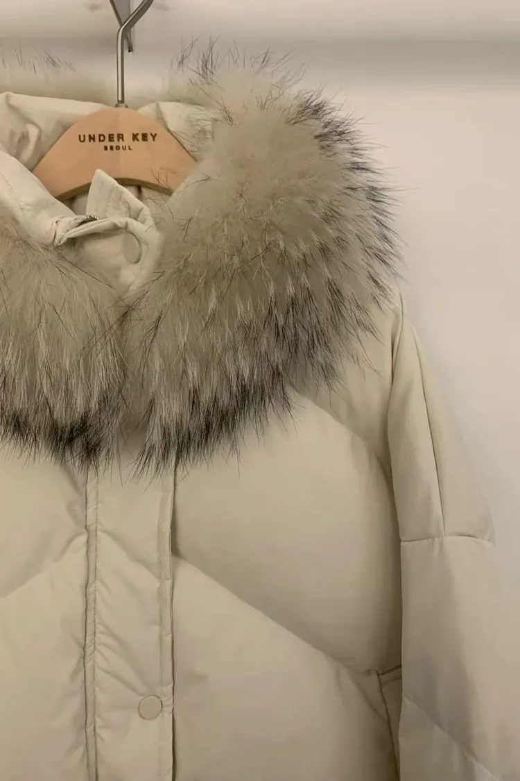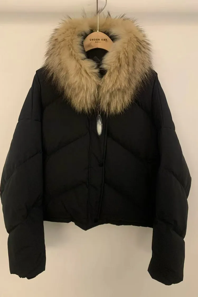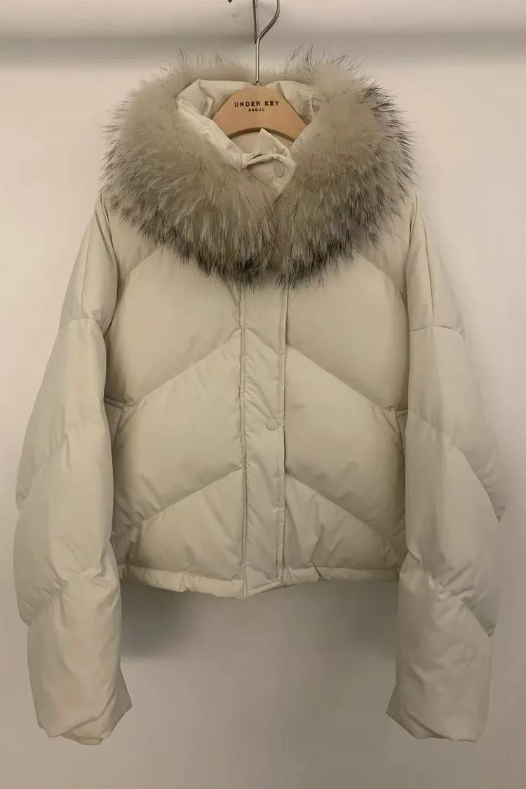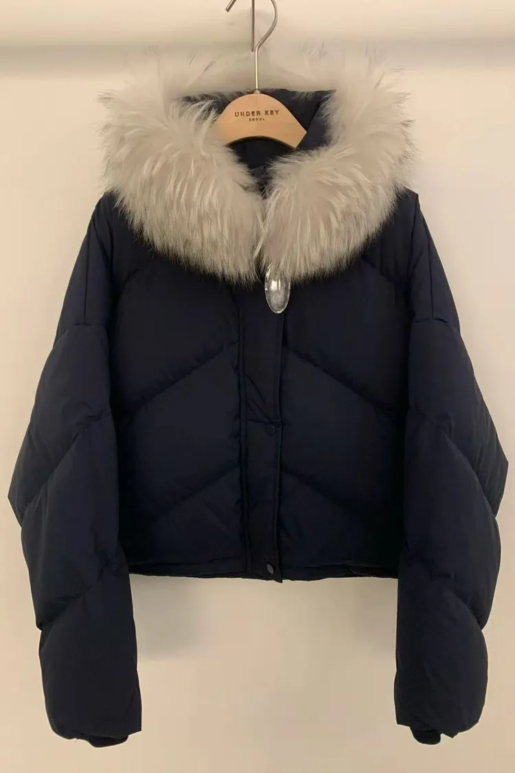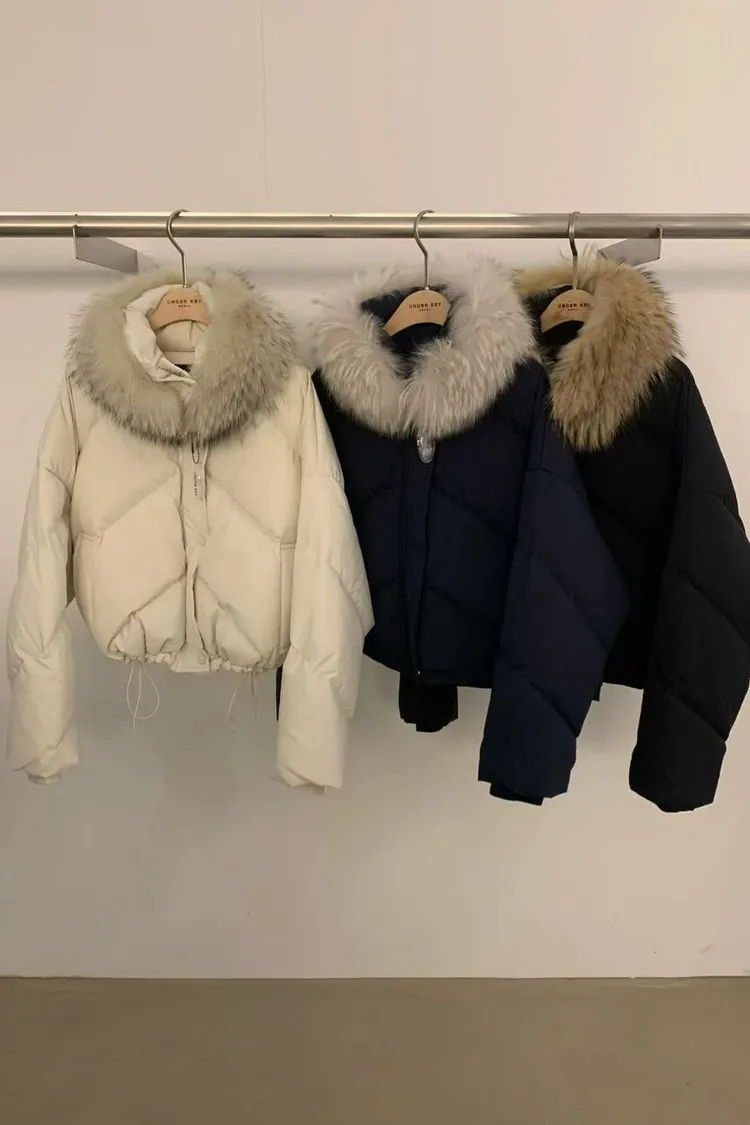韓國東大門代購 2025新款 鴨絨毛毛領短款羽絨外套