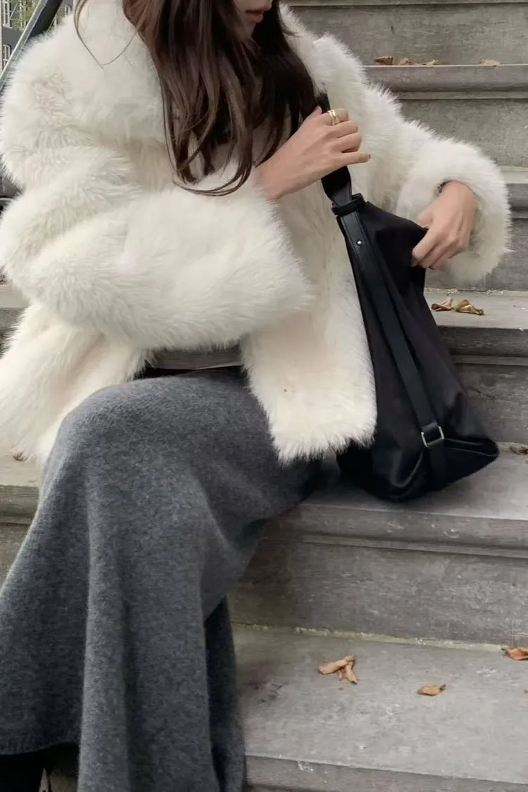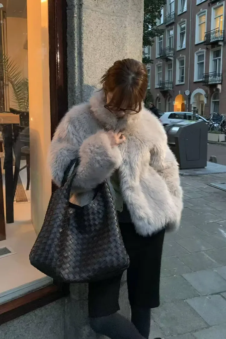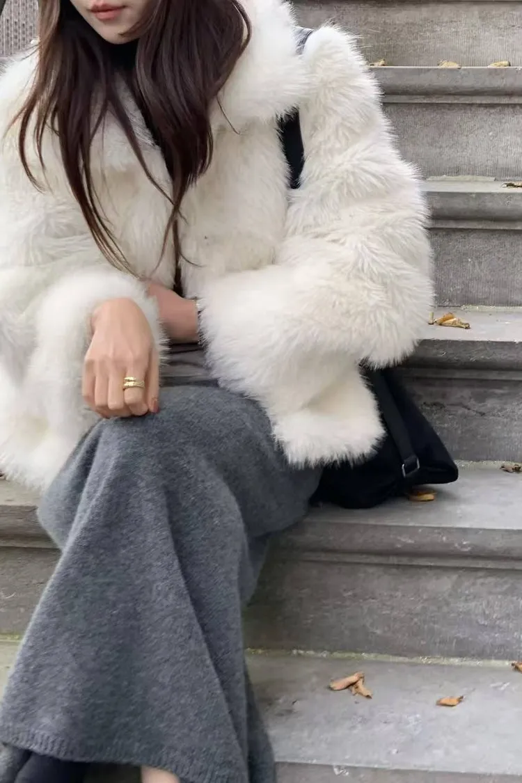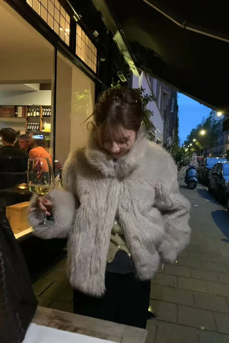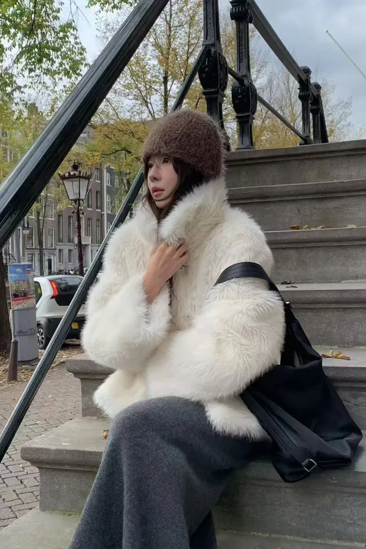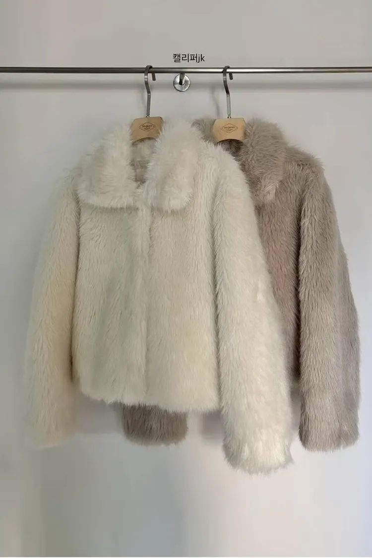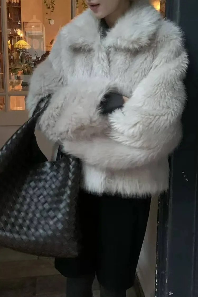 韓國連線款 設計師品牌 質感 人造皮草保暖外套 毛毛外套