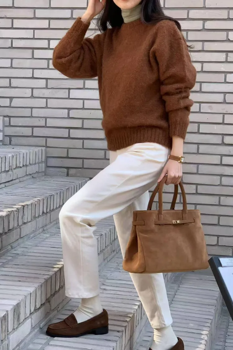 韓國連線款 羊毛 保暖圓領毛衣 長袖上衣