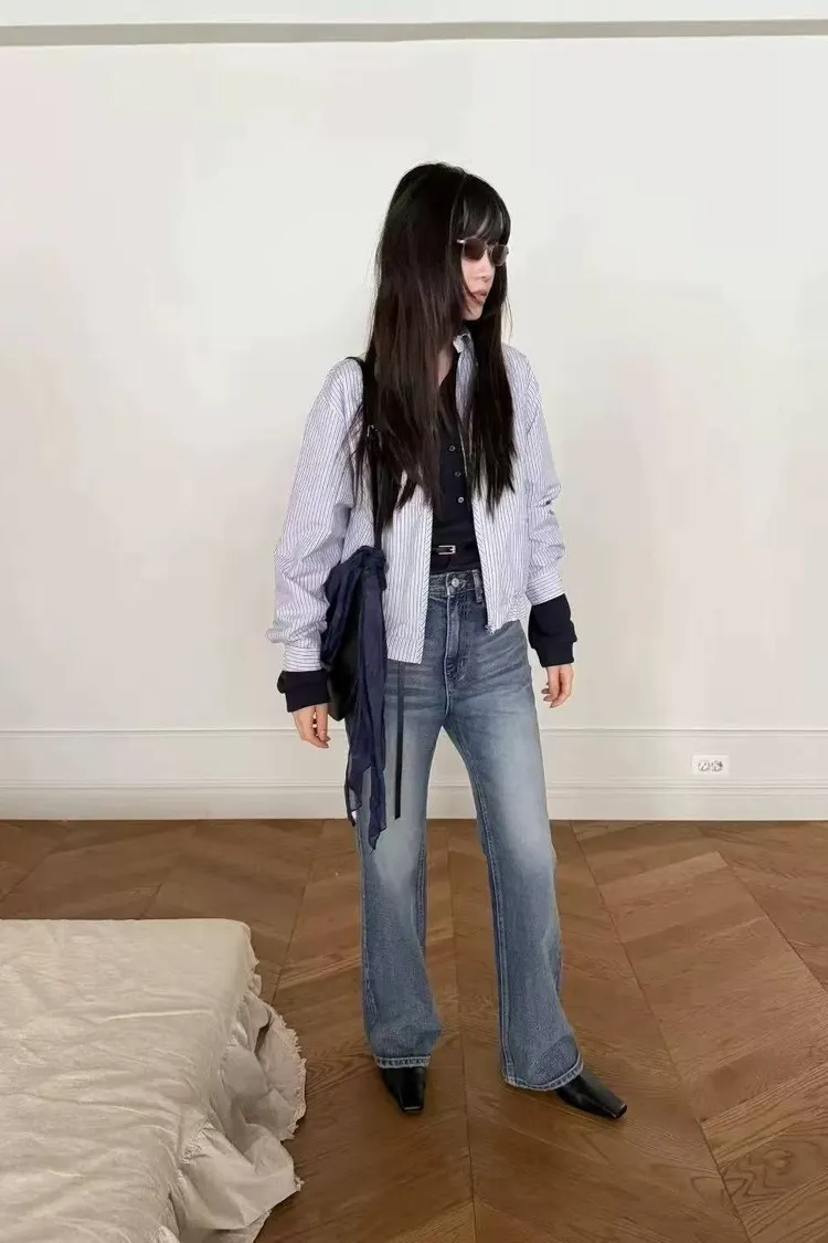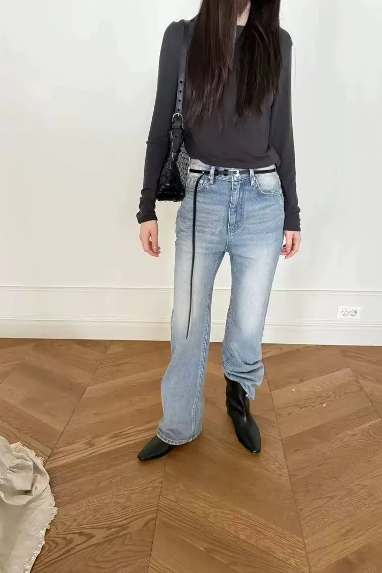 韓國連線款 百搭微喇叭牛仔褲 牛仔長褲
