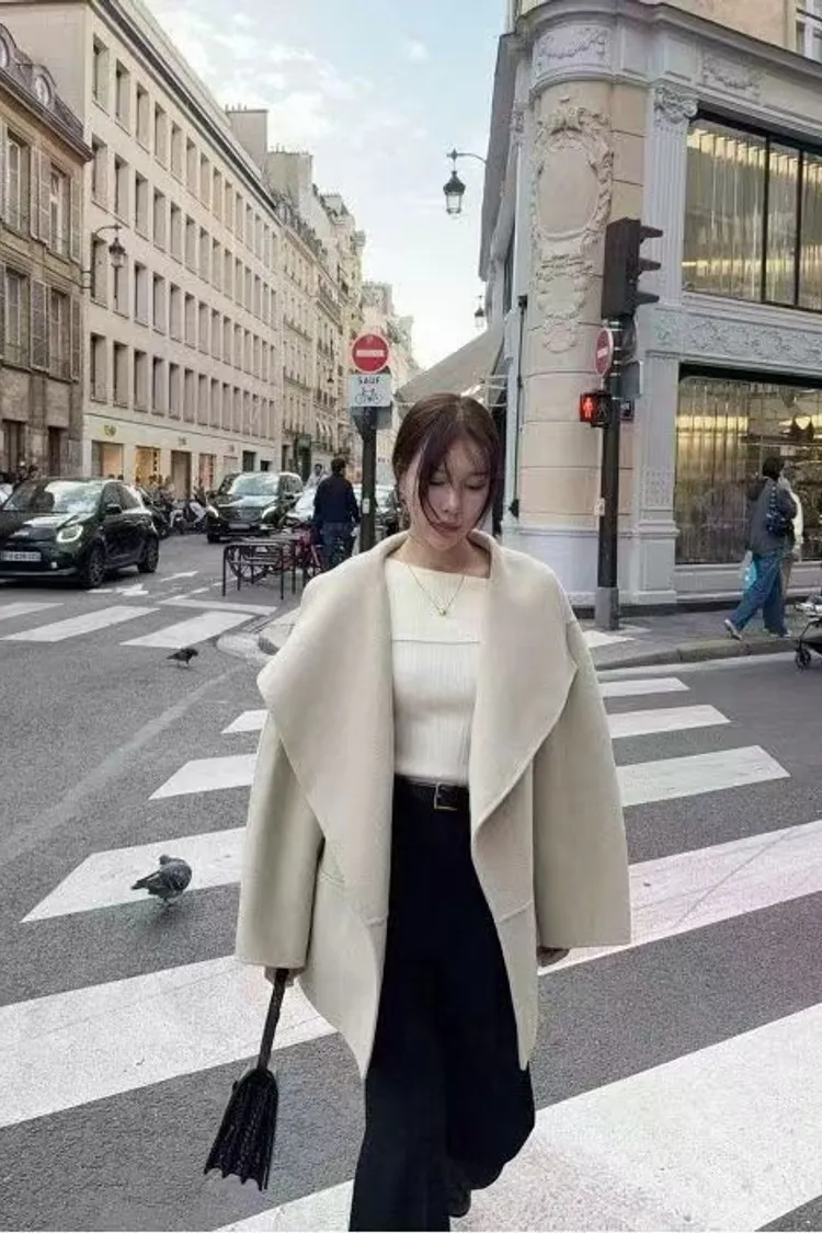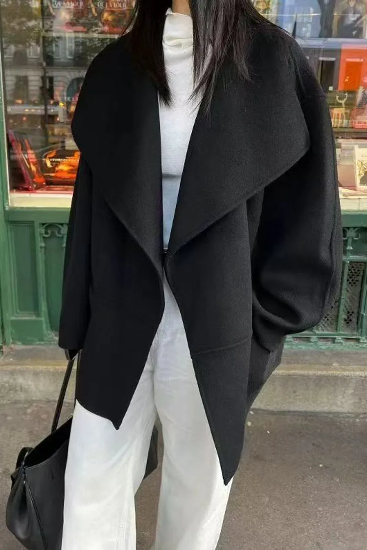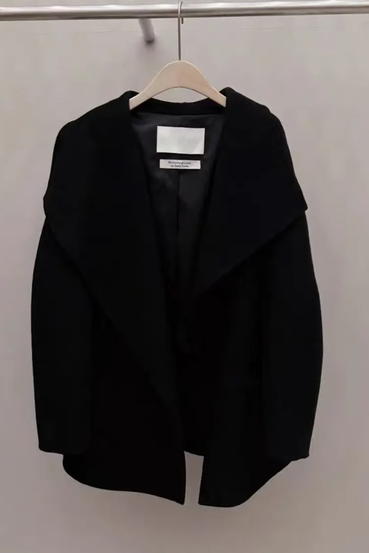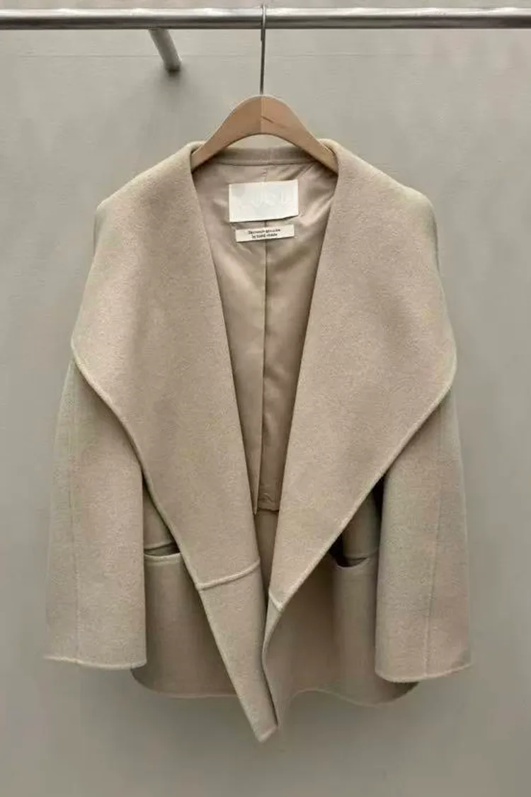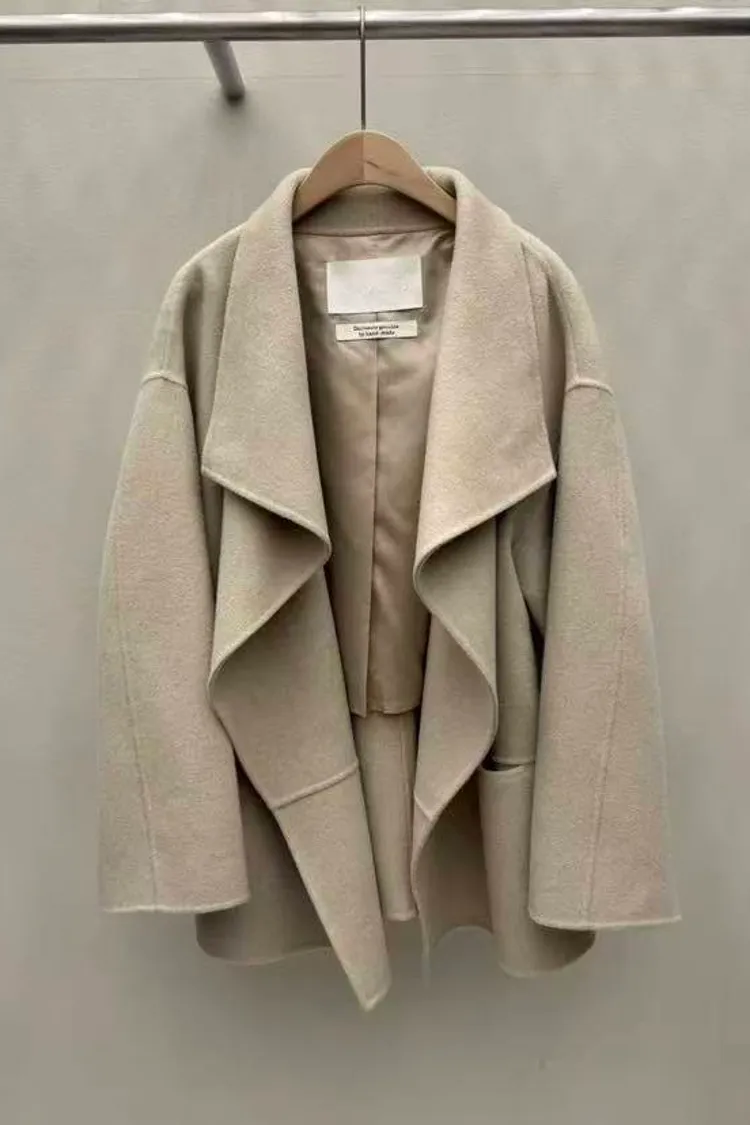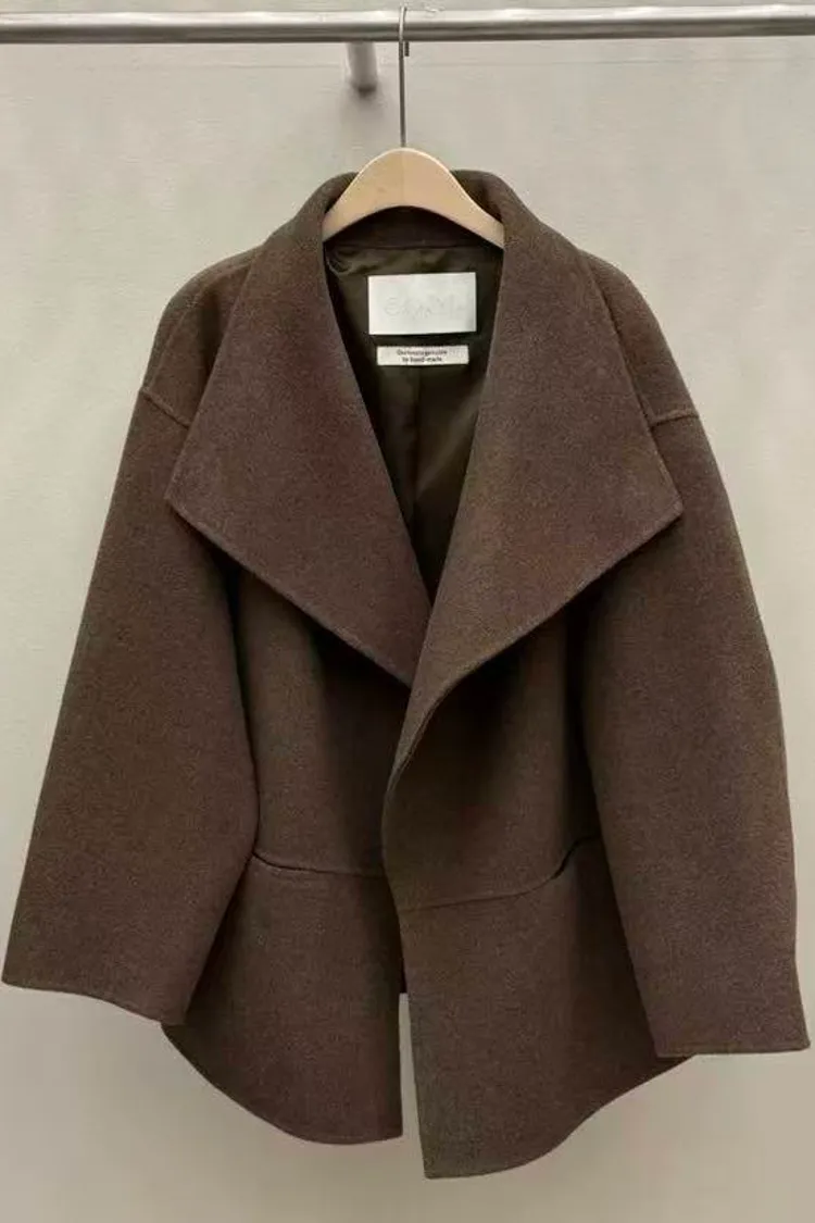 韓國連線 羊毛100% 短款羊毛大衣外套 韓系質感大衣 韓系慵懶風外套