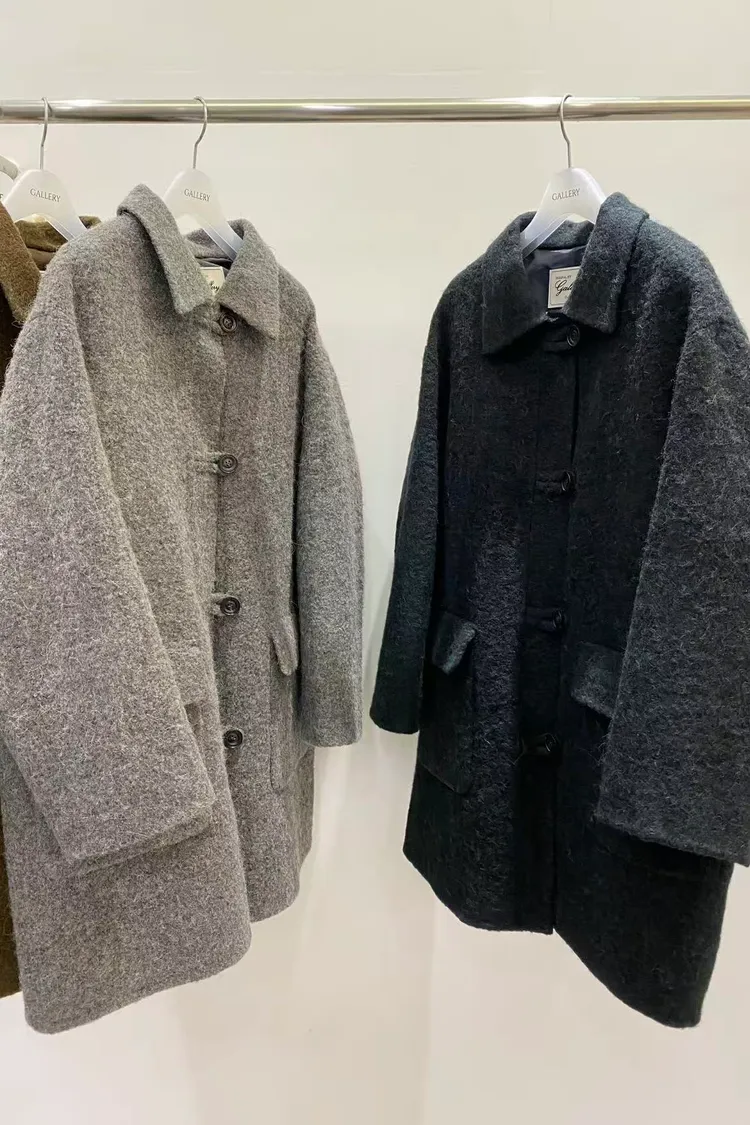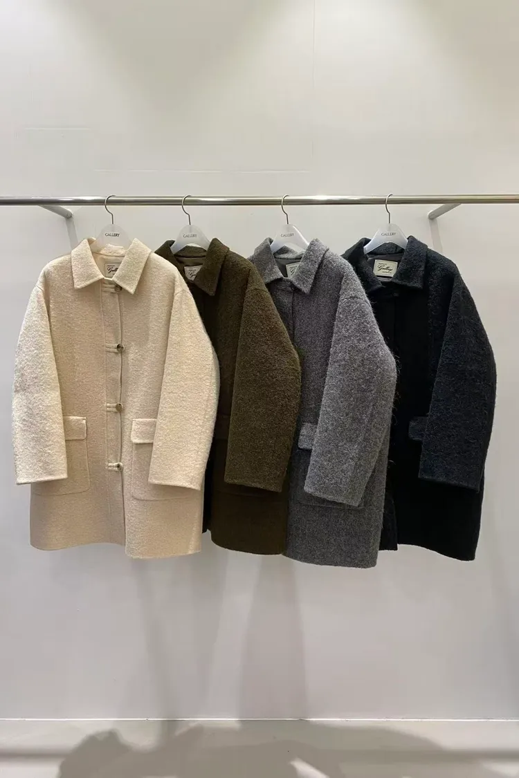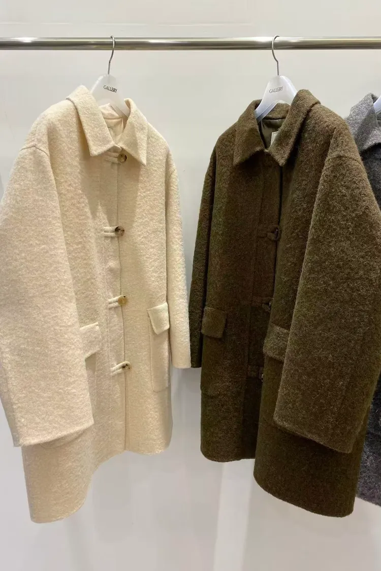 韓國連線款 羊駝毛羊毛大衣外套 雙口袋中長版大衣外套