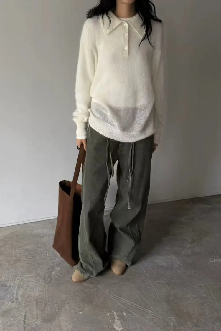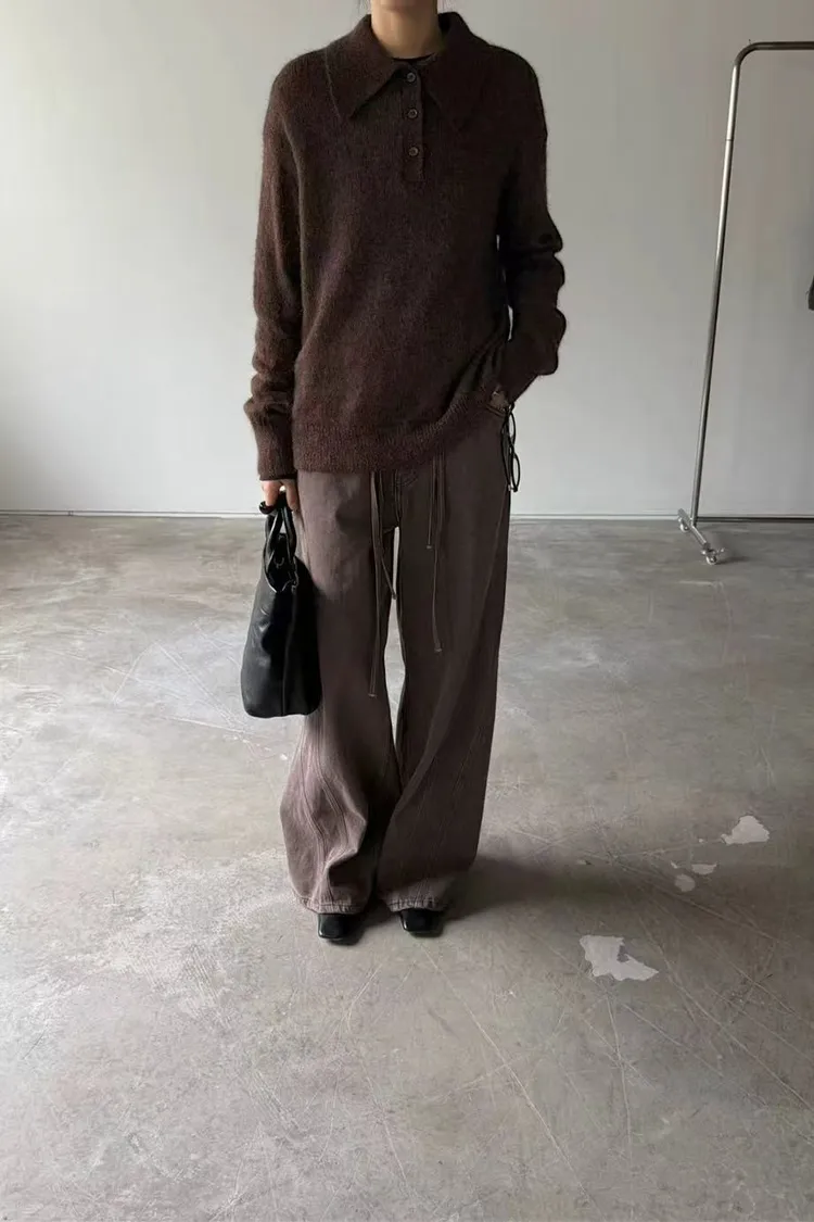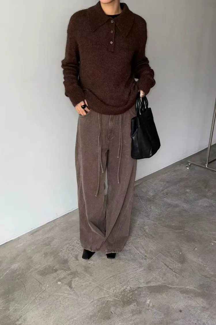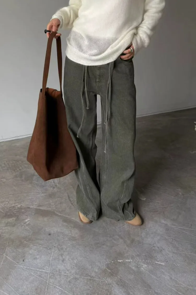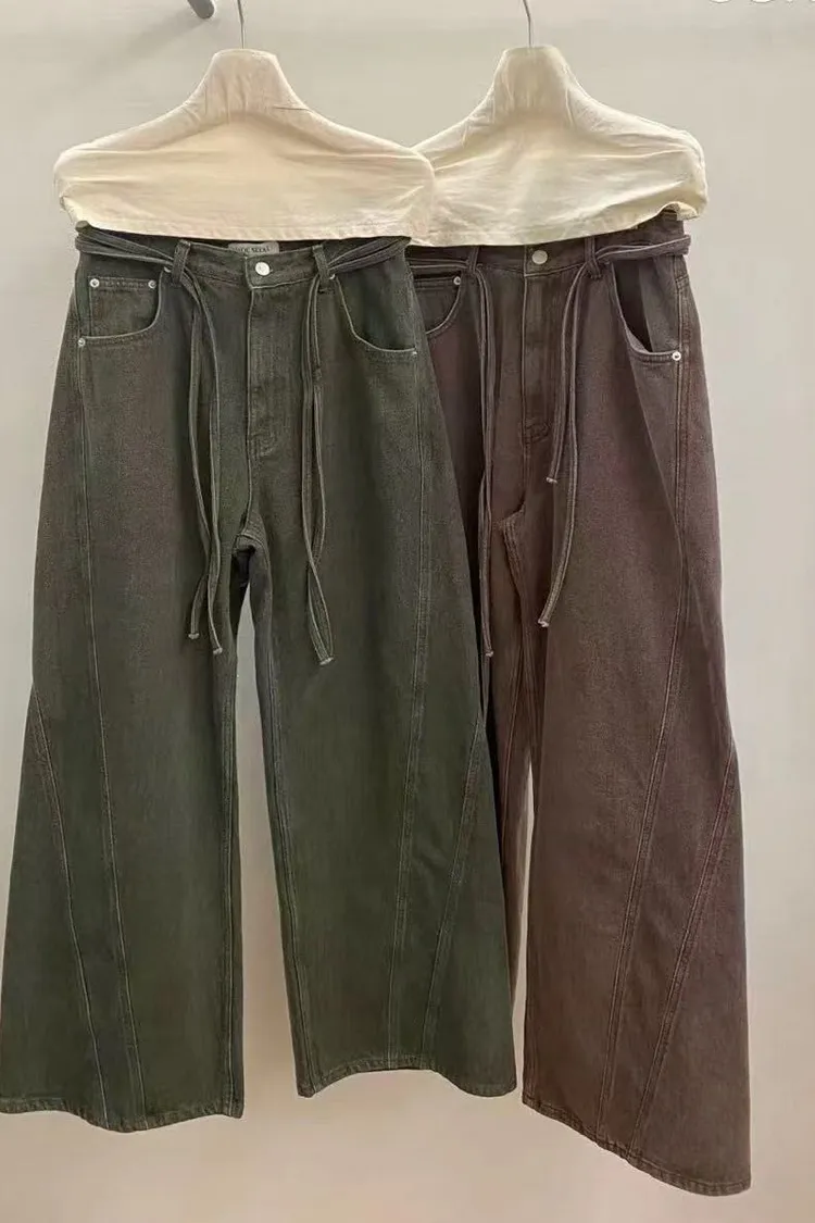 韓國連線款 經典款 設計感腰部綁帶牛仔長褲