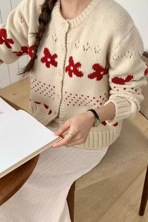 韓國連線款 小花圓領針織外套 可愛外套