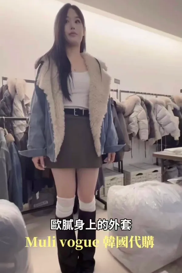 韓國連線款 設計感 鴨絨 牛仔拼接羊羔毛外套 牛仔外套
