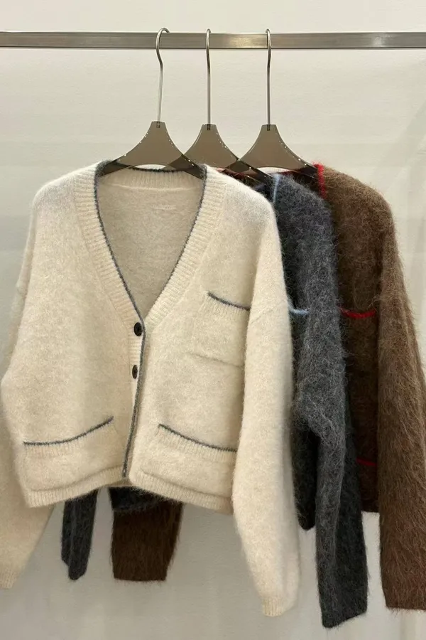 韓國連線款 羊毛V領 質感拼接口袋外套 針織外套